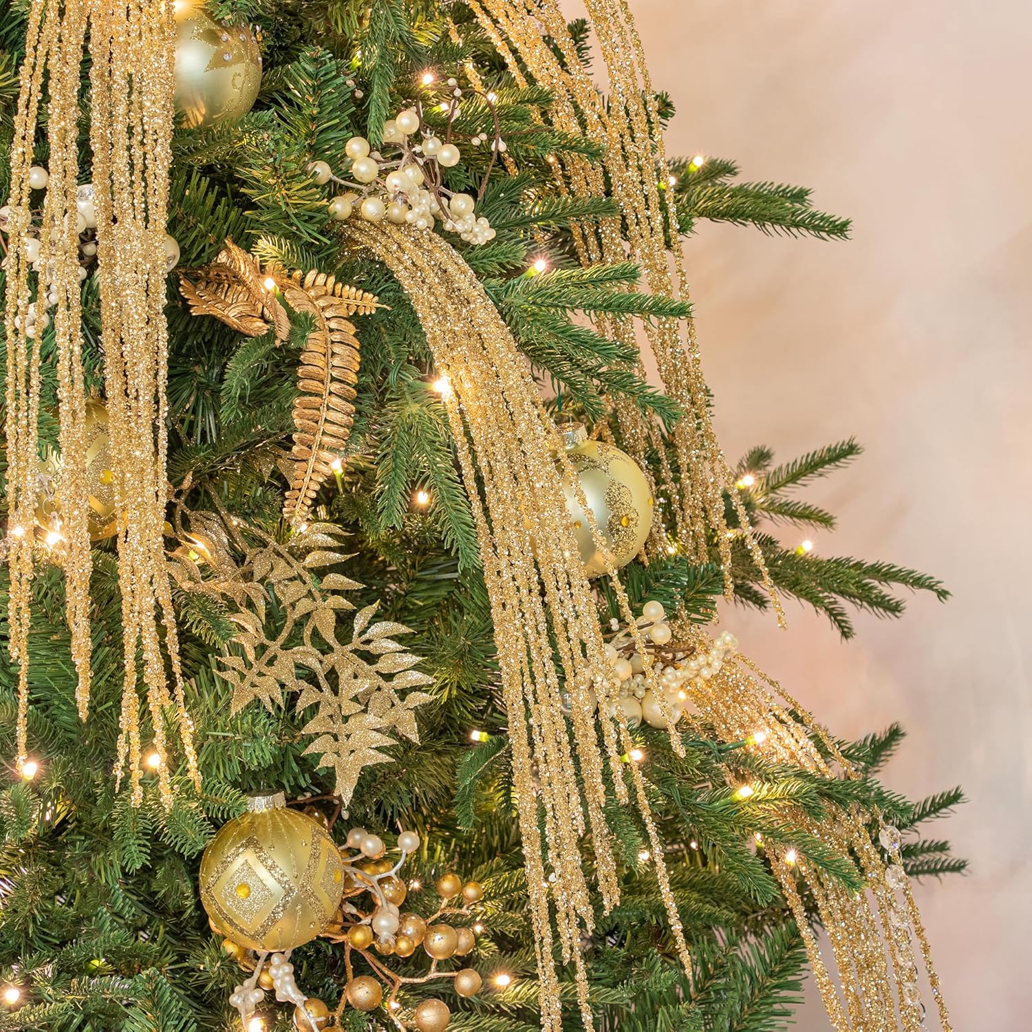 • В декоративната ваза или на венеца на вратата, декоративният клон го кара да блести силно. Точно подходящата декорация за витрина на луксозен бутик или други изискани витрини. За коледни украси, украси за коледна елха. Можете да усучете гирлянди или клонки на коледната елха, за да подсилите атмосферата на партито и празника.