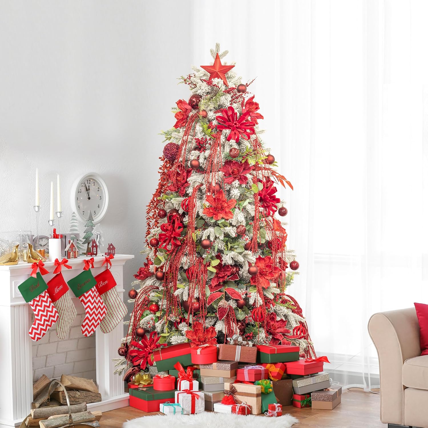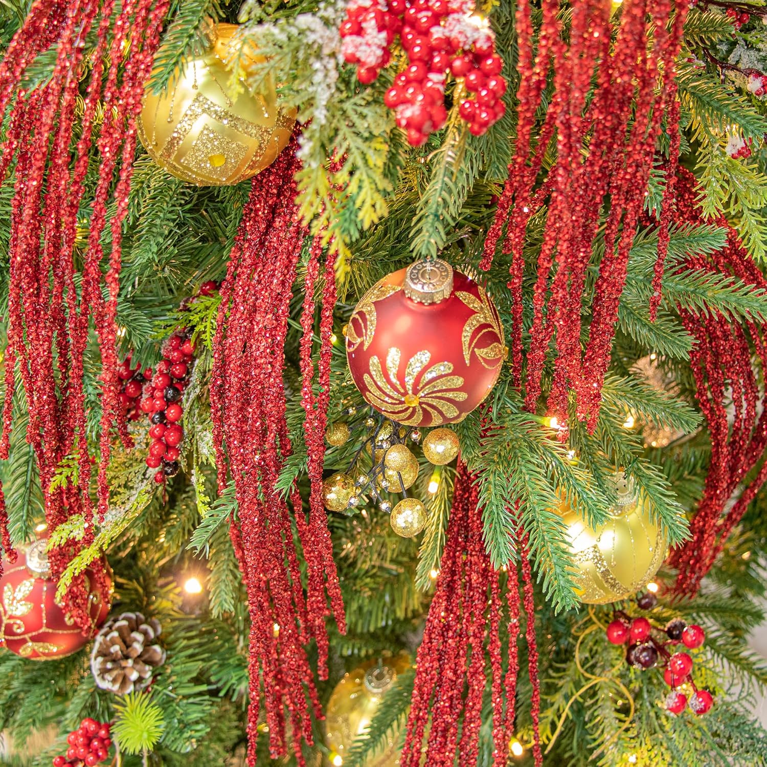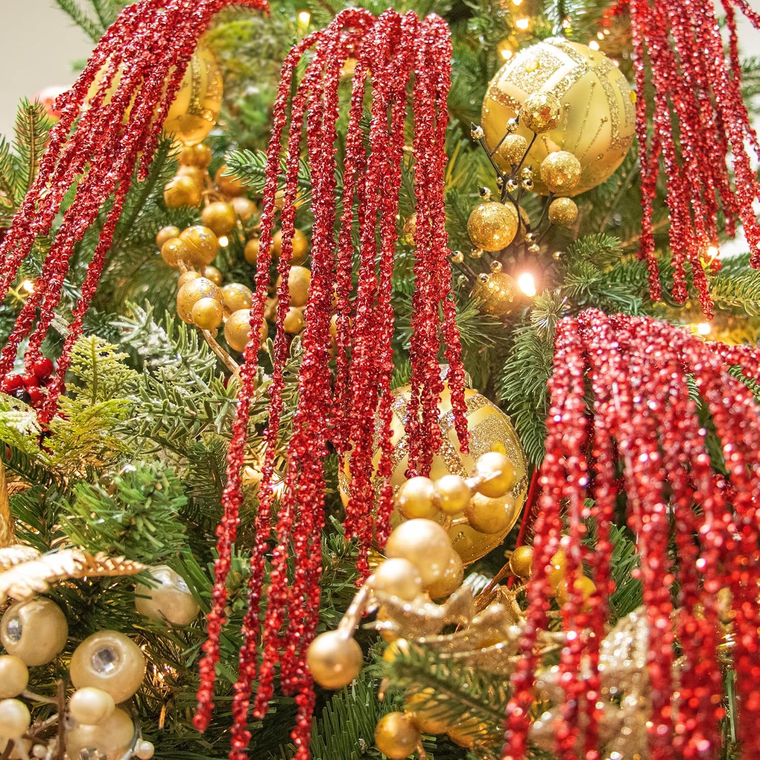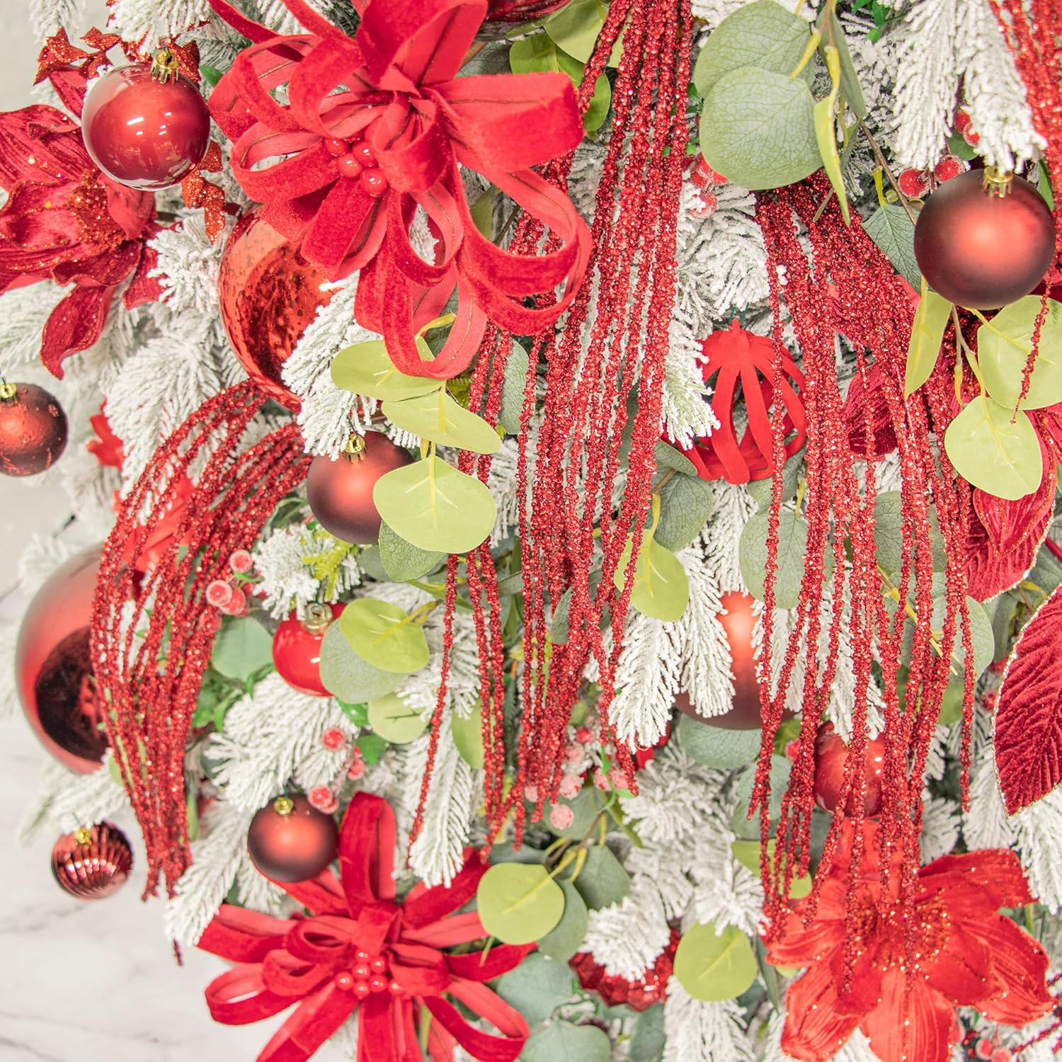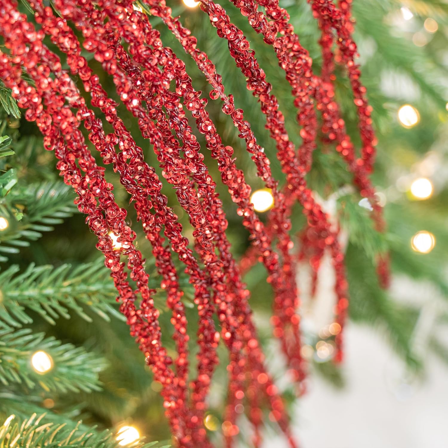KI Store Пакет от 6 декоративни клонки, коледни клонки, изкуствена коледна клонка, 82 см с брокат, клонки за занаяти, декоративна клонка, стъбло на имел за коледна украса (червена щипка)