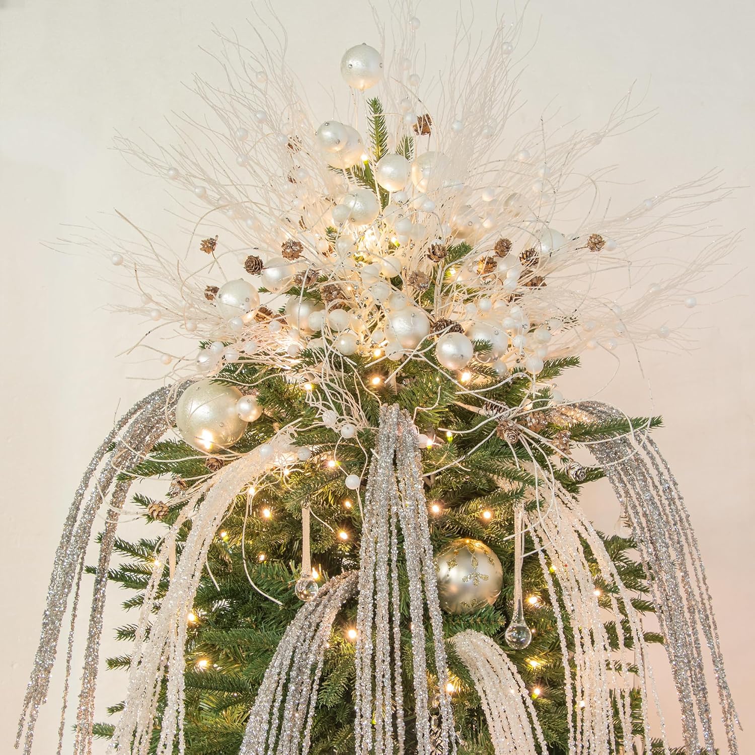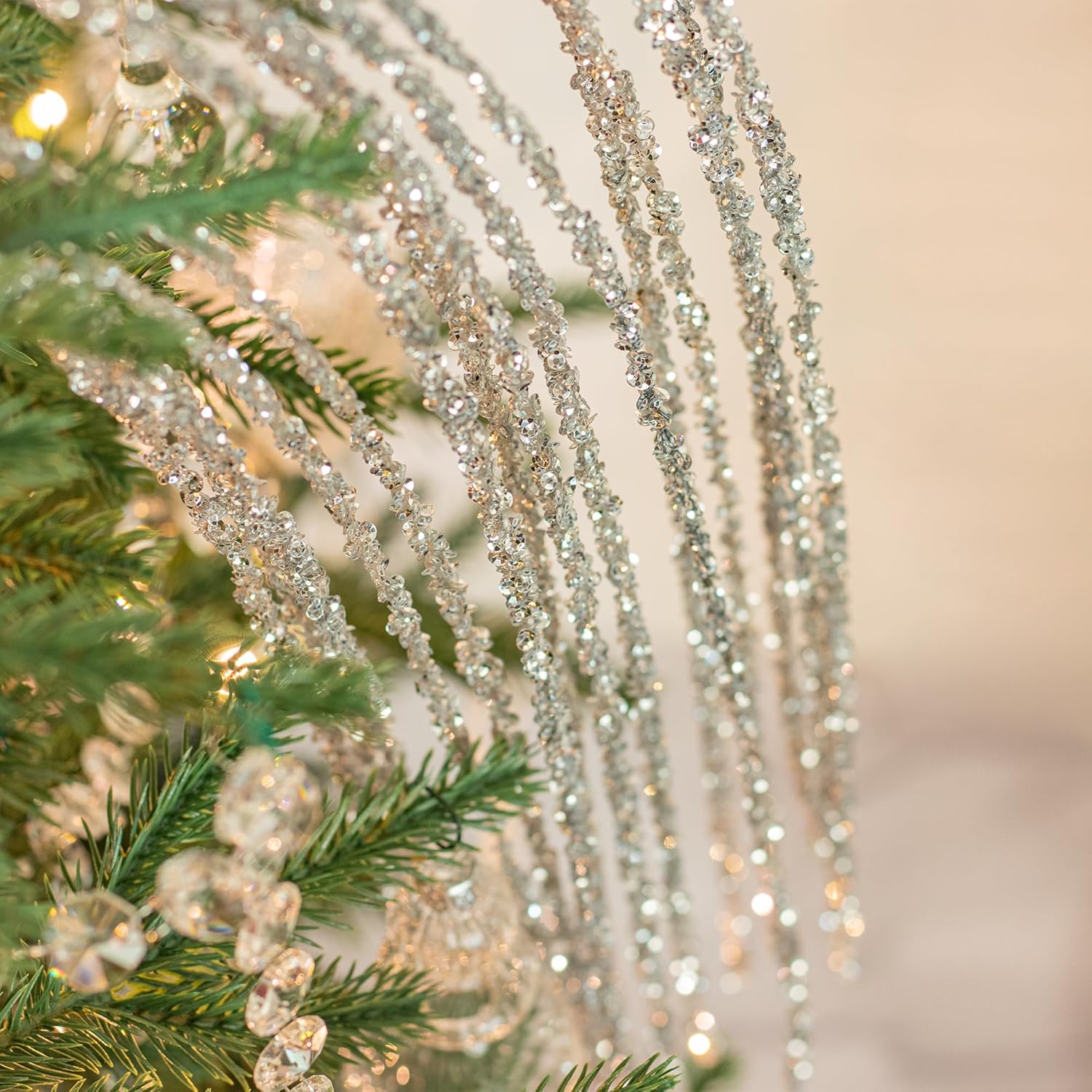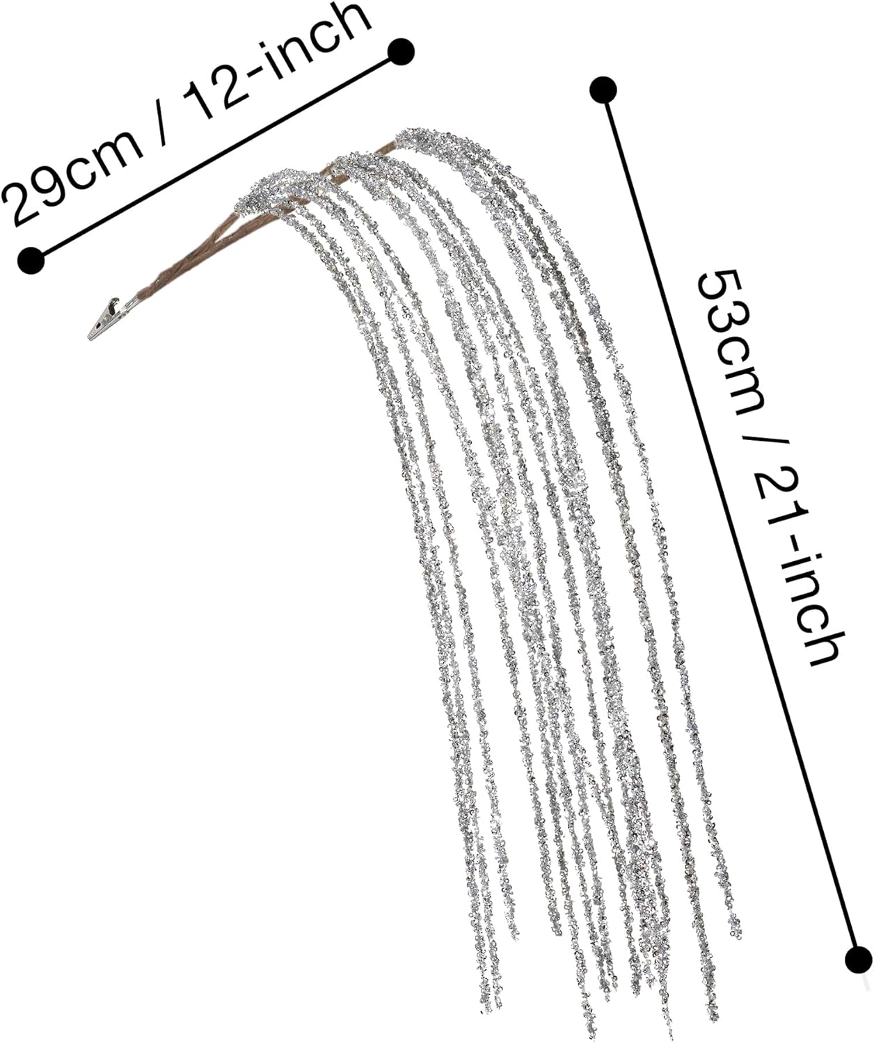 KI Store Пакет от 6 декоративни клонки, коледни клонки, изкуствена коледна клонка, 82 см с брокат, клонки за занаяти, декоративна клонка, стъбло на имел за коледна украса (сребърна щипка)