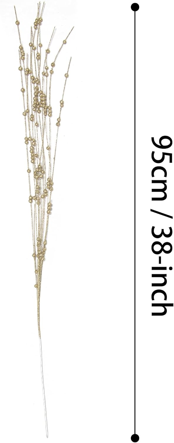 KI Store Пакет от 8 декоративни клонки, коледни клонки, изкуствена коледна клонка, 95 см с брокат, клонки за занаяти, декоративна клонка стъбло имел за коледна украса (златен)