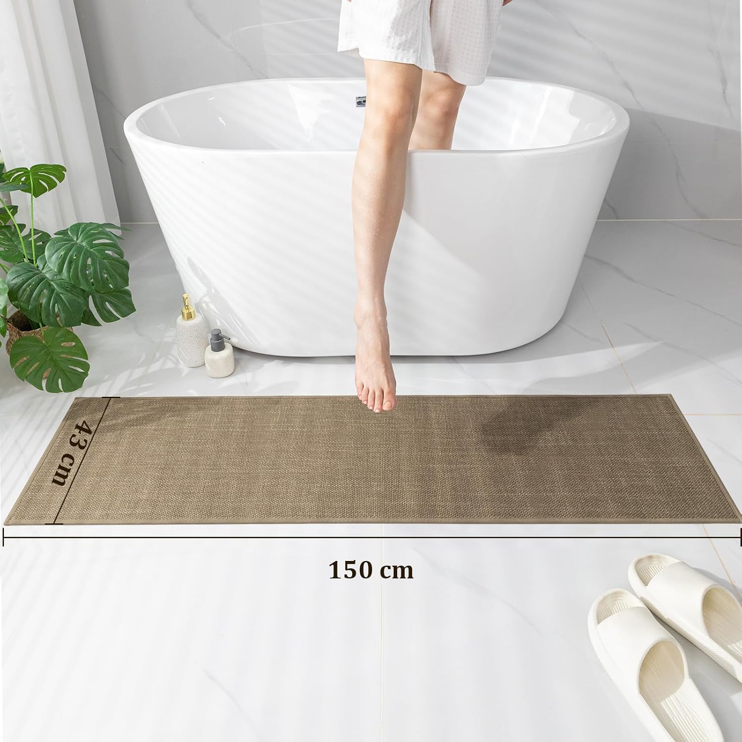 Килим за баня Chakme 43 x 150 см, неплъзгаща се постелка за баня с гумена подложка, неплъзгаща се постелка за баня, която може да се пере, кафява постелка за душ