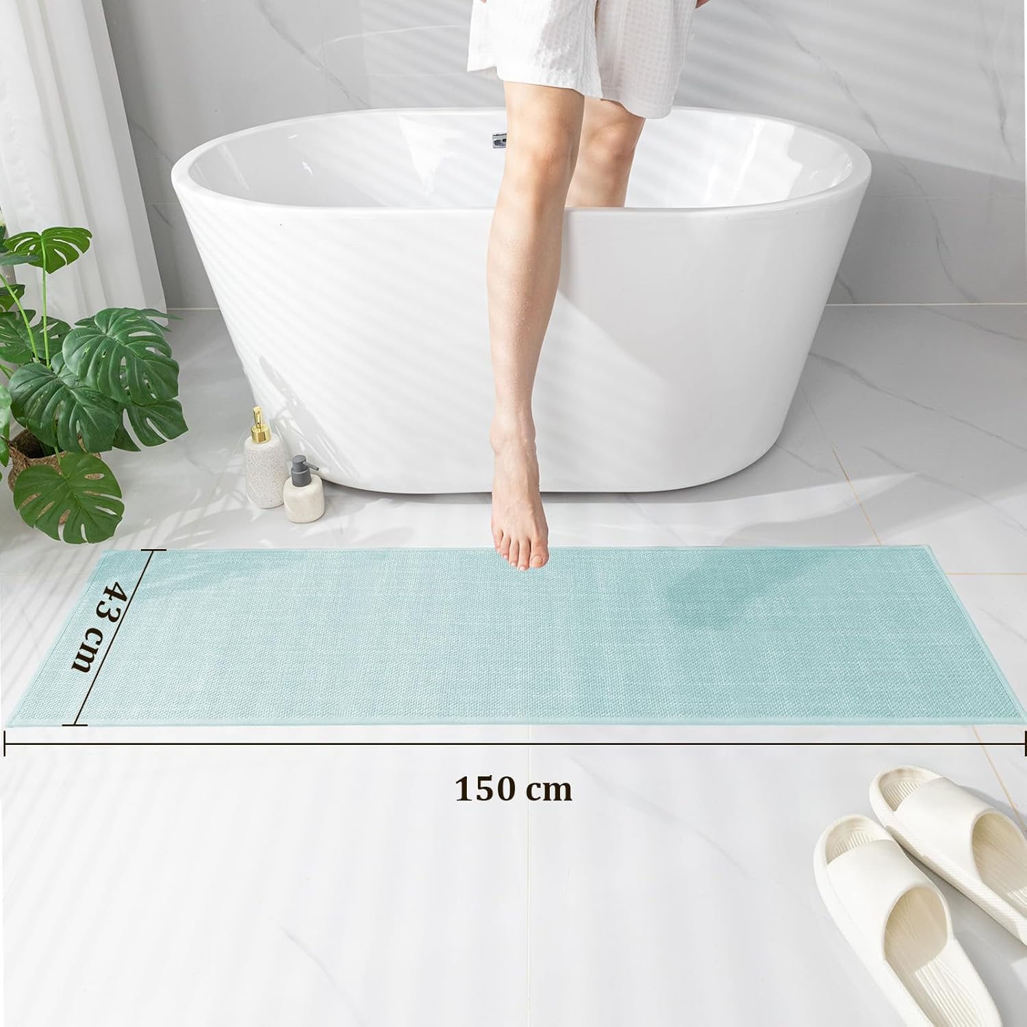 Килим за баня Chakme 43 x 150 см, неплъзгаща се постелка за баня с гумена подложка, неплъзгаща се постелка за баня, която може да се пере, постелка за душ в синьо