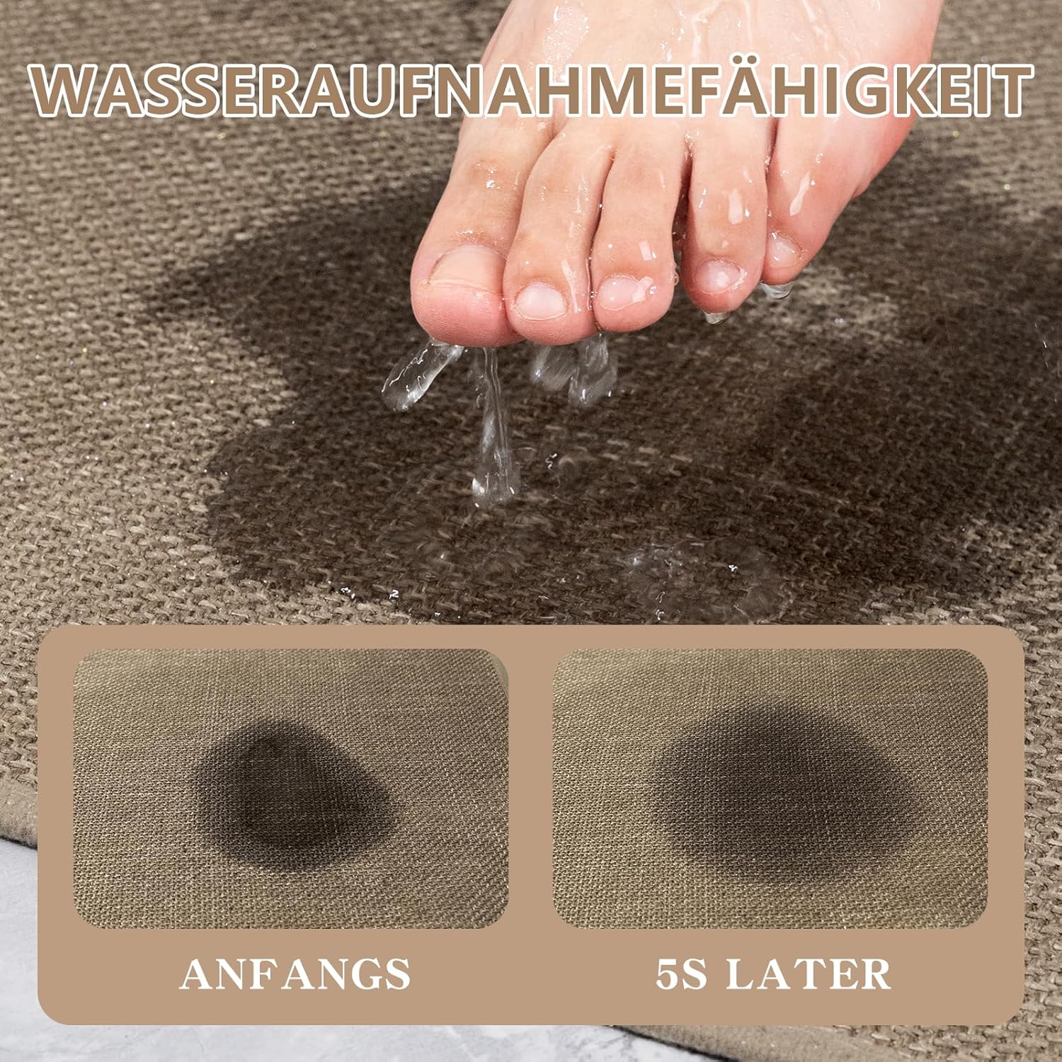 • Способност за абсорбиране на вода: нашият килим за баня абсорбира вода за секунди и поддържа подовете ви сухи и чисти. Килимчето за баня съхне бързо.