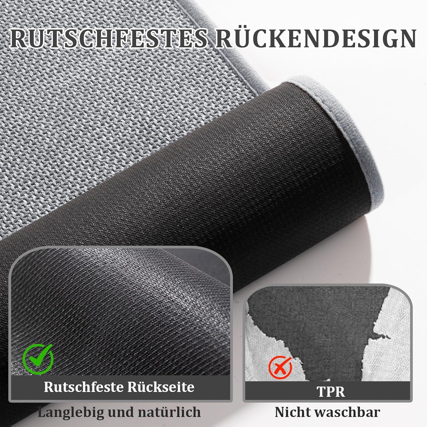 • Безопасно и неплъзгащо се: Това неплъзгащо се килимче за баня има неплъзгаща се гумена подложка, която закрепва килимчето за баня към пода на банята, предотвратява подхлъзване, предотвратява случайни падания и гарантира, че подът е сух и чист, в противен случай неплъзгащият се ефект може да бъде засегнат.