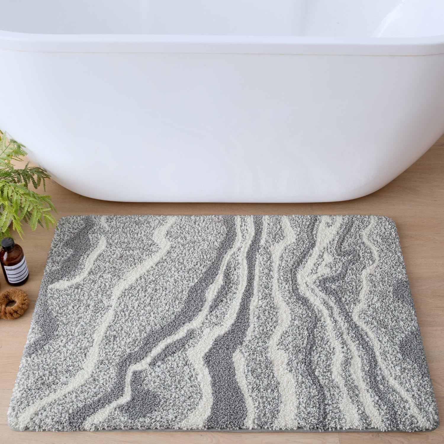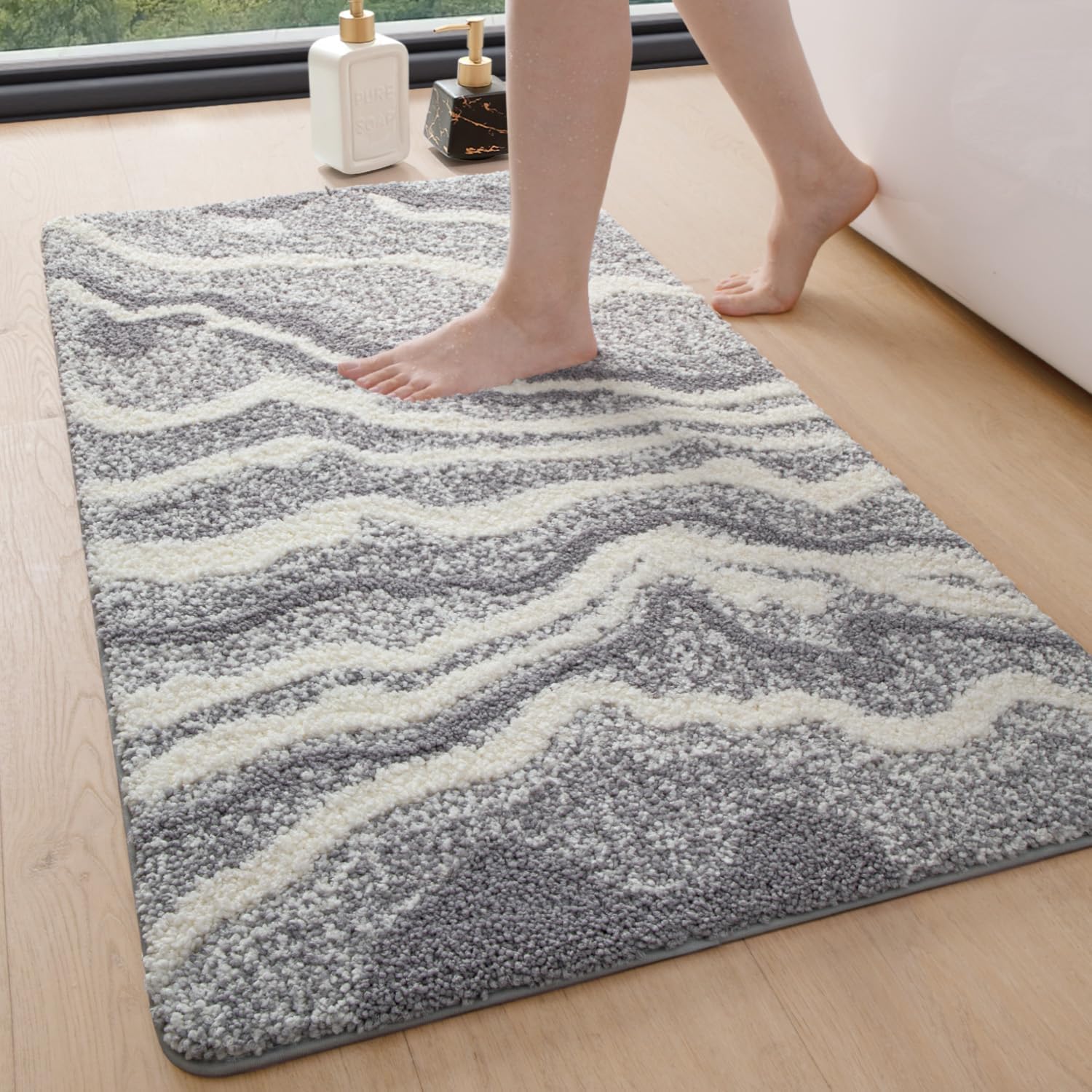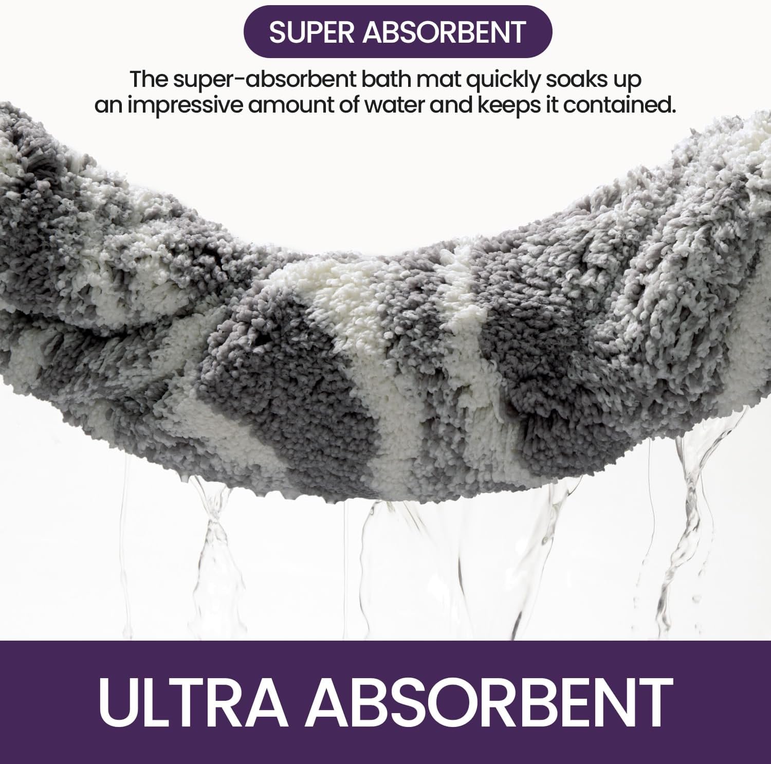 • ИЗКЛЮЧИТЕЛНО АБСОРБИРАЩ Килимът ни за баня абсорбира вода за секунди и предпазва пода ви от капеща вода, като го поддържа чист и сух. Килимчето за баня съхне бързо, без да мирише.