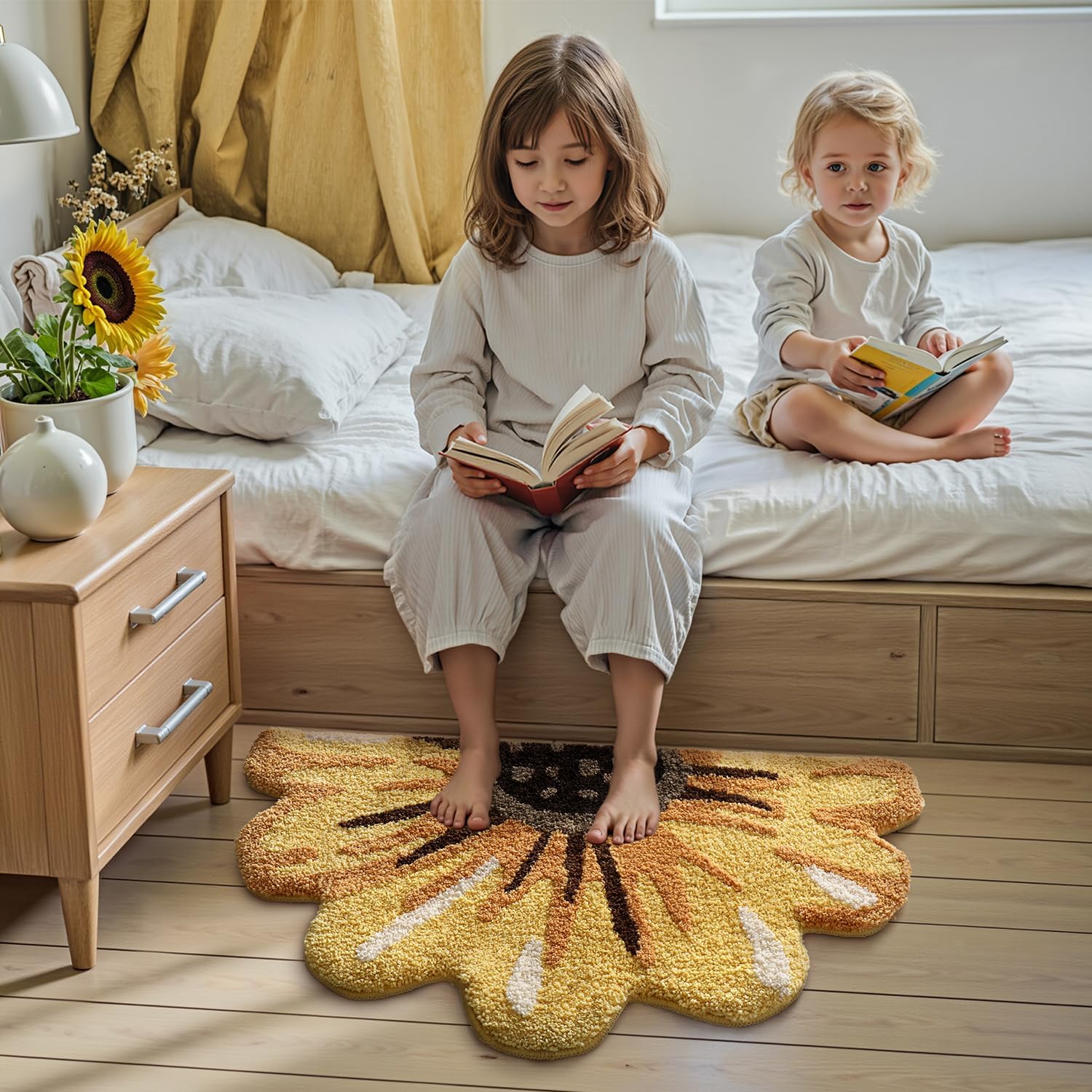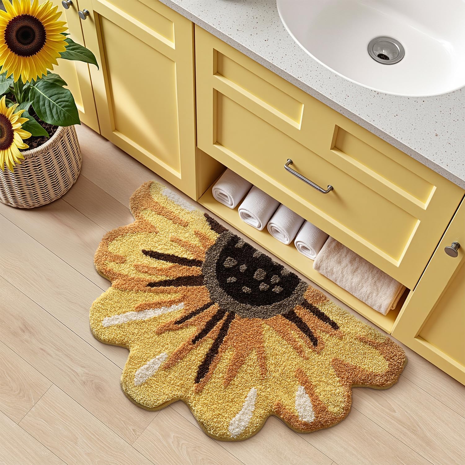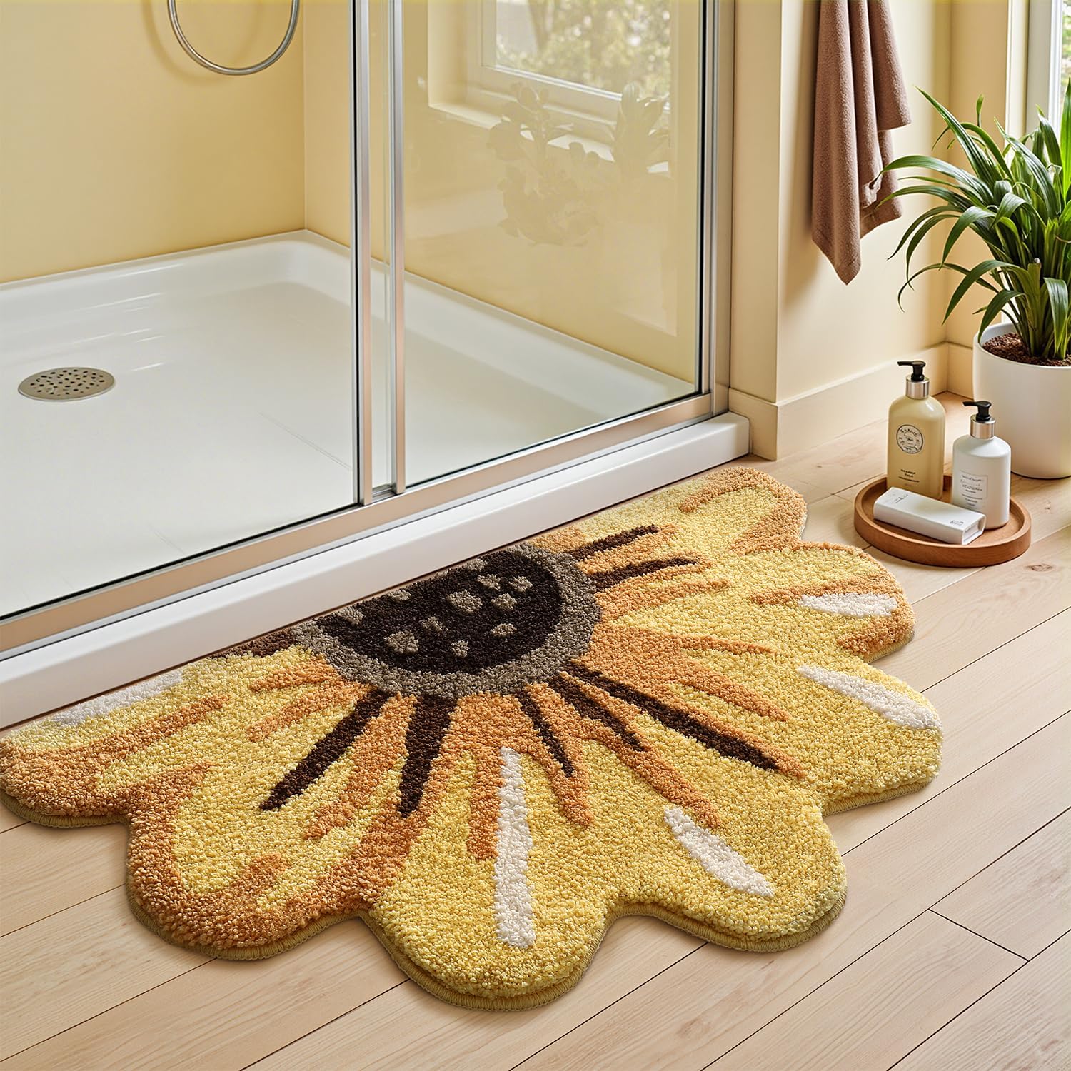 Килим за баня DEXI 51 x 91 см, Постелка за баня, неплъзгаща се, абсорбираща, с шарка на слънчогледи, Переща се постелка за баня с форма на цвете за душ, спалня, детска стая, жълта