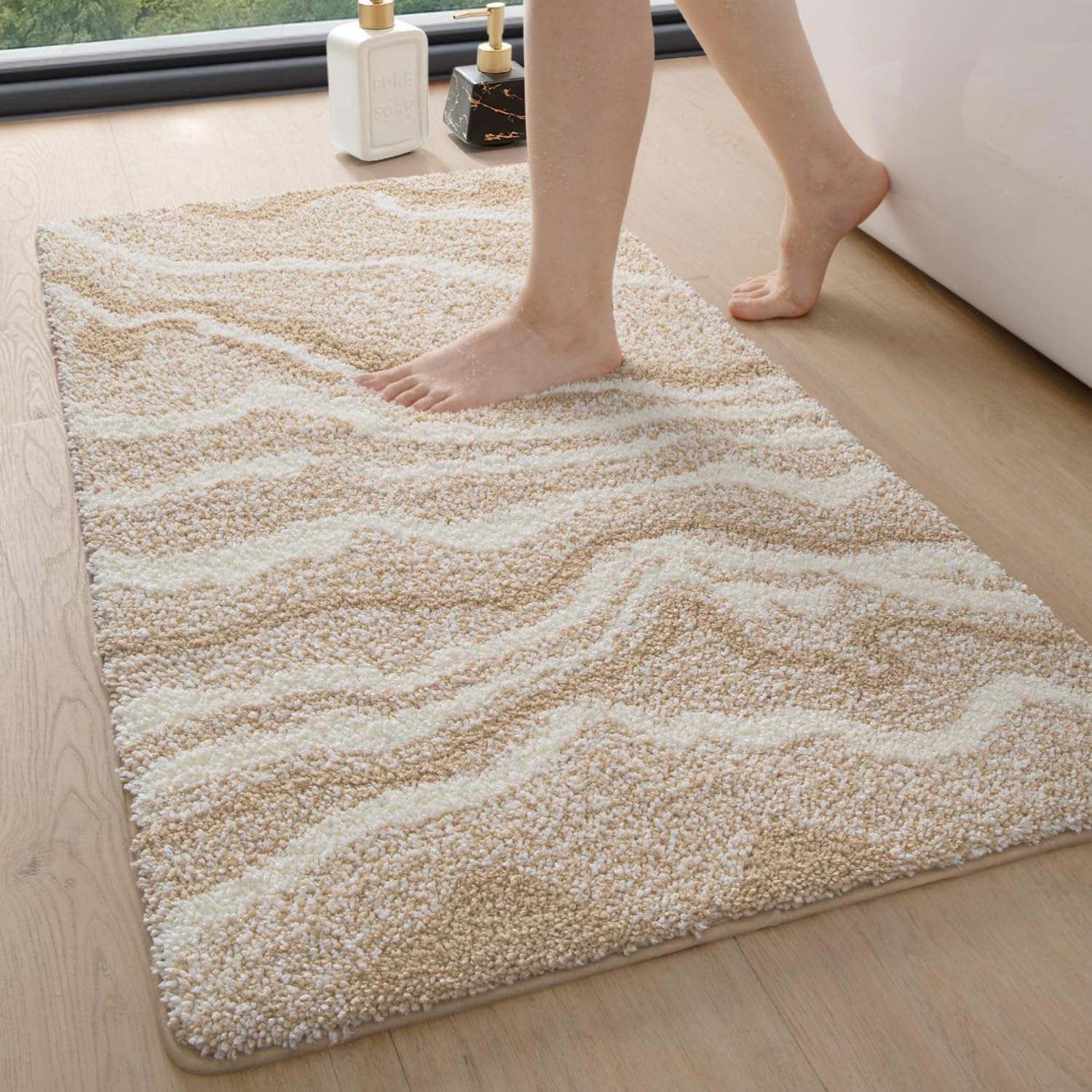 • ИЗКЛЮЧИТЕЛНО АБСОРБИРАЩ Килимът ни за баня абсорбира вода за секунди и предпазва пода ви от капеща вода, като го поддържа чист и сух. Килимчето за баня съхне бързо, без да мирише.