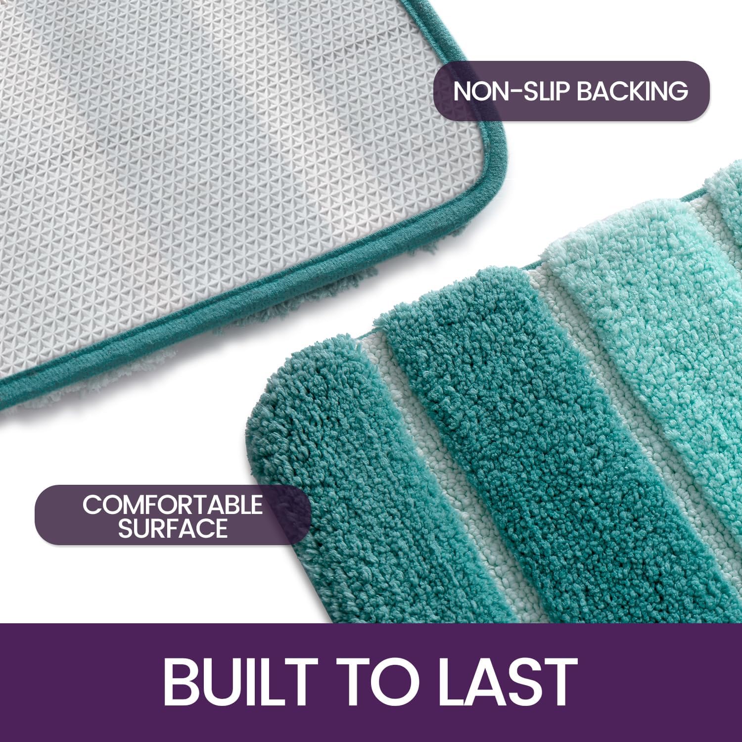 • Неплъзгаща се подложка: неплъзгащата се долна страна е изработена от TPR материал. Тя помага постелката за баня да се държи здраво на място, без да се подхлъзва. Уверете се, че подът под килима е сух, за да предотвратите подхлъзване.