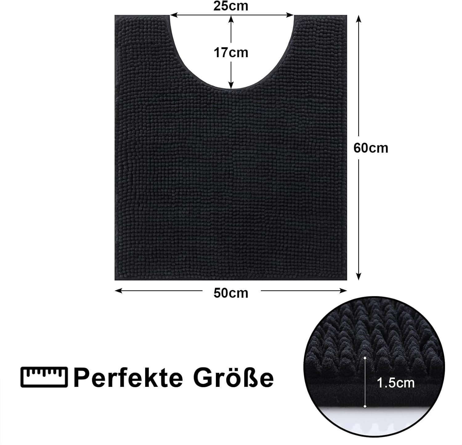 Килим за баня Homaxy Chenille, неплъзгащ се, мек килим за тоалетна с изрез 50 x 60 см, абсорбираща постелка за баня, поставка за тоалетна, переща се постелка за тоалетна, черен