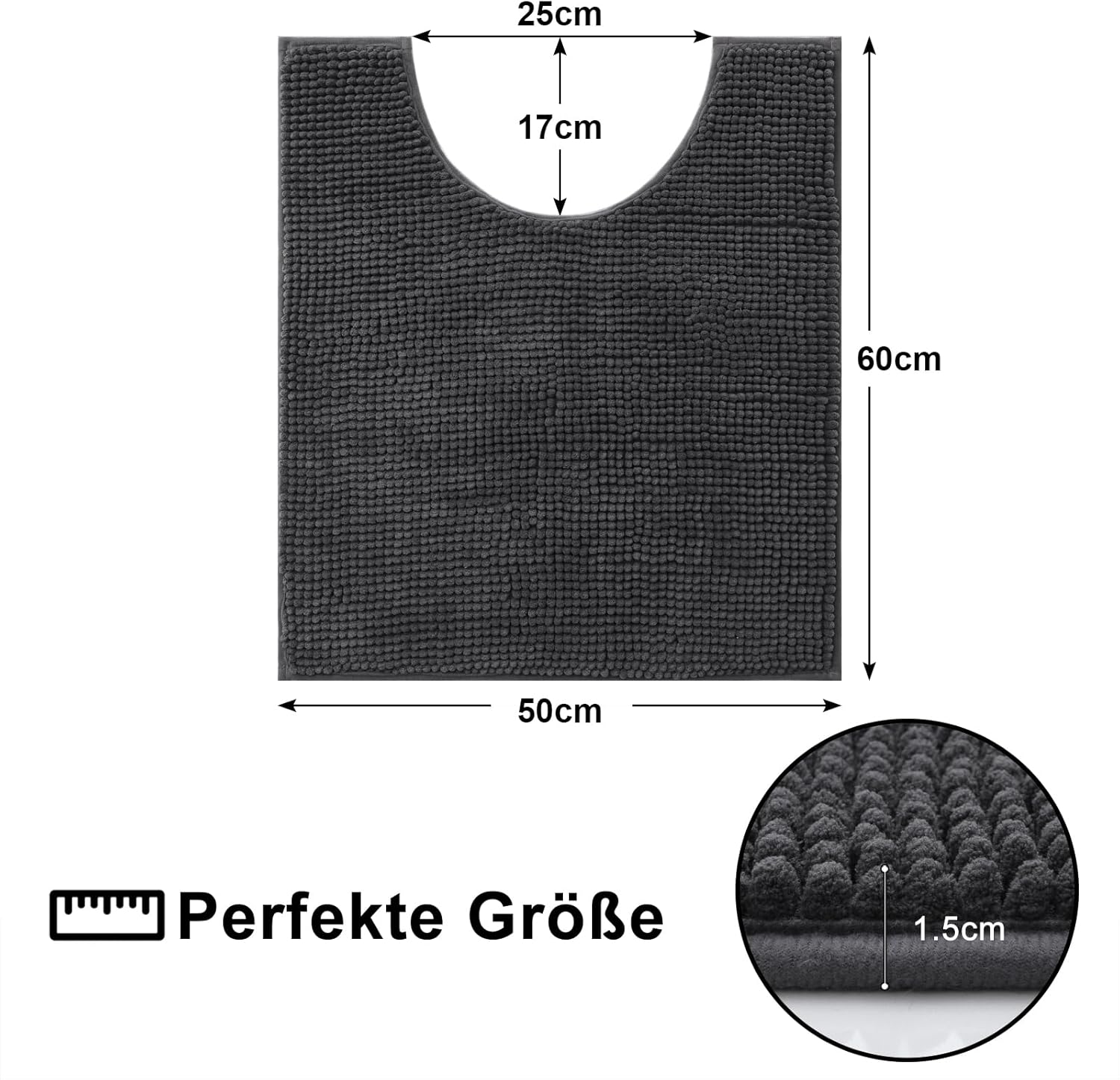 Килим за баня Homaxy Chenille, неплъзгащ се, мек, за тоалетна с изрез 50 x 60 см, абсорбираща поставка за тоалетна, постелка за баня, която може да се пере, тъмносива