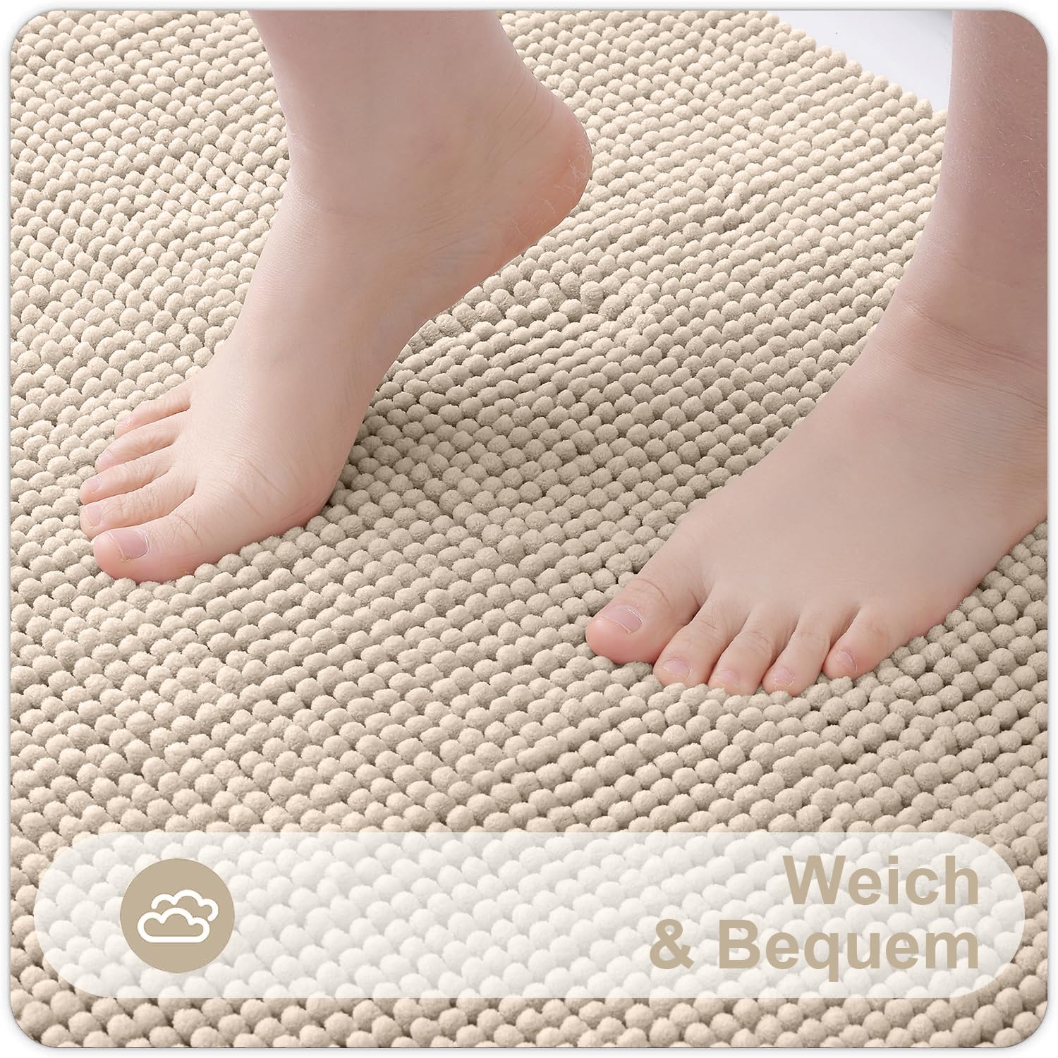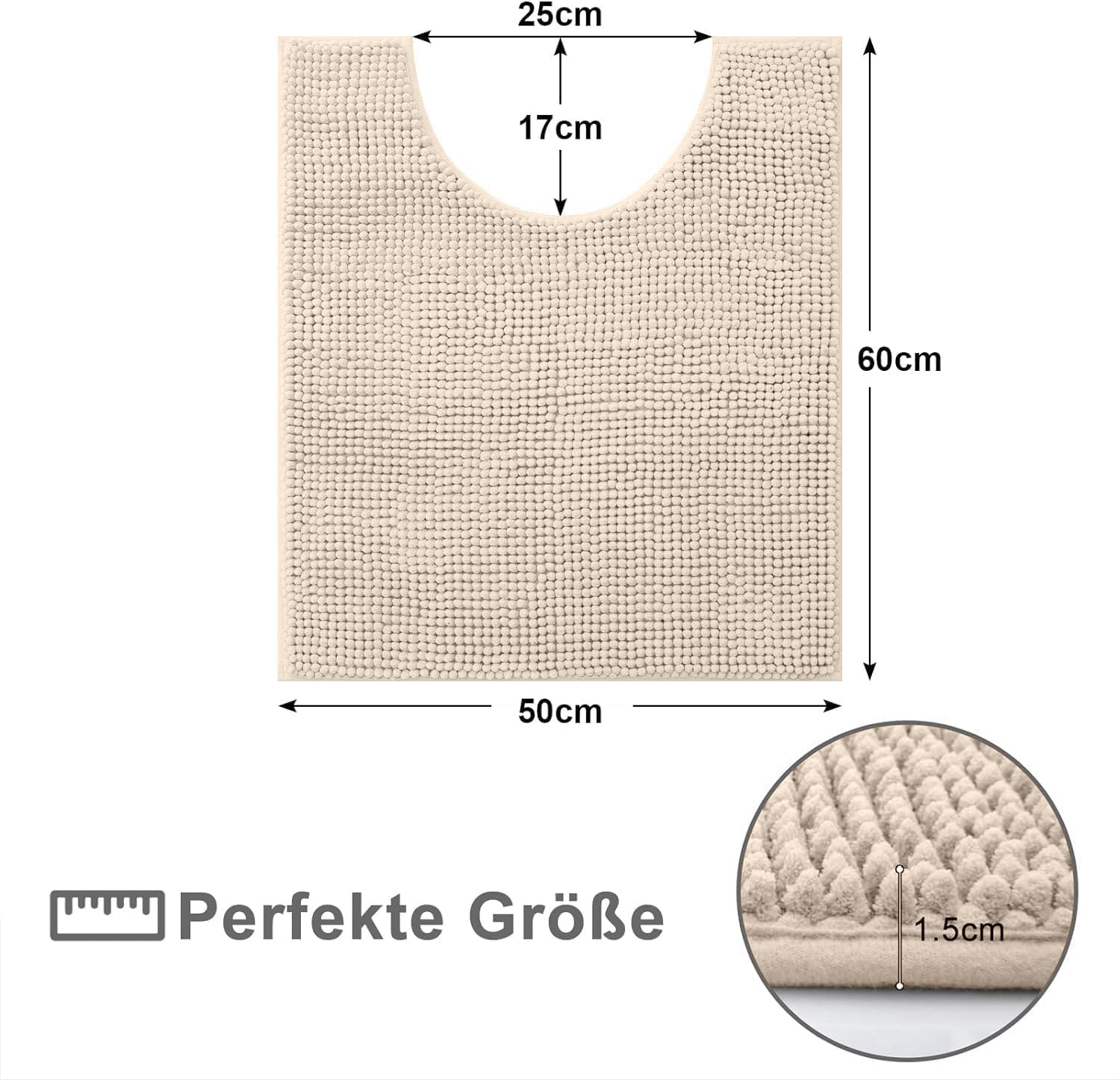 Килим за баня Homaxy Chenille, неплъзгащ се, мек, за тоалетна с изрез 50 x 60 см, абсорбираща постелка за баня, поставка за тоалетна, переща се постелка за тоалетна, бежов