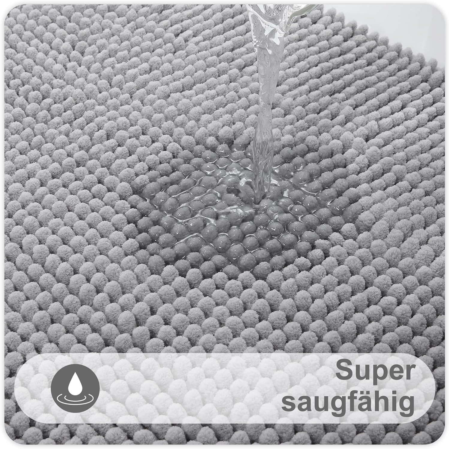 • Ултра абсорбираща: изключително меката, рошава материя играе перфектна роля за абсорбирането на вода и предпазва подовете ви от капеща вода, когато излезете от ваната. Водата в килима за баня изсъхва бързо, което има добър ефект при постоянна употреба и поддържа банята чиста.