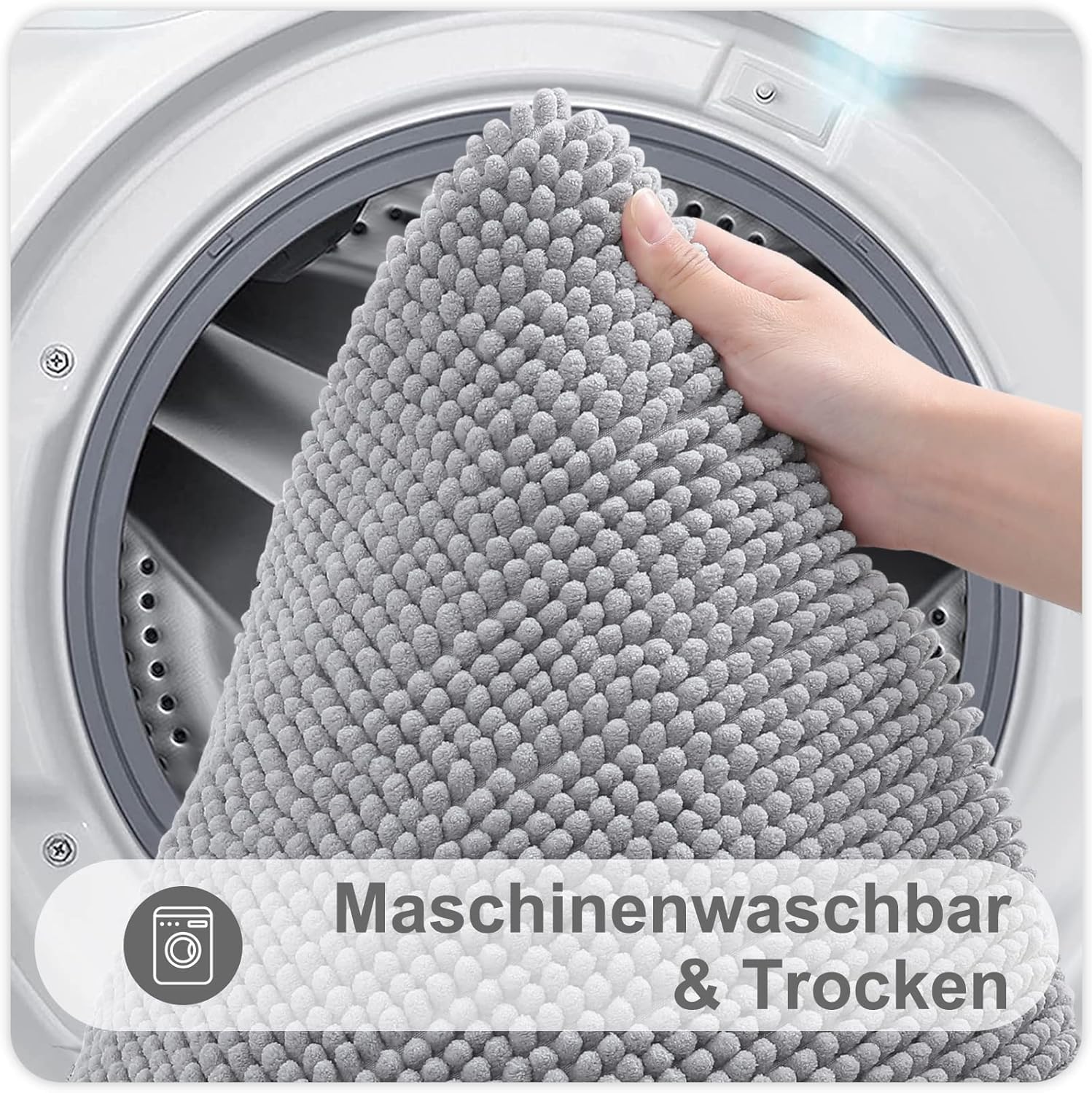 • Лесна поддръжка и може да се пере в пералня: тази постелка за баня може да се пере в пералня. Можете просто да я сложите в пералнята и да използвате деликатен цикъл за автоматично пране, след което да използвате режима на ниска температура в сушилнята, за да я изсушите, или просто да я поставите директно на слънце, за да изсъхне на въздух.