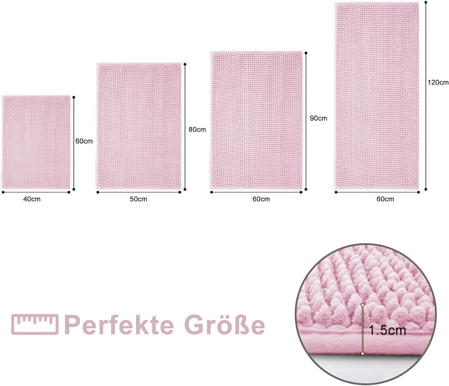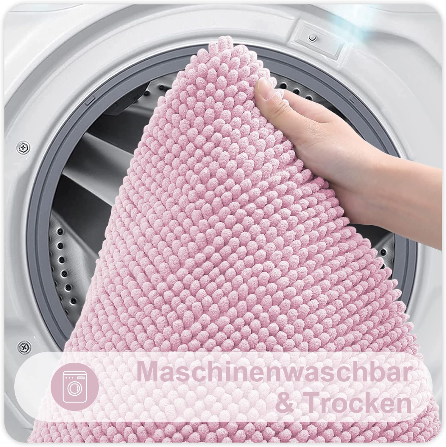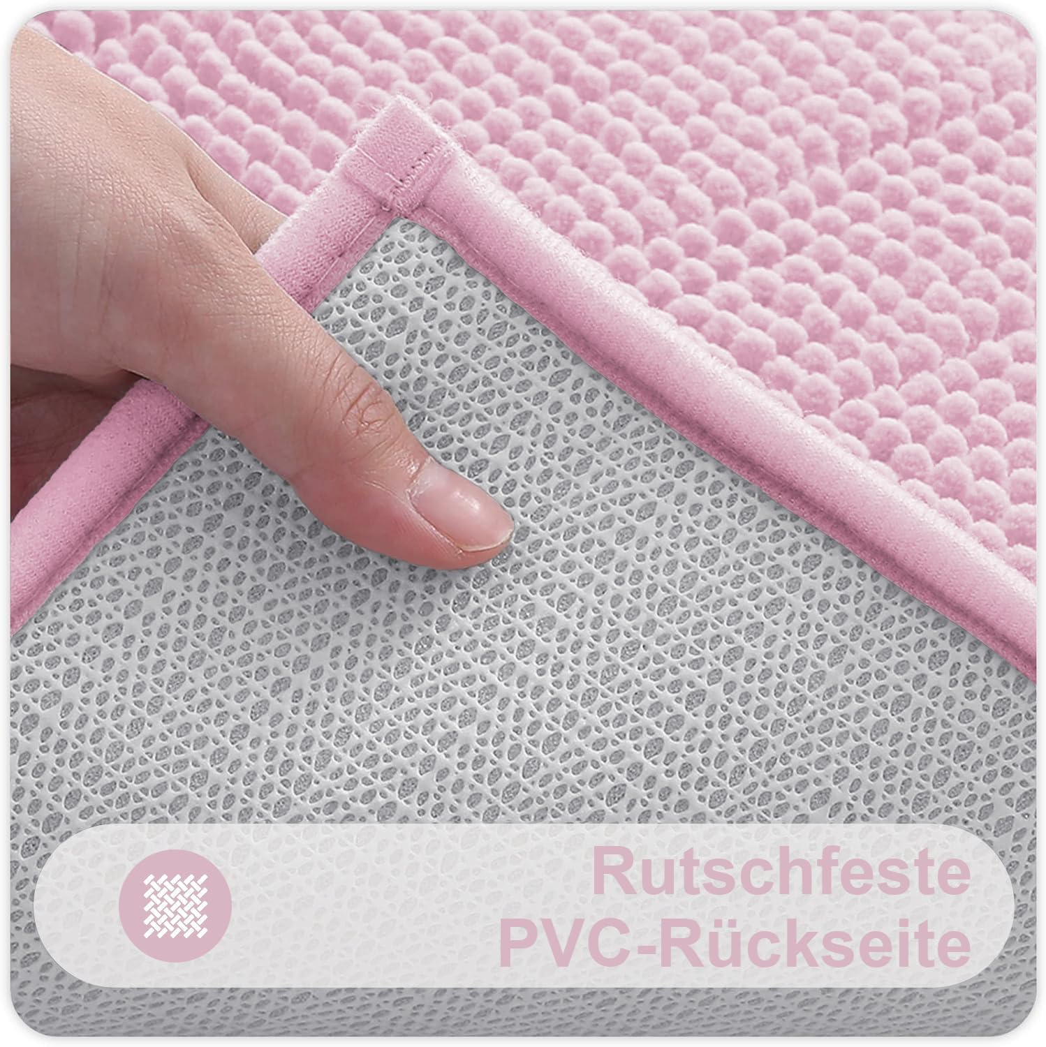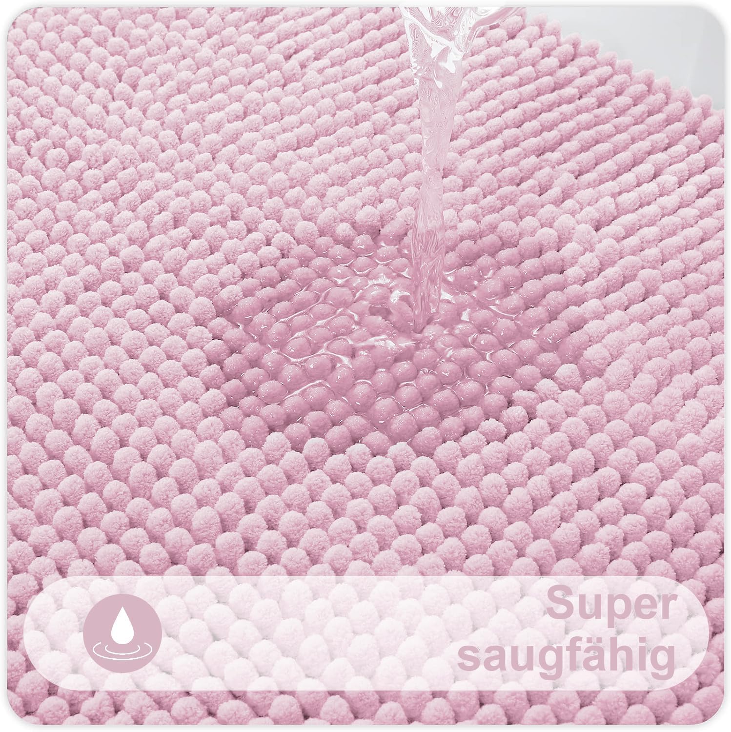 Килим за баня Homaxy Chenille, Неплъзгаща се постелка за баня, Переща се постелка за баня, Мека постелка за баня, Абсорбираща постелка за душ за баня - 40 x 60 см, Розов