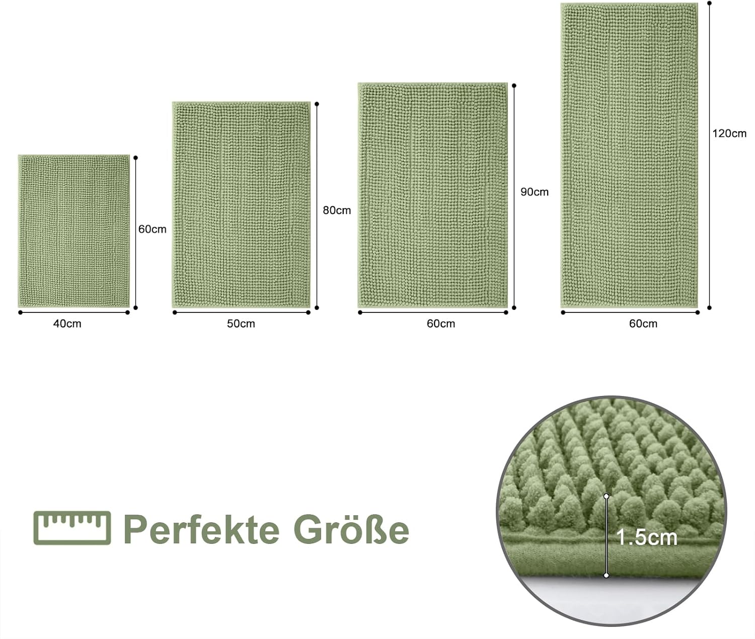 Килим за баня Homaxy Chenille, Неплъзгаща се постелка за баня, Переща се постелка за баня, Мека постелка за баня, Абсорбираща постелка за душ за баня - 50 x 80 см, Зелен градински чай