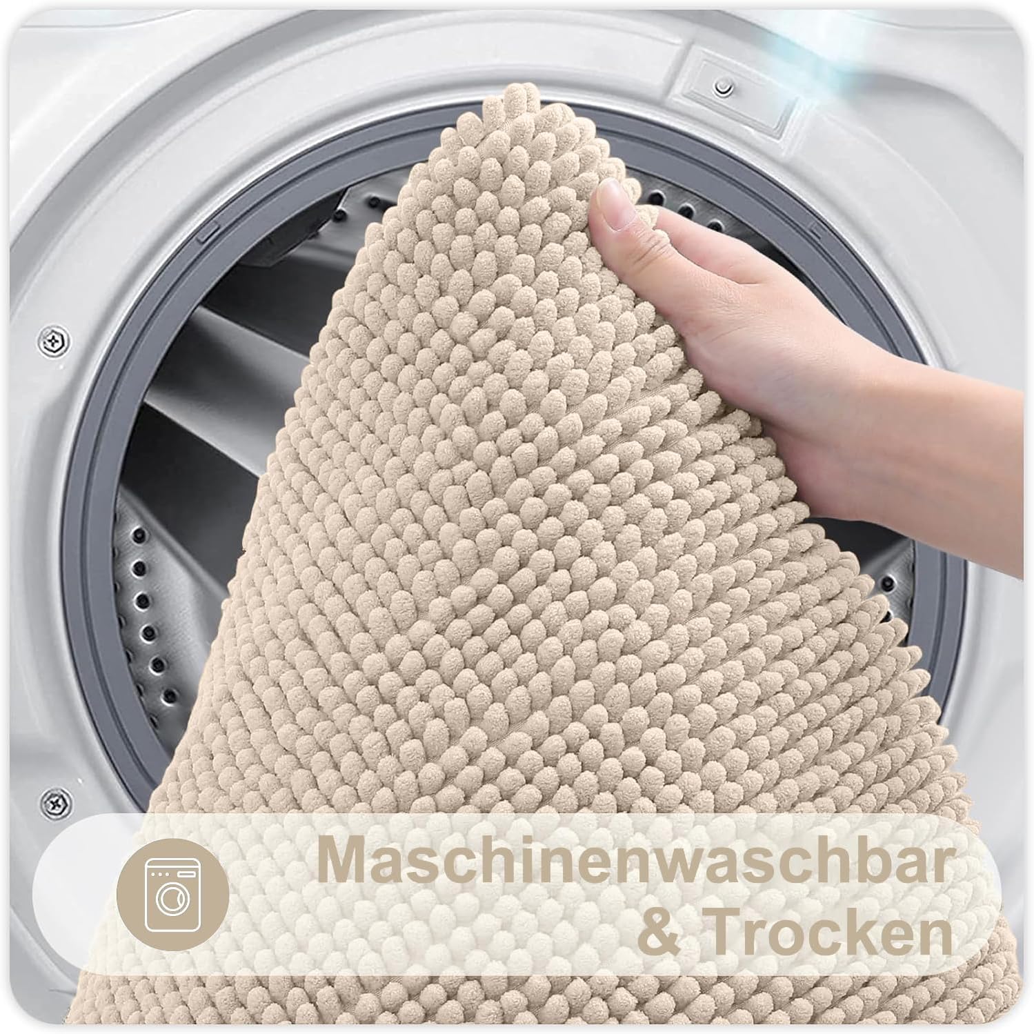 Килим за баня Homaxy Chenille, Неплъзгаща се постелка за баня, Переща се постелка за баня, Мека постелка за баня, Абсорбираща постелка за душ за баня - 60 x 120 см, Бежов