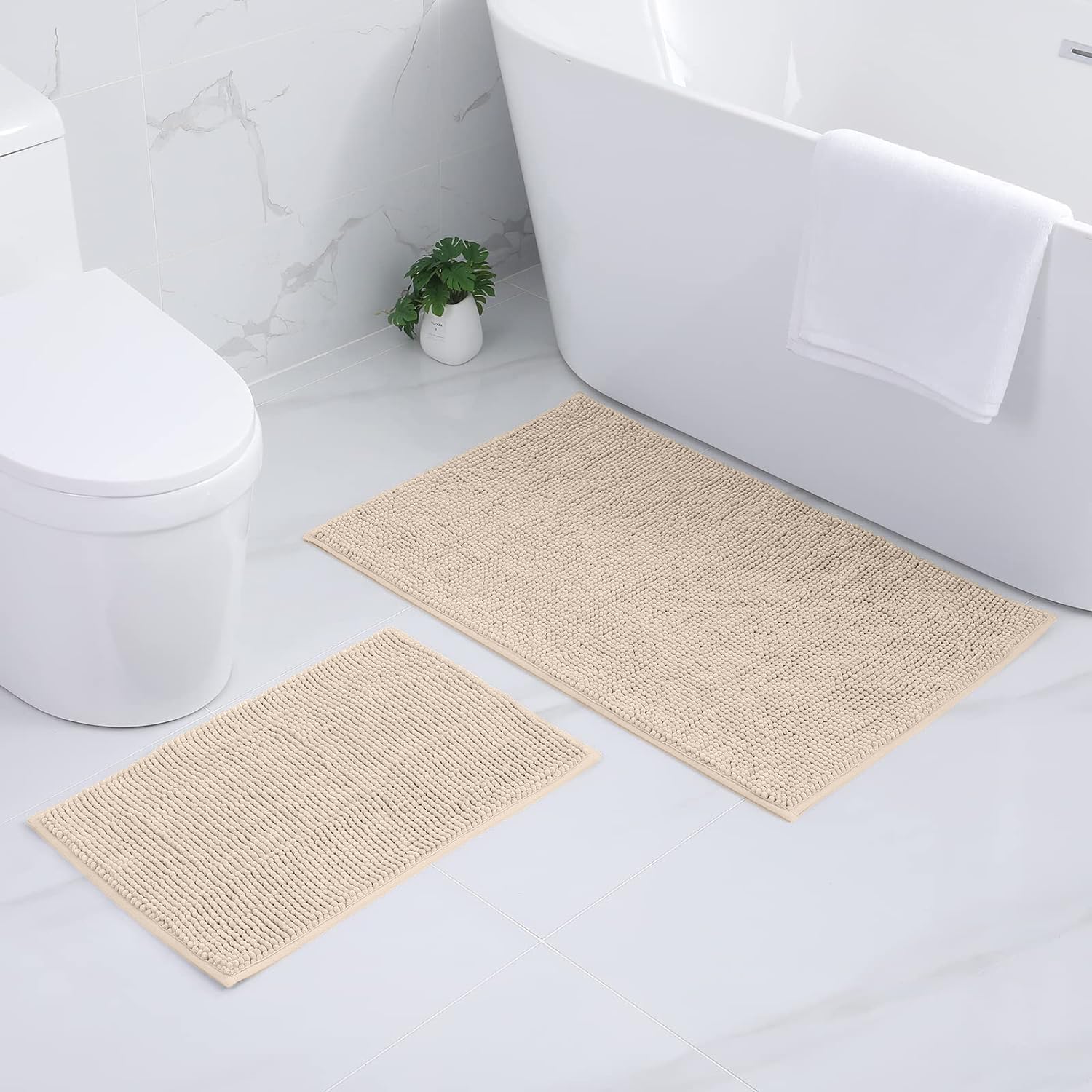 Килим за баня Homaxy Chenille, Неплъзгаща се постелка за баня, Переща се постелка за баня, Мека постелка за баня, Абсорбираща постелка за душ за баня - 60 x 90 см, Бежов