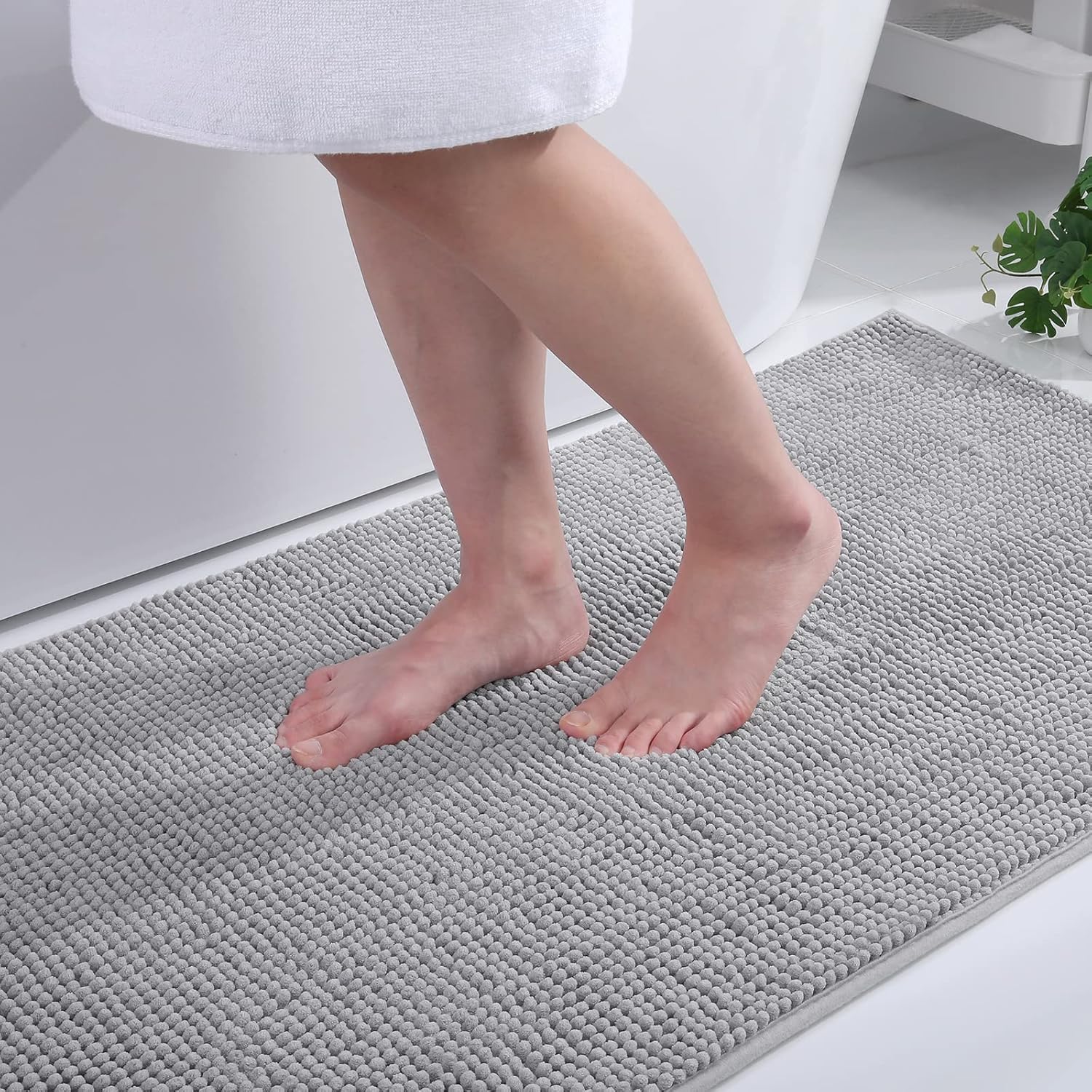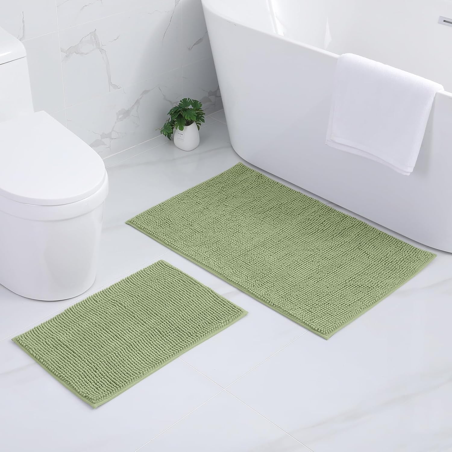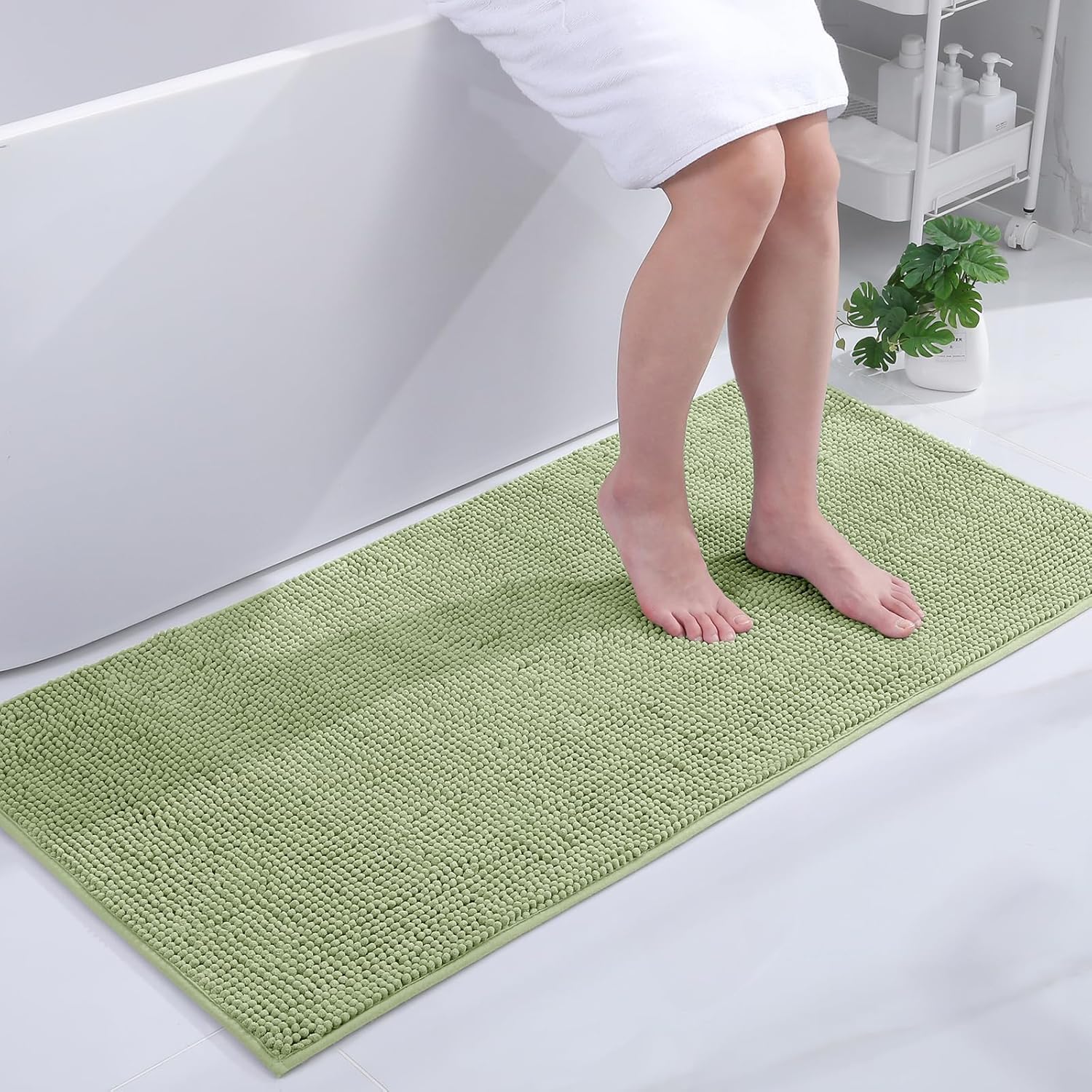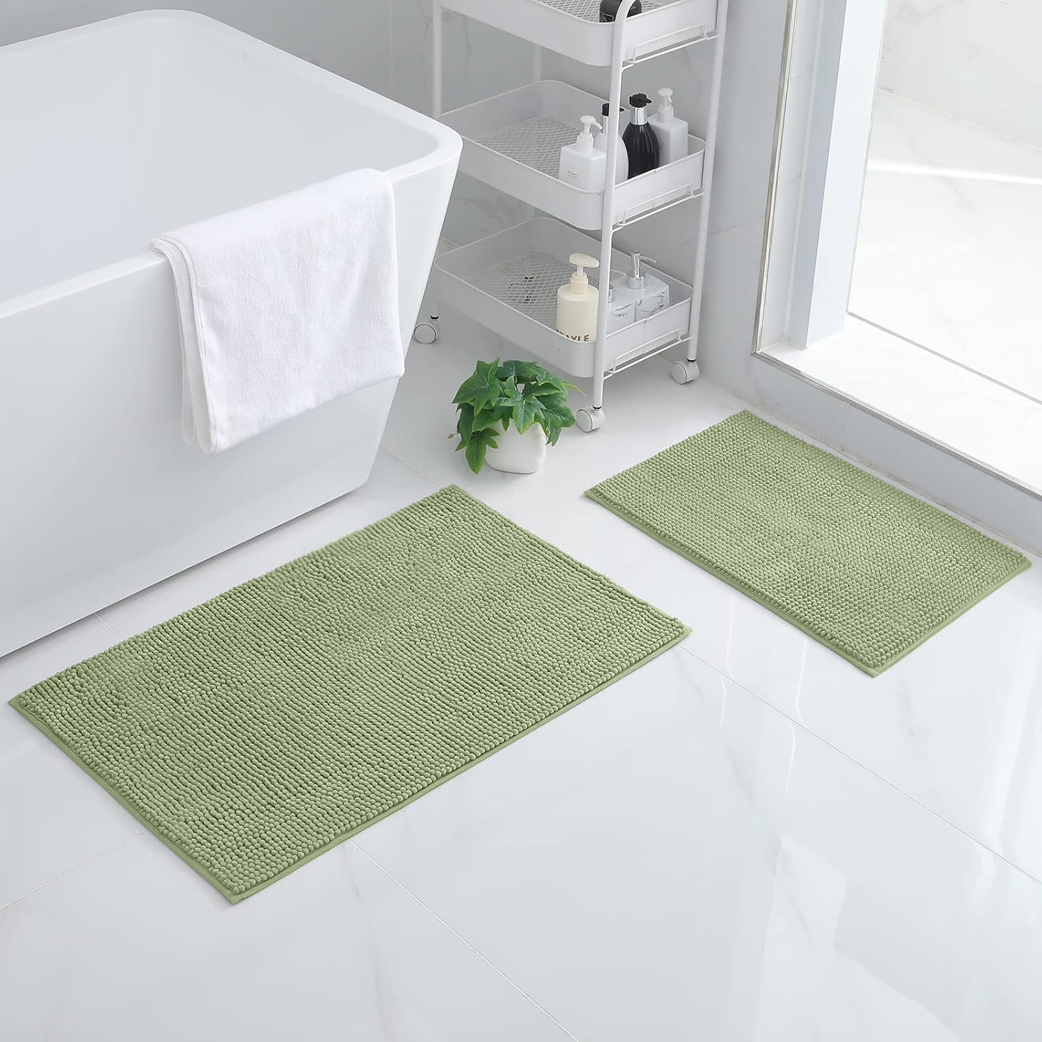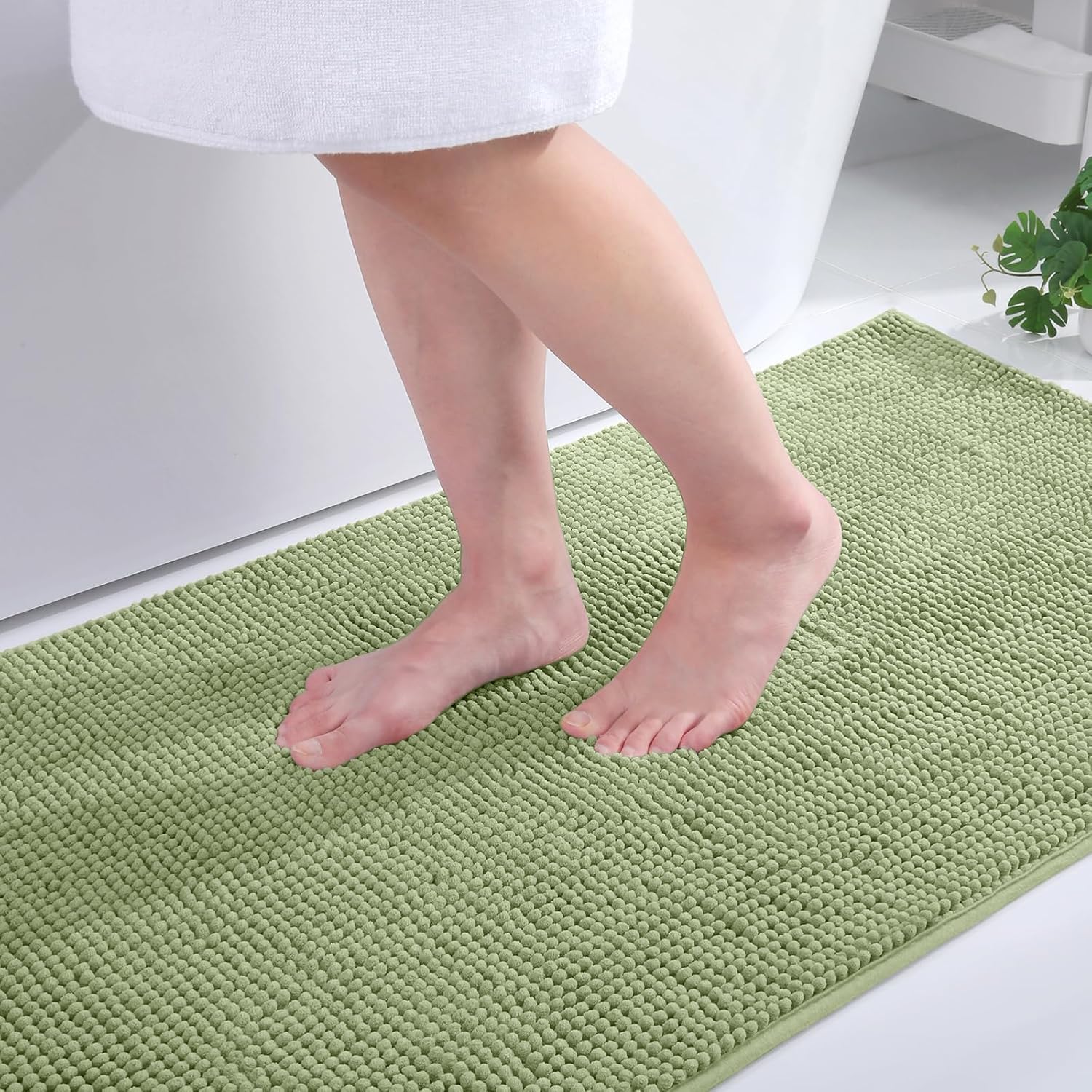 Килим за баня Homaxy Chenille, Неплъзгаща се постелка за баня, Переща се постелка за баня, Мека постелка за баня, Абсорбираща постелка за душ за баня - 60 x 90 см, Зелен градински чай