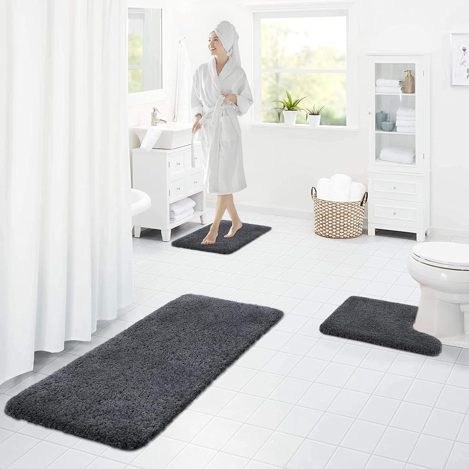 Килим за баня Homaxy, неплъзгаща се постелка за баня, която може да се пере, мек пухкав килим за баня, рошава постелка за баня от микрофибър с висок косъм - 60 x 120 см, тъмносив