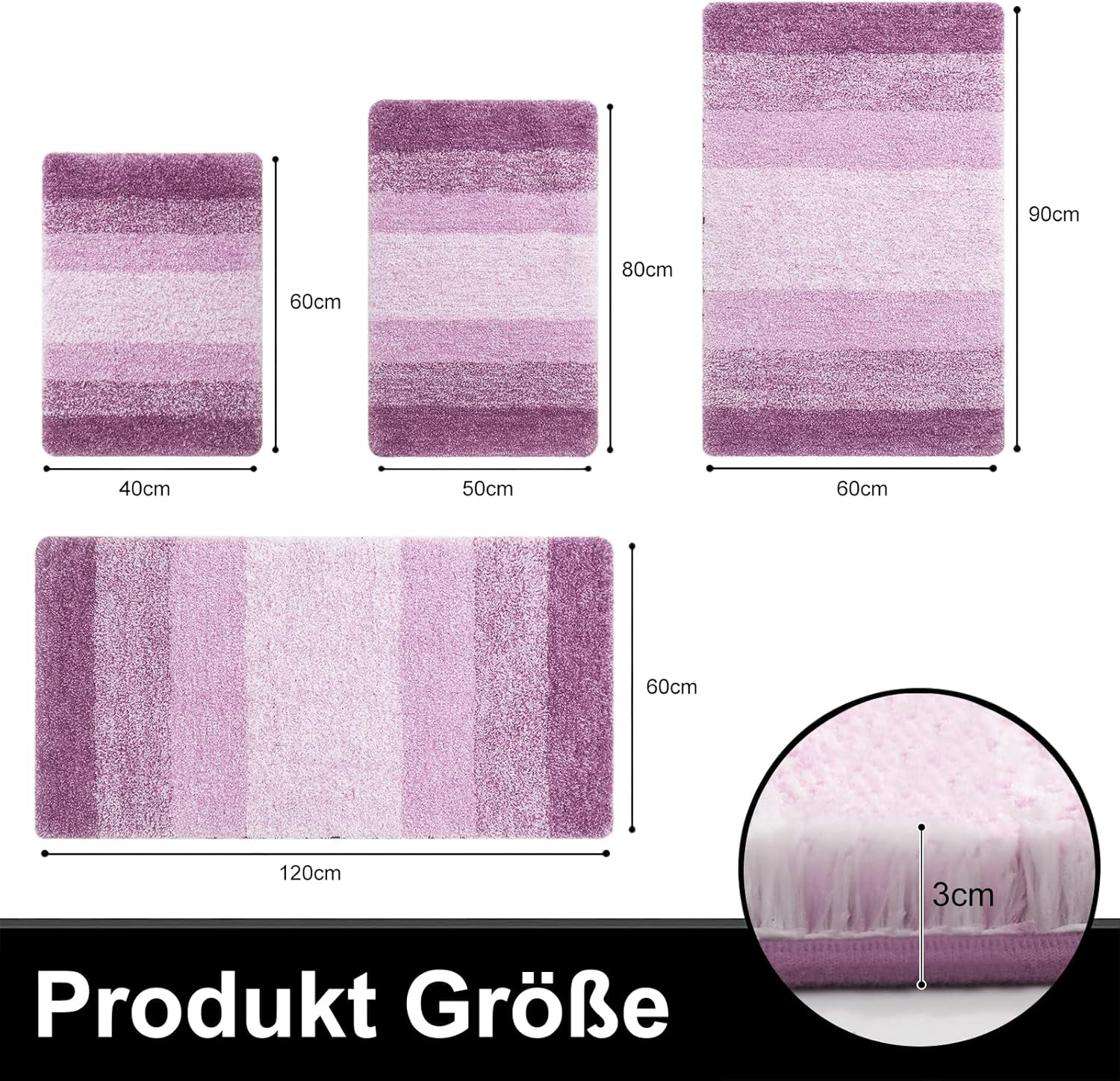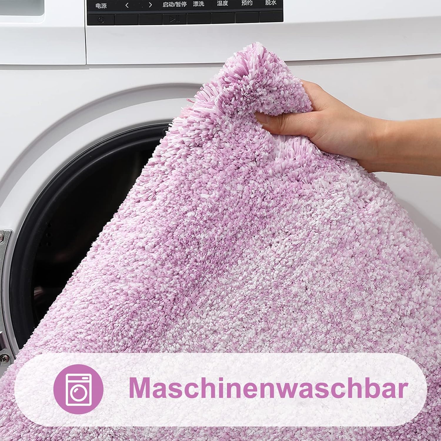 Килим за баня Homaxy Soft 60 x 120 см, Неплъзгаща се постелка за баня, която може да се пере, Пухкава постелка за баня с висок косъм, Абсорбираща постелка за баня от микрофибър, Постелка за душ (Лилава)