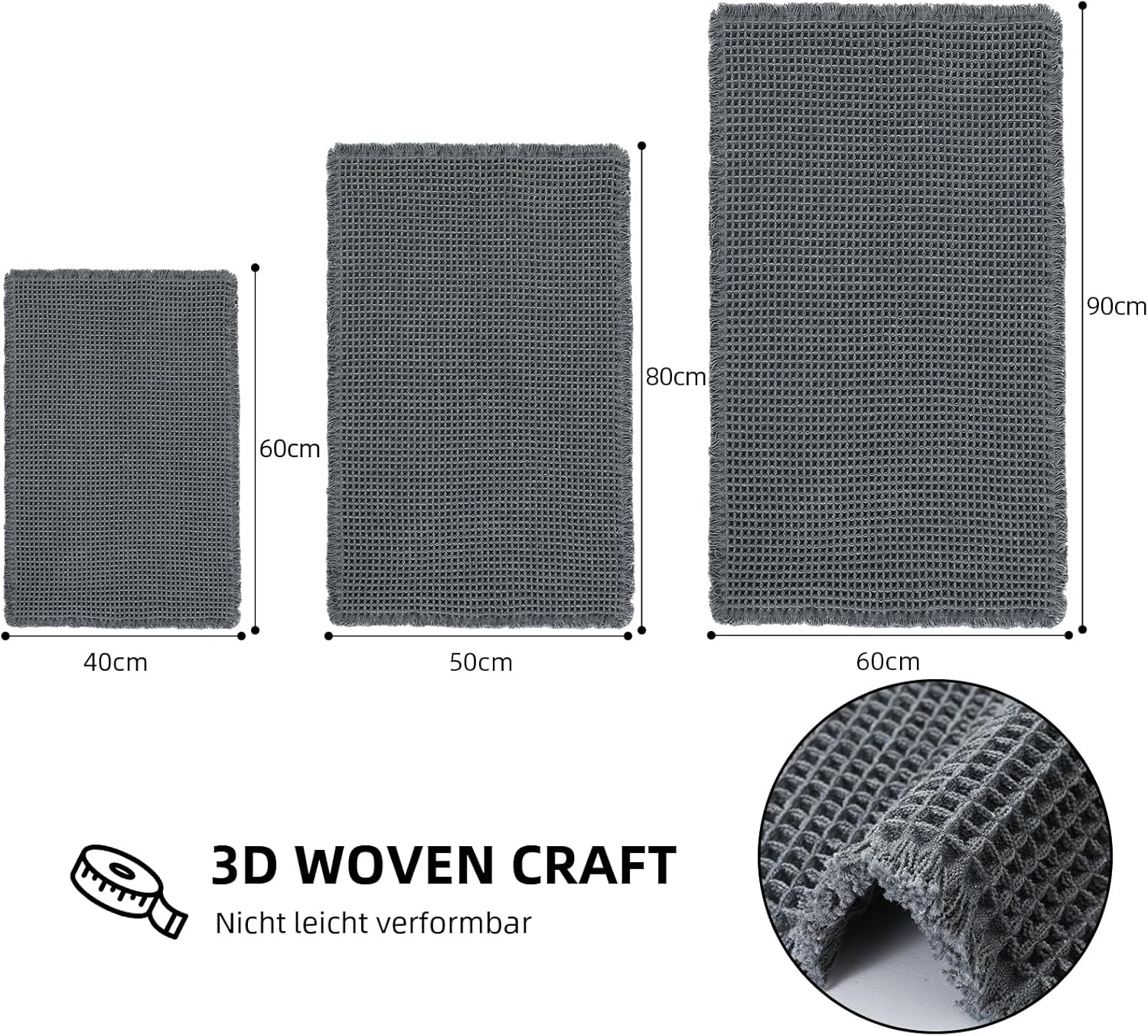 Нашите постелки за баня са изработени с високо абсорбиращ вафлен мотив. Тяхната абсорбция гарантира, че банята ви ще остане суха.