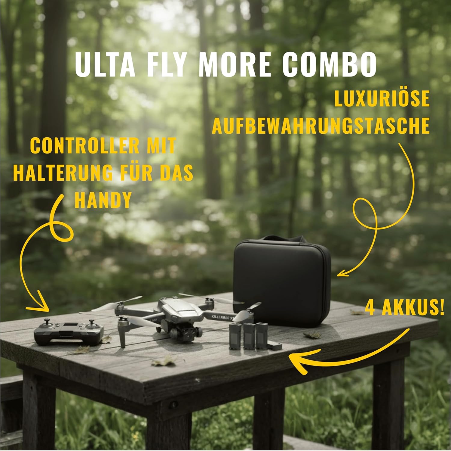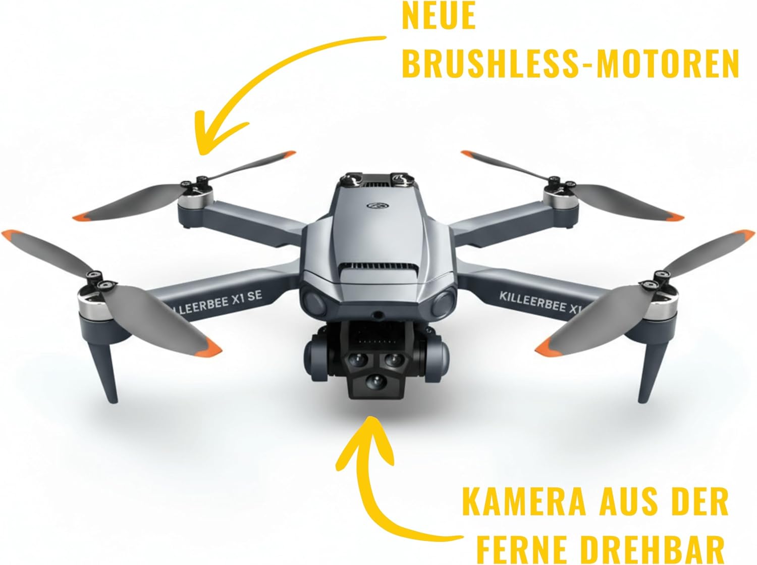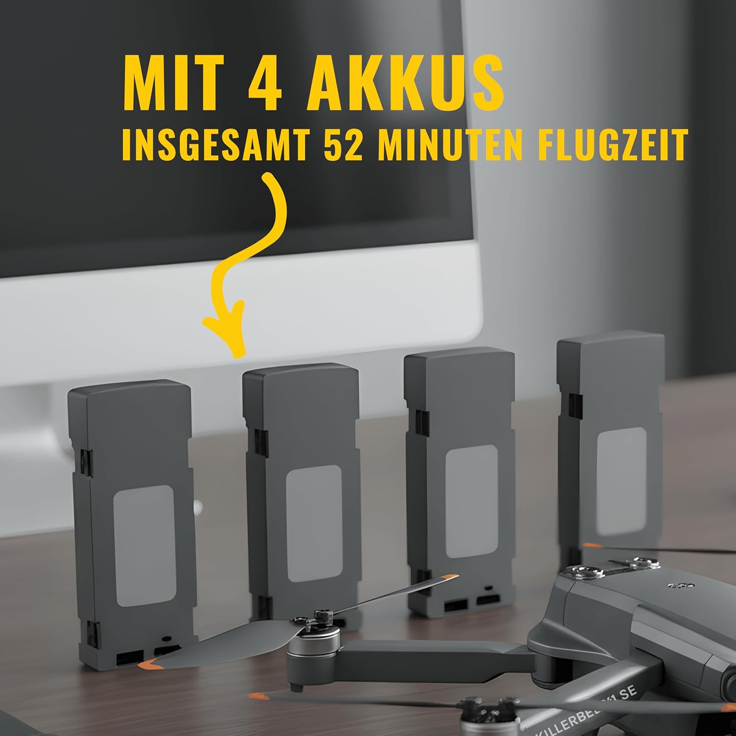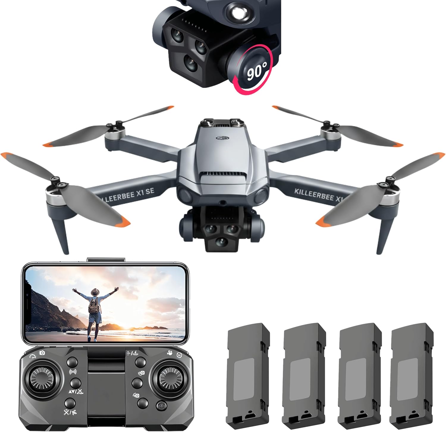 Killerbee X1 SE Sky Predator - Дрон с двойна камера - Подходящ за деца и възрастни - Безчеткови мотори - Ultra Fly More Combo - 48 минути време за полет - Включва чанта и 4 батерии