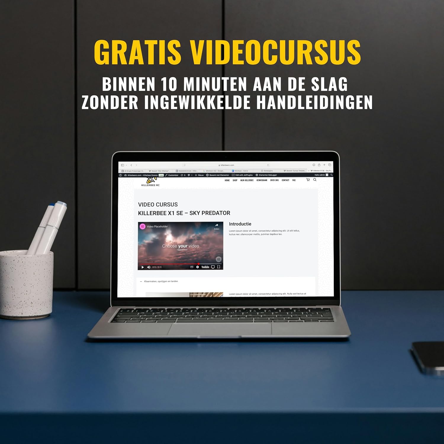 • Безплатен видео курс за дистанционно управление на Killerbee: При покупка ще получите код за отстъпка за нашия онлайн видео курс. Само за 10 минути ще научите основните умения за управление на вашия дрон, така че можете бързо да започнете да летите и да подобрите уменията си, без да се налага да четете сложни инструкции.