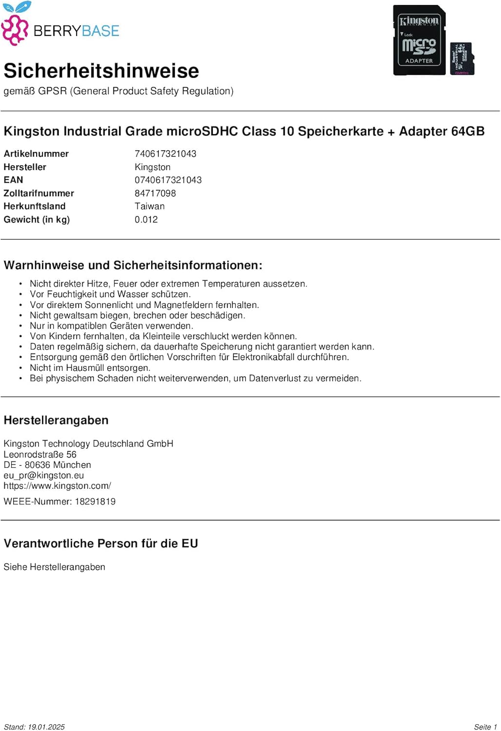 Индустриалната microSD карта на Kingston е проектирана и тествана, за да издържи на най-взискателните фактори на околната среда. С работна температура от -40 до 85 °C, тя работи нормално дори при екстремни пустинни жеги и до точка на замръзване. Картата използва водещ в индустрията PSLC режим, осигуряващ пикови скорости на трансфер до 100MB/s¹. Тя е проектирана за до 1920 TBW² с 30 000 P/E цикъла и има вграден набор от функции, специално пригодени за експлоатационния живот, производителността и индустриалните изисквания. Индустриалната microSD карта на Kingston се предлага с UHS-I SD адаптер и се предлага в капацитети от 8GB до 64GB³.