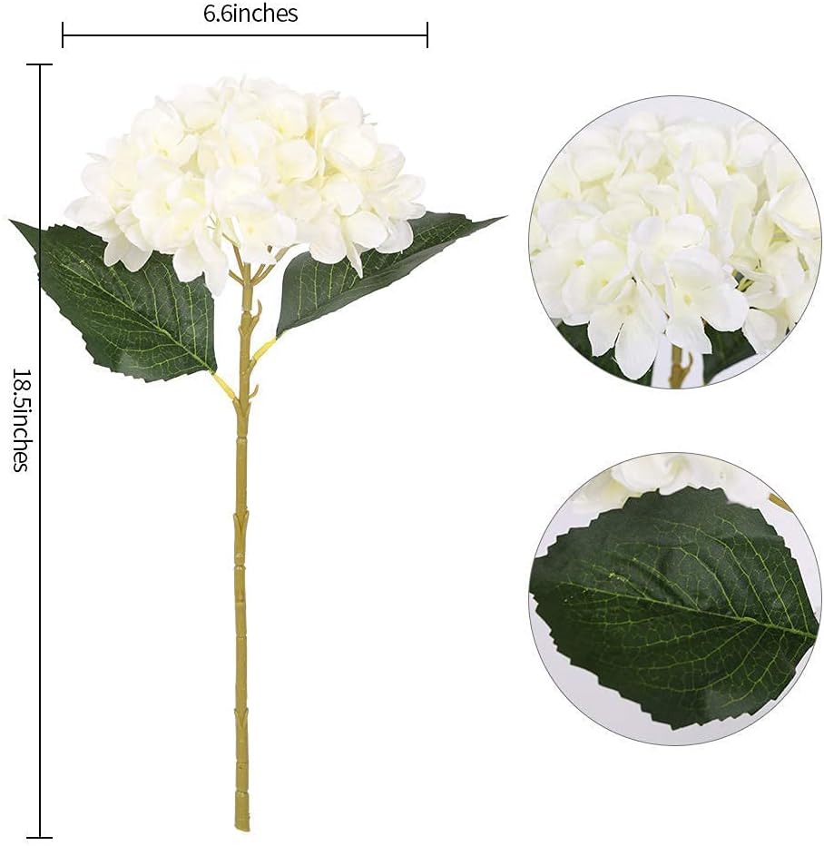 Kisflower 6 броя копринени изкуствени цветя от хортензия, реалистичен букет от хортензии за сватби, партита, офис, домашен декор (бял)