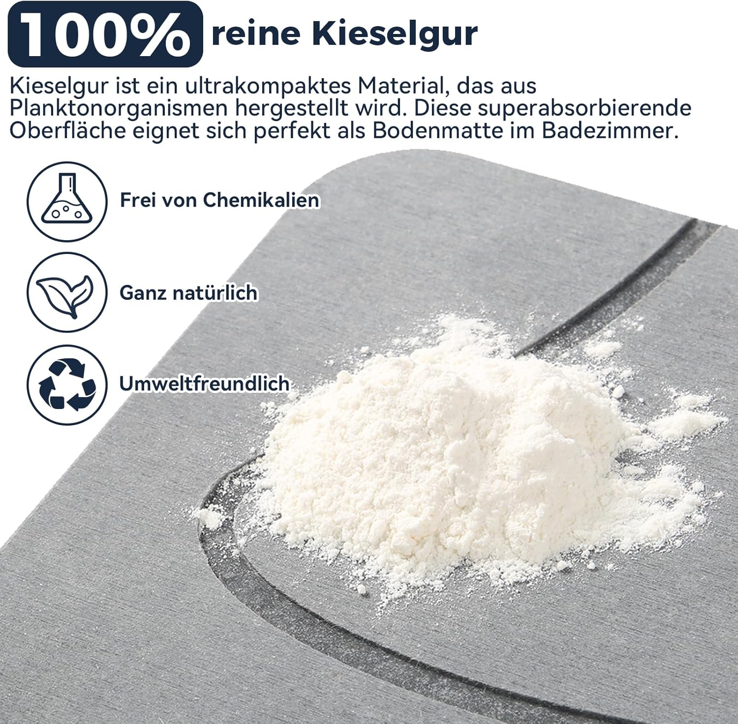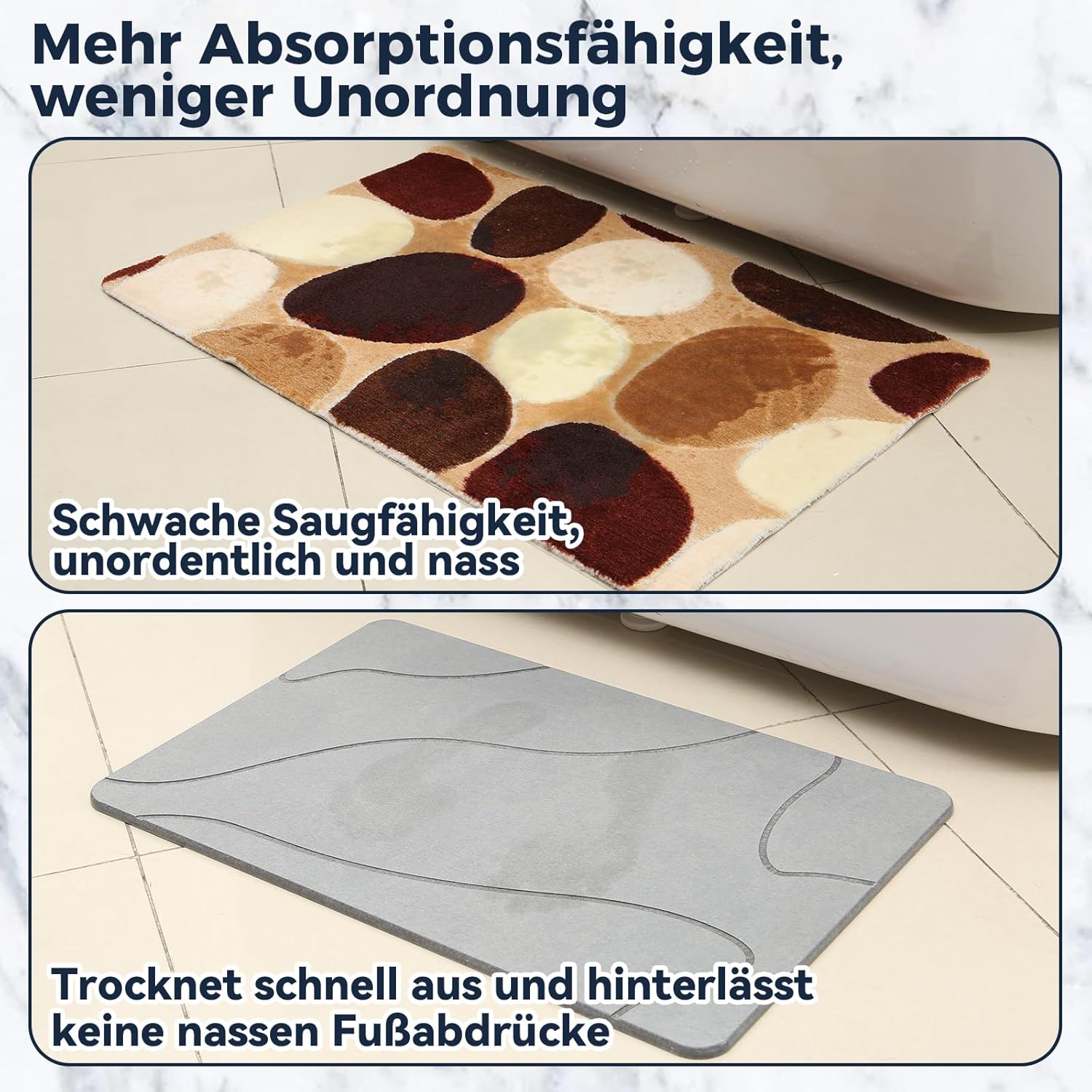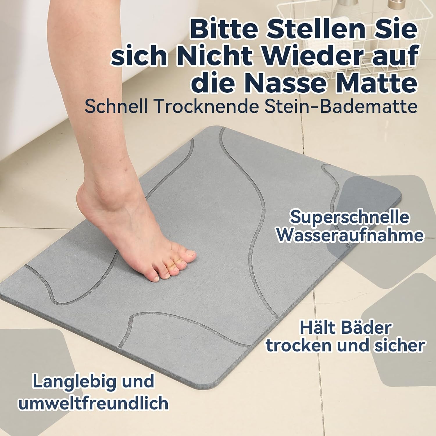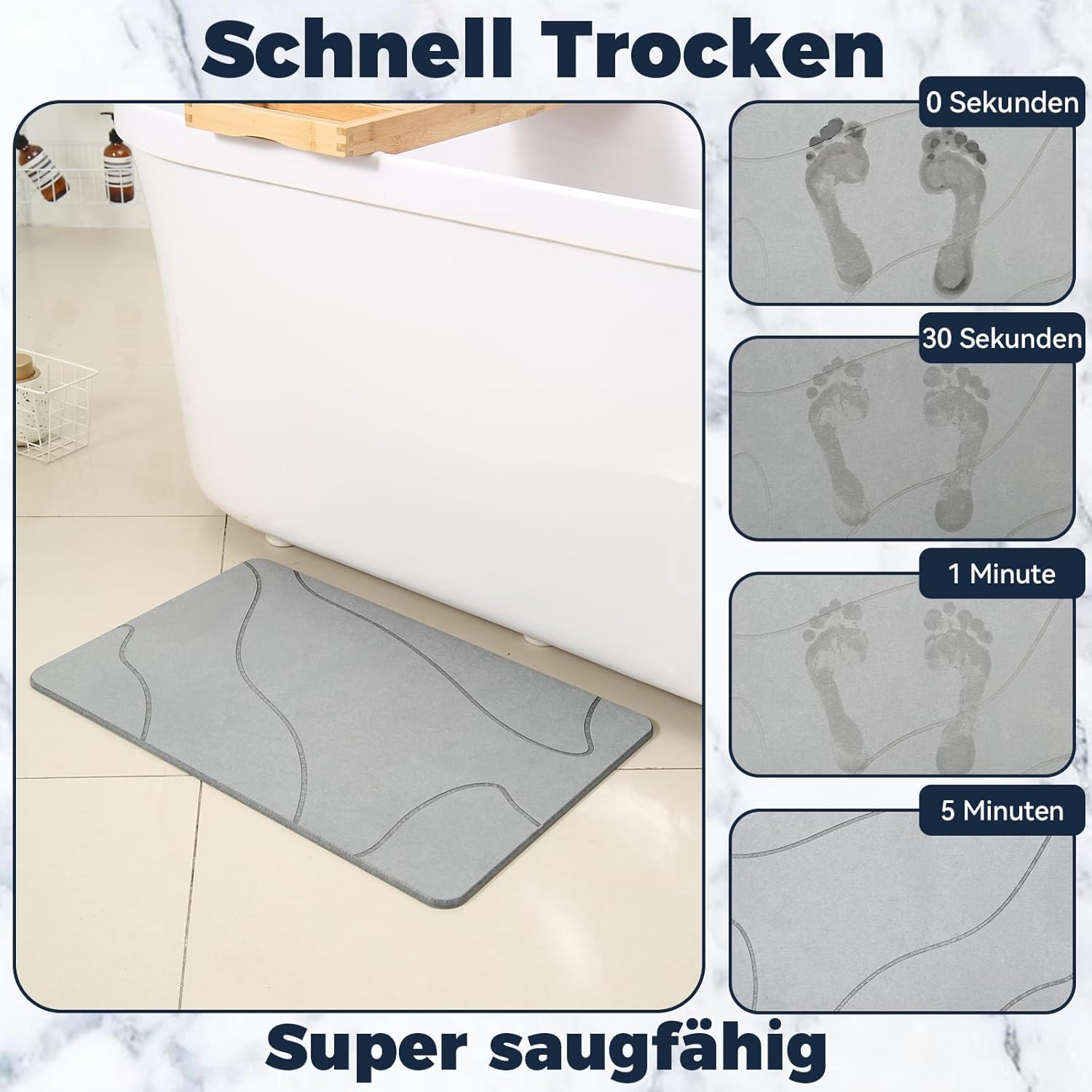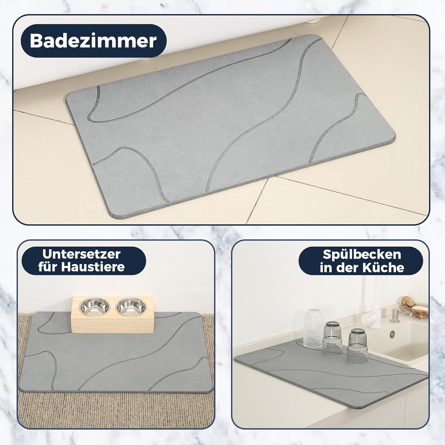 Изработени от издръжлива диатомитна пръст, нашите постелки за баня абсорбират влагата и съхнат бързо, за разлика от конвенционалните постелки за баня, които не го правят. Това поддържа работните повърхности в банята и кухнята, както и домакинските предмети чисти и подредени.