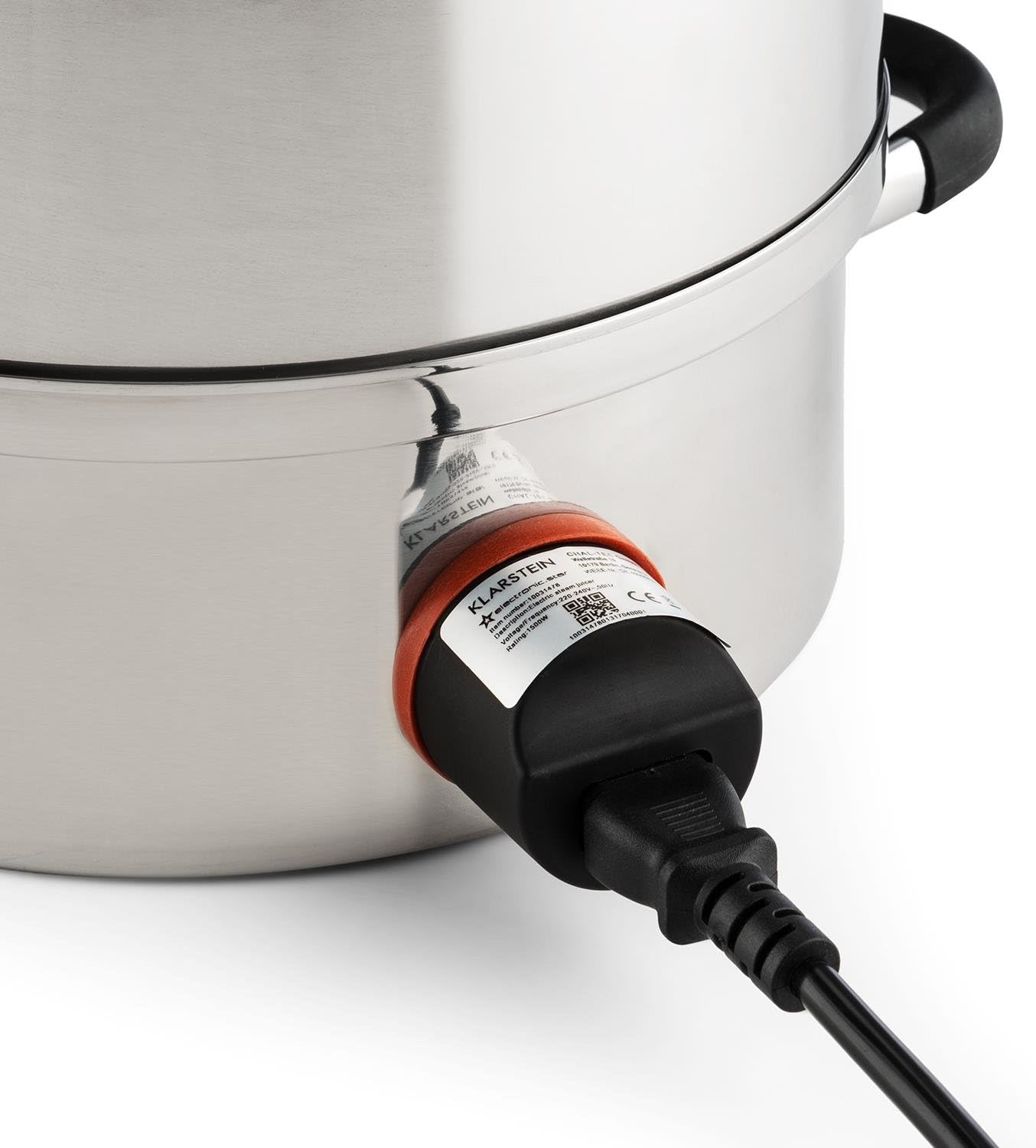 Независима от котлони или кухненски плотове благодарение на вградения нагревателен елемент с мощност 1500 W.