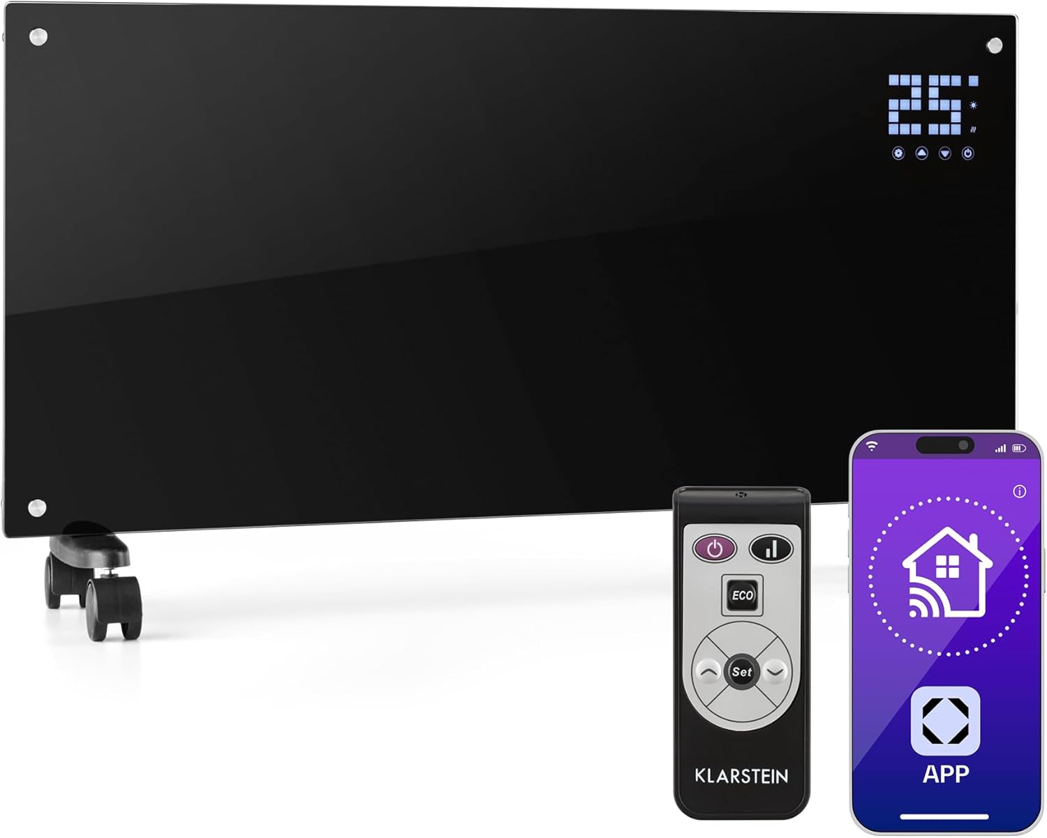 Klarstein електрически нагревател, конвекторен нагревател с подови колелца, мобилен енергоспестяващ, тих, стоящ уред, електрически радиатор с термостат и управление чрез приложение, 2000 W