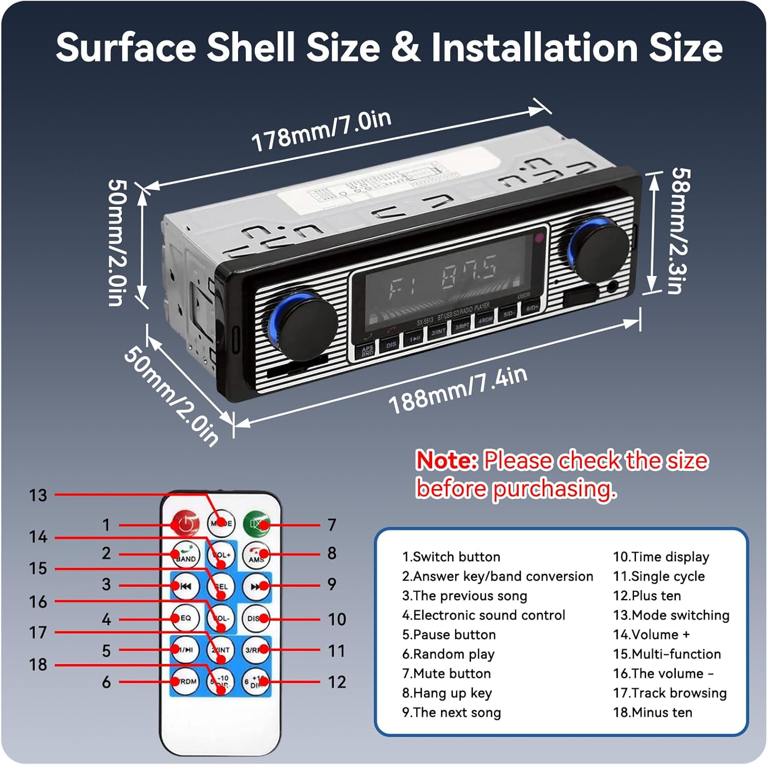Drücken Sie kurz zum Einschalten und drücken Sie lange drei Sekunden lang zum Ausschalten: Drücken Sie diese Taste wiederholt und das LCD zeigt die folgende Reihenfolge an: RAD10--USB-SD--AUX-IN-BTRolate nach links auf das vorherige Rack abgestimmt; Drehen Sie nach rechts, um auf den nächsten Track zu stimmen.