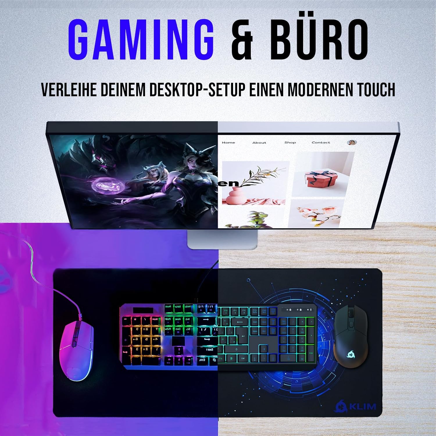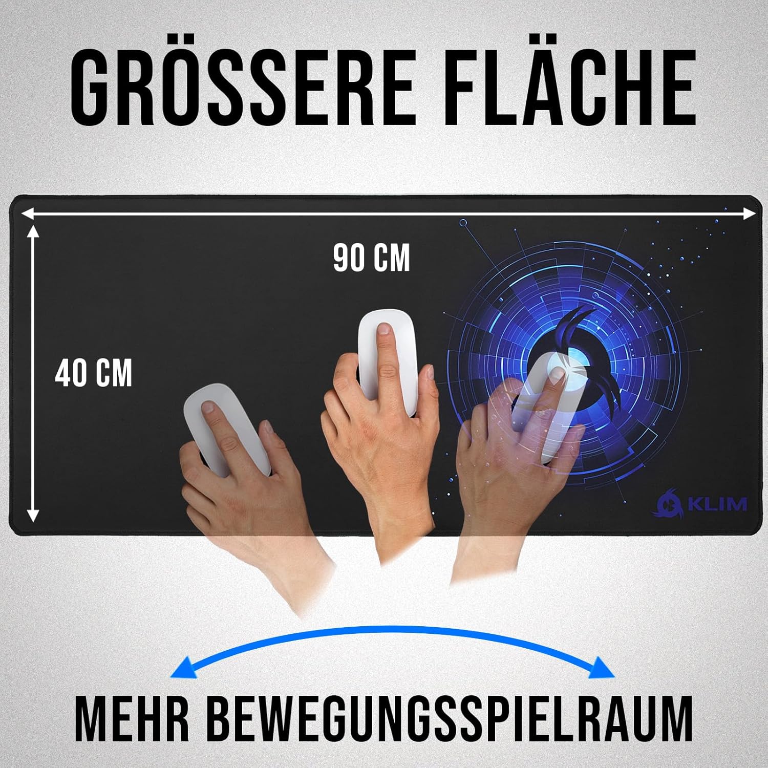 KLIM Mousepad XL - Удължена повърхност - Изключително голяма геймърска подложка за мишка - Неплъзгаща се гумена основа - Високопрецизна текстурирана повърхност - 900 x 400 x 4 мм - Син