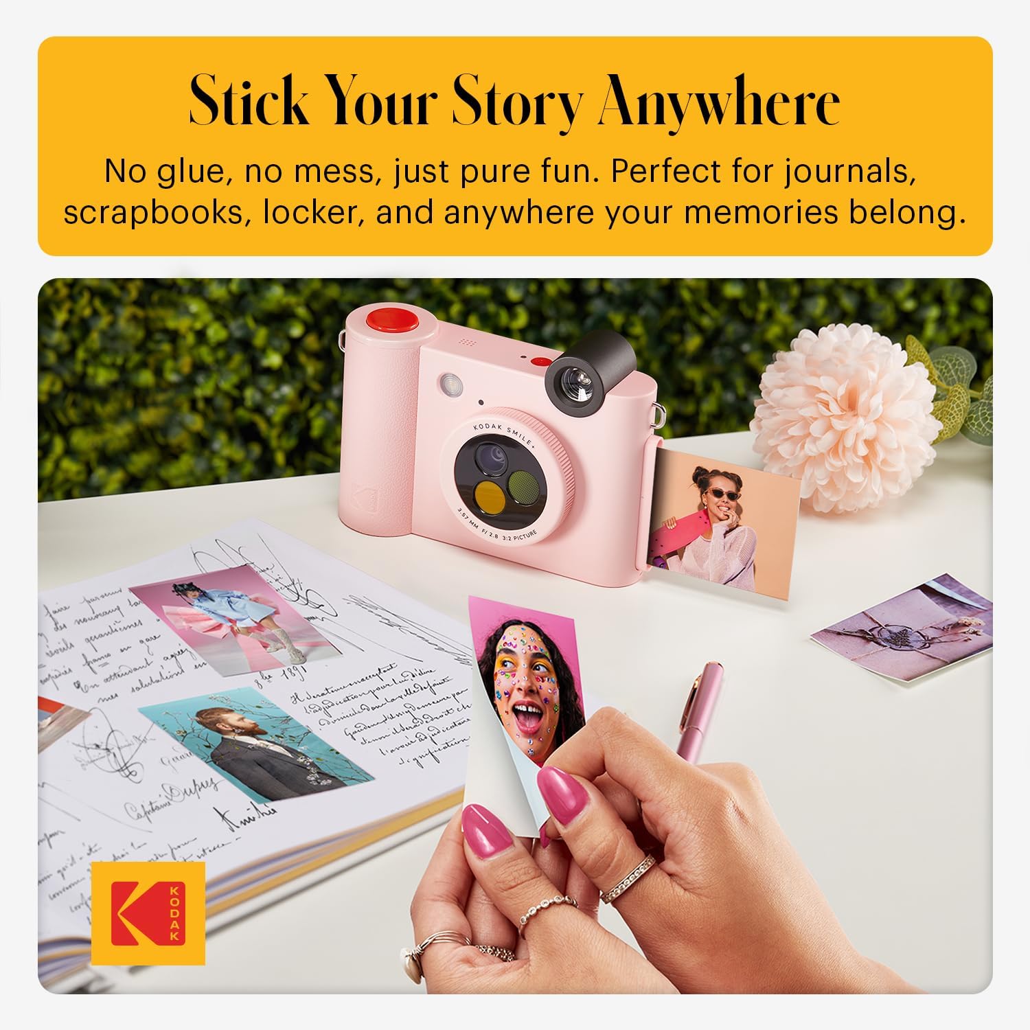 С дигиталния фотоапарат за моментално снимане KODAK Smile+, правенето на снимки отново е забавно. С това лесно за употреба и приятно устройство, усмивката ви никога няма да изчезне. Вземете този акумулаторен фотоапарат навсякъде, за да можете да правите снимки за спомен в парка, на почивка, на партита, на пътуване и т.н. А с вградените филтри за специални ефекти, правенето на нови снимки никога не става скучно. Добавете пикантност и вълнение към снимките си, като превключите към нов филтър за секунди. С този забавен фотоапарат снимките се открояват както никога досега. И тъй като този фотоапарат е съвместим с цинкова фотохартия, не е нужно да се притеснявате за закупуване на мастило. Направете снимка и гледайте прекрасното си изображение, отпечатано върху хартия без мастило със самозалепваща се подложка. Smile+ ви дава причина да се усмихнете.