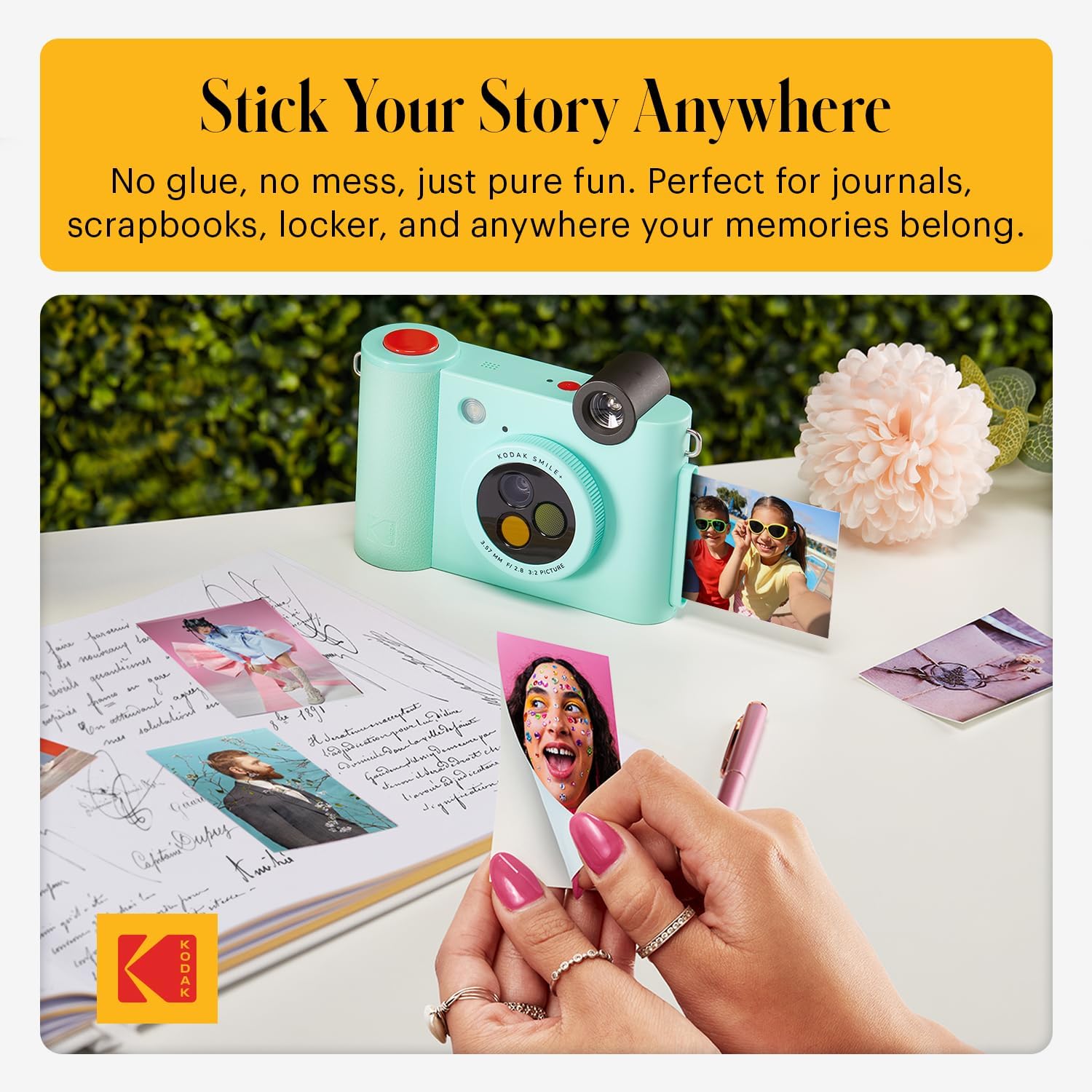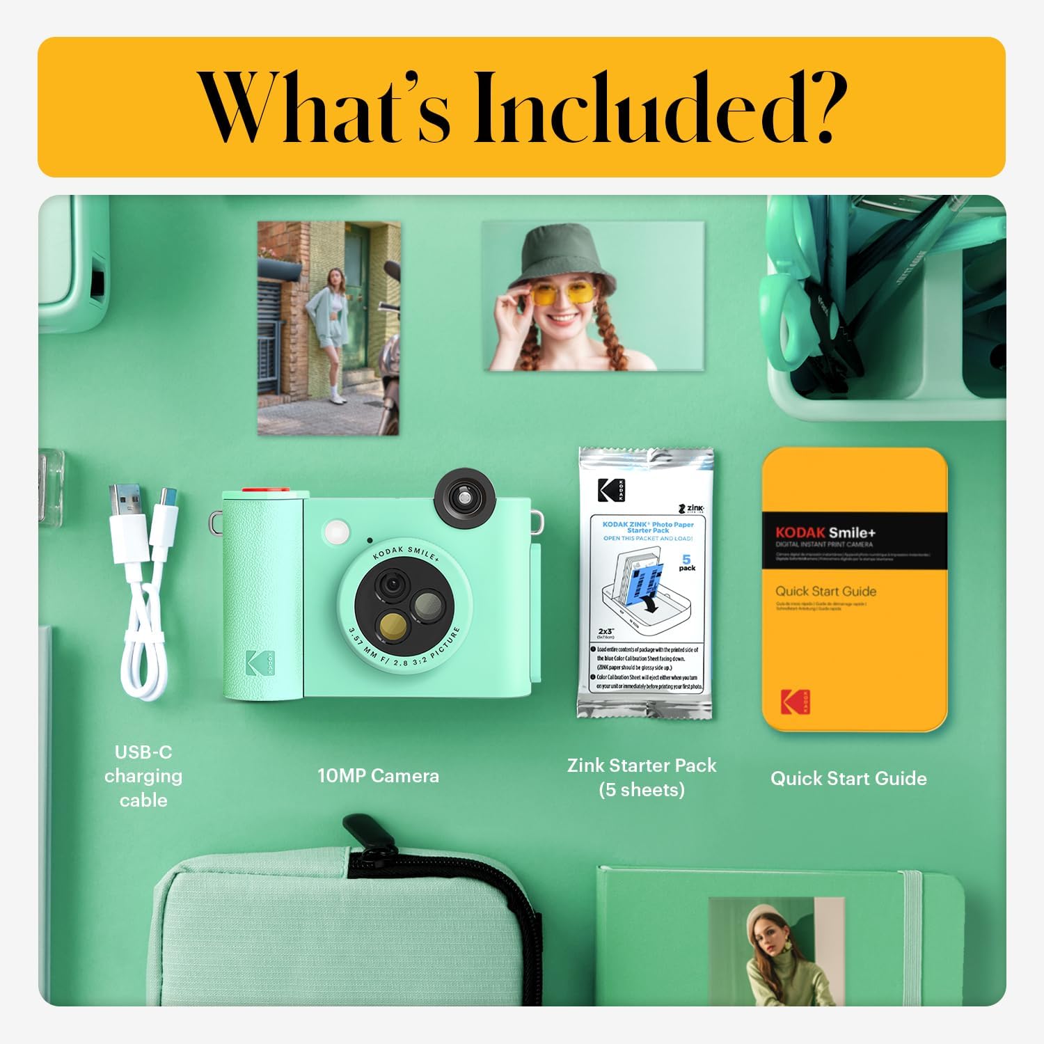 С дигиталния фотоапарат за моментално снимане KODAK Smile+, правенето на снимки отново е забавно. С това лесно за употреба и приятно устройство, усмивката ви никога няма да изчезне. Вземете този акумулаторен фотоапарат навсякъде, за да можете да правите снимки за спомен в парка, на почивка, на партита, на пътуване и т.н. А с вградените филтри за специални ефекти, правенето на нови снимки никога не става скучно. Добавете пикантност и вълнение към снимките си, като превключите към нов филтър за секунди. С този забавен фотоапарат снимките се открояват както никога досега. И тъй като този фотоапарат е съвместим с цинкова фотохартия, не е нужно да се притеснявате за закупуване на мастило. Направете снимка и гледайте прекрасното си изображение, отпечатано върху хартия без мастило със самозалепваща се подложка. Smile+ ви дава причина да се усмихнете.