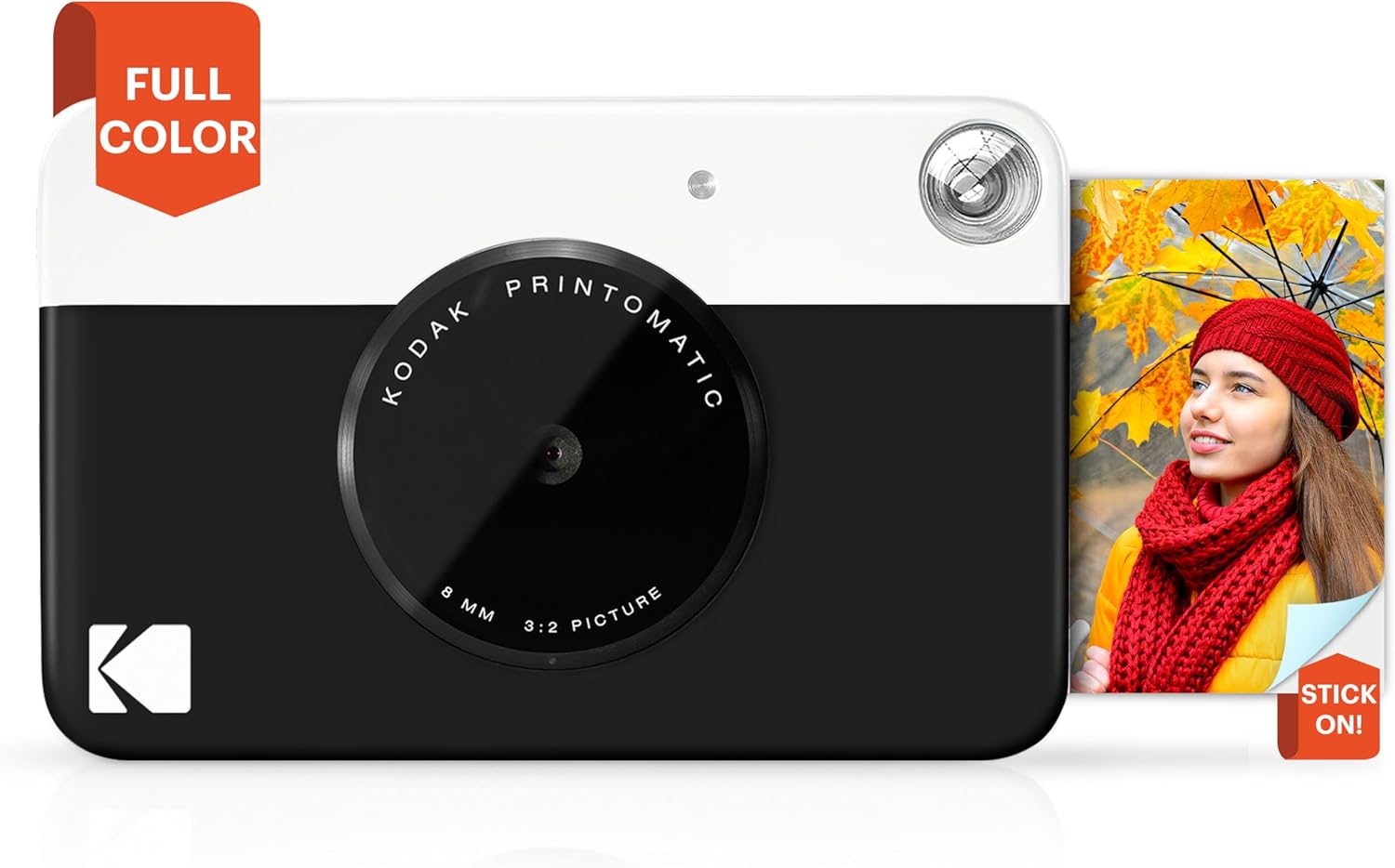 Записвайте и печатайте с Kodak Instant Print Camera. Забравете за тромавите принтери. Камерата Kodak Printomatic автоматично отпечатва устойчиви на размазване, вода и разкъсване снимки с резолюция до 5 MP. Насочете, снимайте и печатайте лесно. Kodak Printomatic е най-лесният и забавен начин да споделяте снимки с приятели, когато искате да споделяте разпечатки в движение. Вашите разпечатки дори се предлагат със залепваща подложка, така че можете да проявите креативност и да използвате снимките за декорация, точно като всеки стикер. Със скоростта на камерата можете дори да продължите да записвате, докато снимката ви се отпечатва. Благодарение на технологията ZERO Ink на камерата, не е нужно да се притеснявате за мръсни касети за печат, филми или тонери. Използвайте слота за MicroSD за допълнително място за съхранение. Технически спецификации и подробности. Една (1) вградена литиева батерия на камерата Kodak Printomatic. Слот за MicroSD карта. Как да се насладите. Показвайте, снимайте и печатайте снимки автоматично. Разпечатките са устойчиви на размазване, разкъсване и с залепваща подложка. Използвайте слота за MicroSD карта, за да разширите вътрешната памет.
