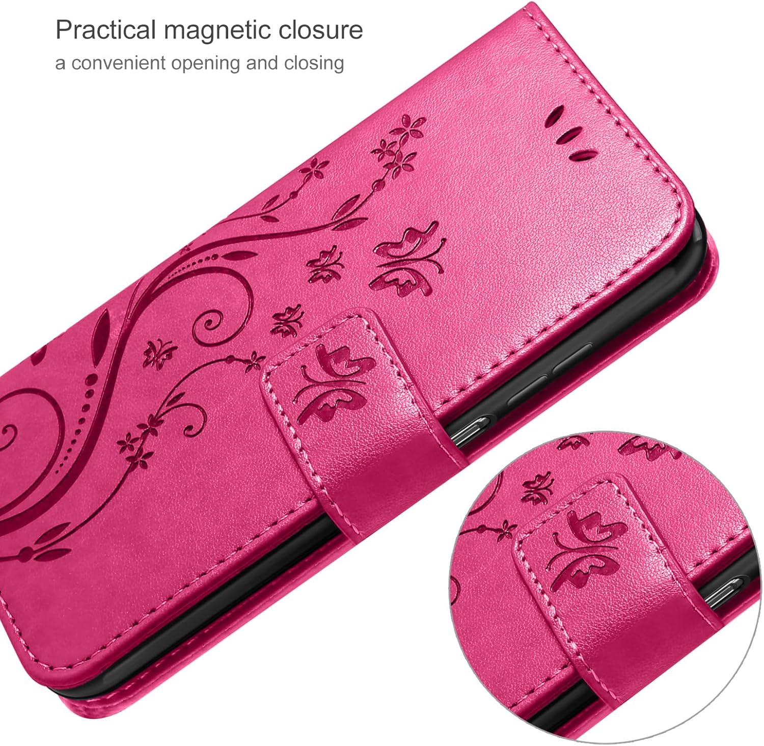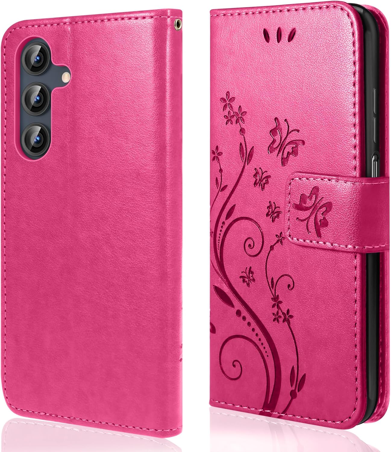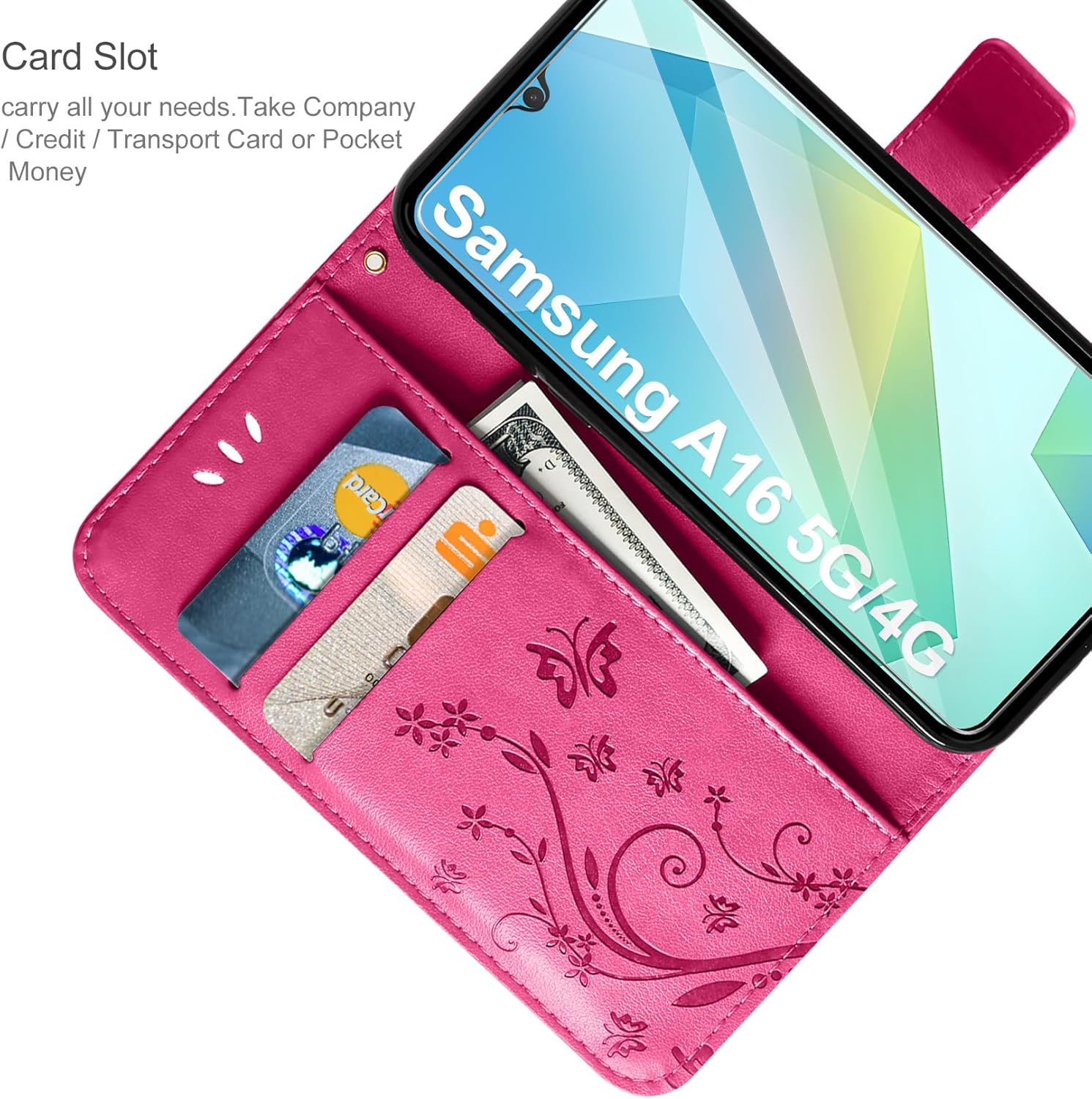 • Флип калъфът е съвместим със Samsung Galaxy A16 5G/4G и предлага отлична 360-градусова защита. Многофункционален флип калъф от PU кожа с цветя на пеперуда и мека вътрешна подплата от TPU, защитно фолио за защита на екрана от прах и драскотини.