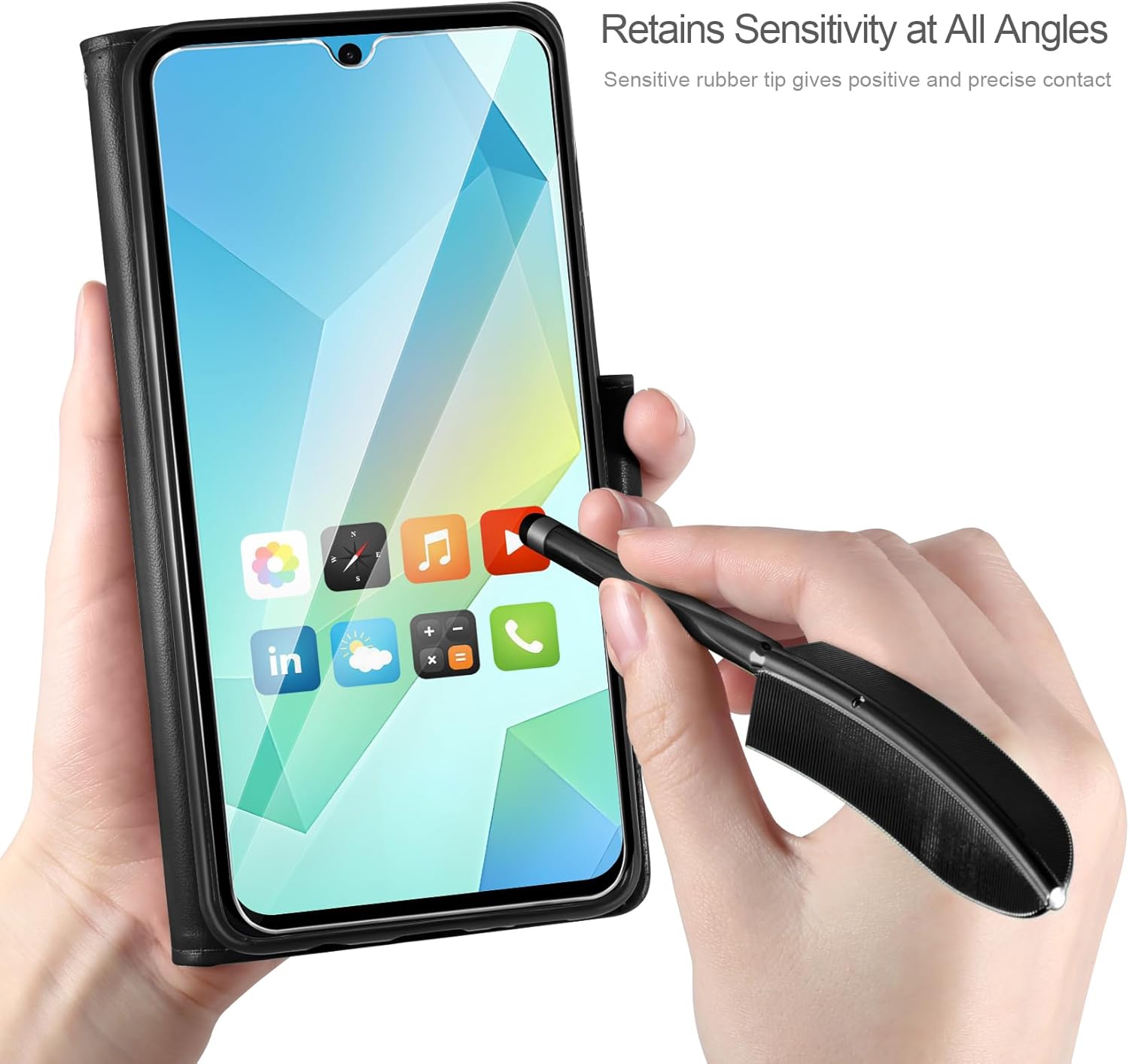 • Специално проектиран калъф за мобилен телефон, съвместим със Samsung Galaxy A16 5G/4G. Комплектът включва: кожен калъф, съвместим със Samsung Galaxy A16 5G/4G, протектор за екран и стилус за тъчскрийн.