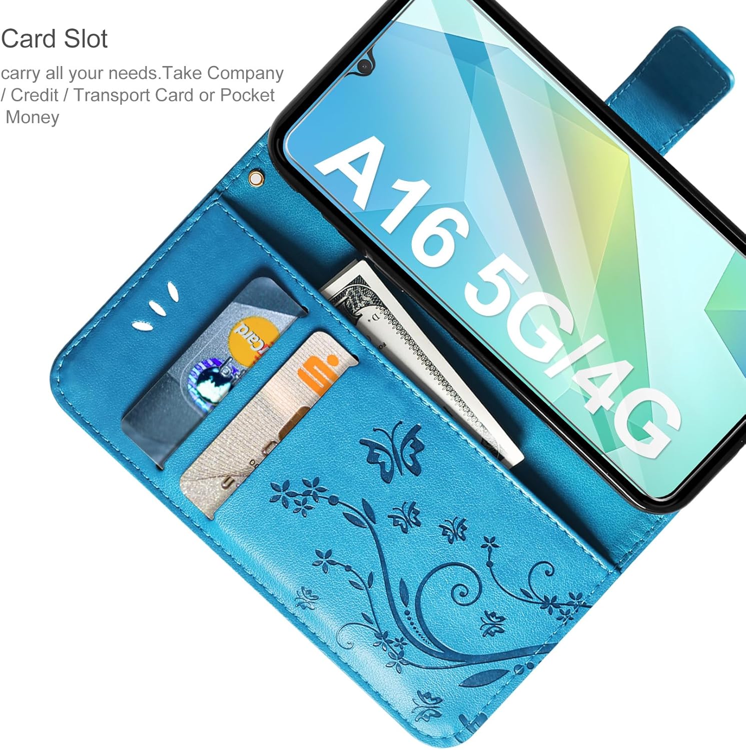 • Флип калъфът е съвместим със Samsung Galaxy A16 5G/4G и предлага отлична 360-градусова защита. Многофункционален флип калъф от PU кожа с цветя на пеперуда и мека вътрешна подплата от TPU, защитно фолио за защита на екрана от прах и драскотини.
