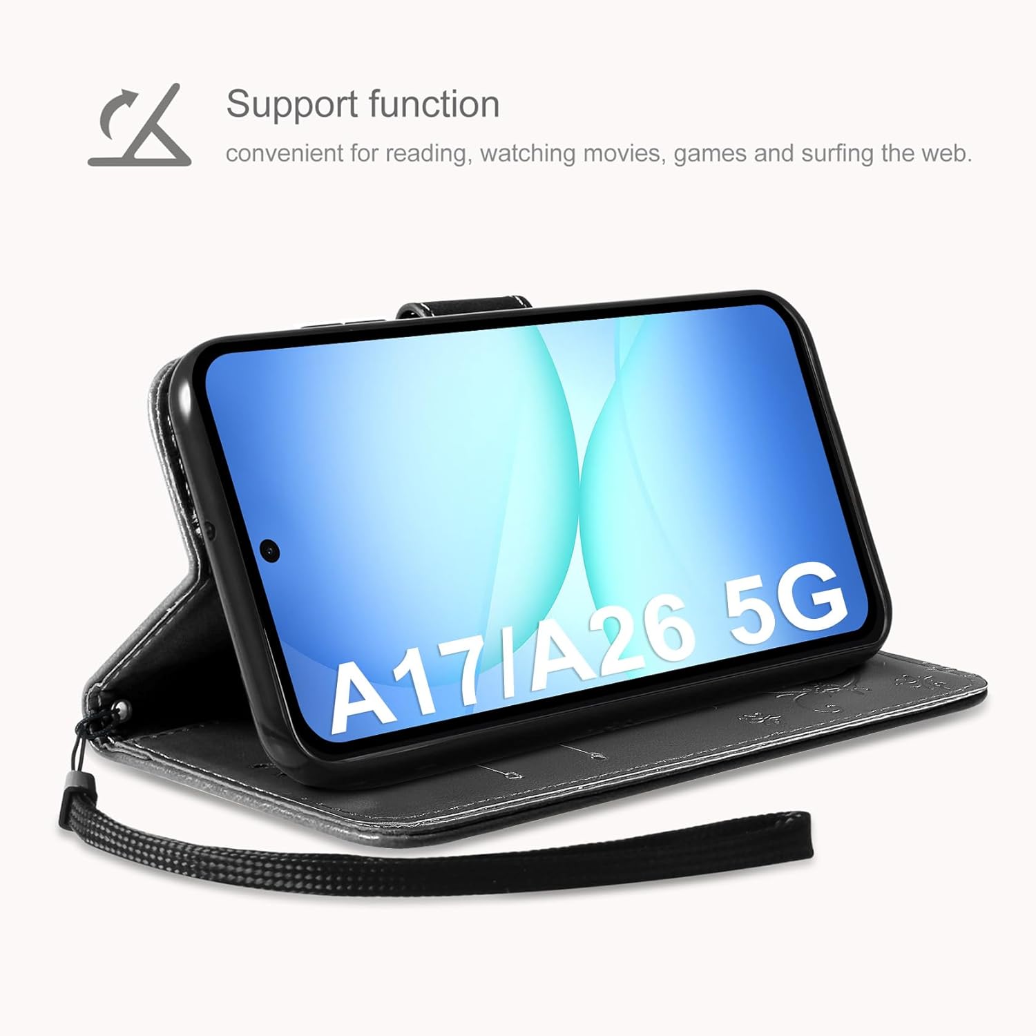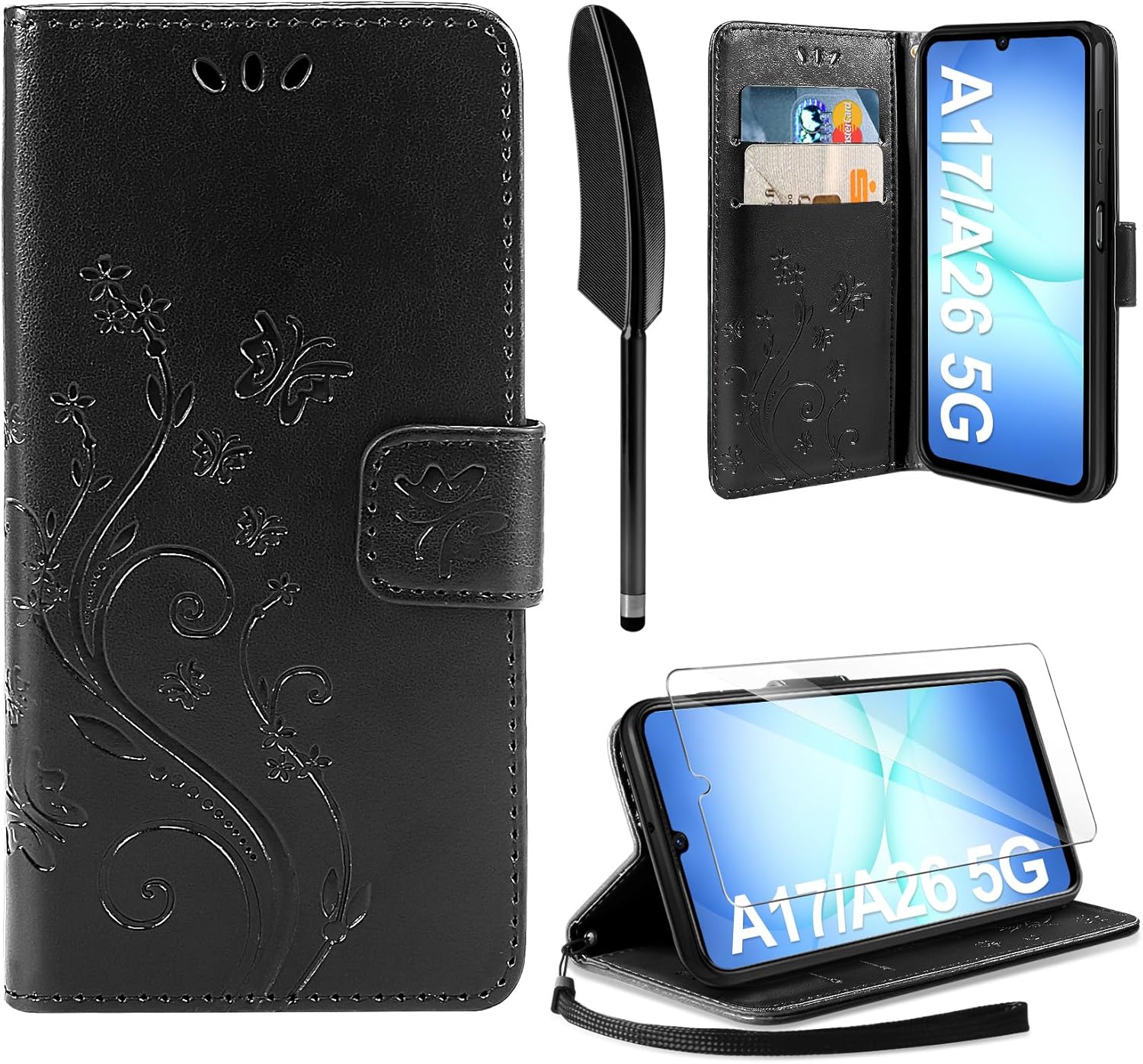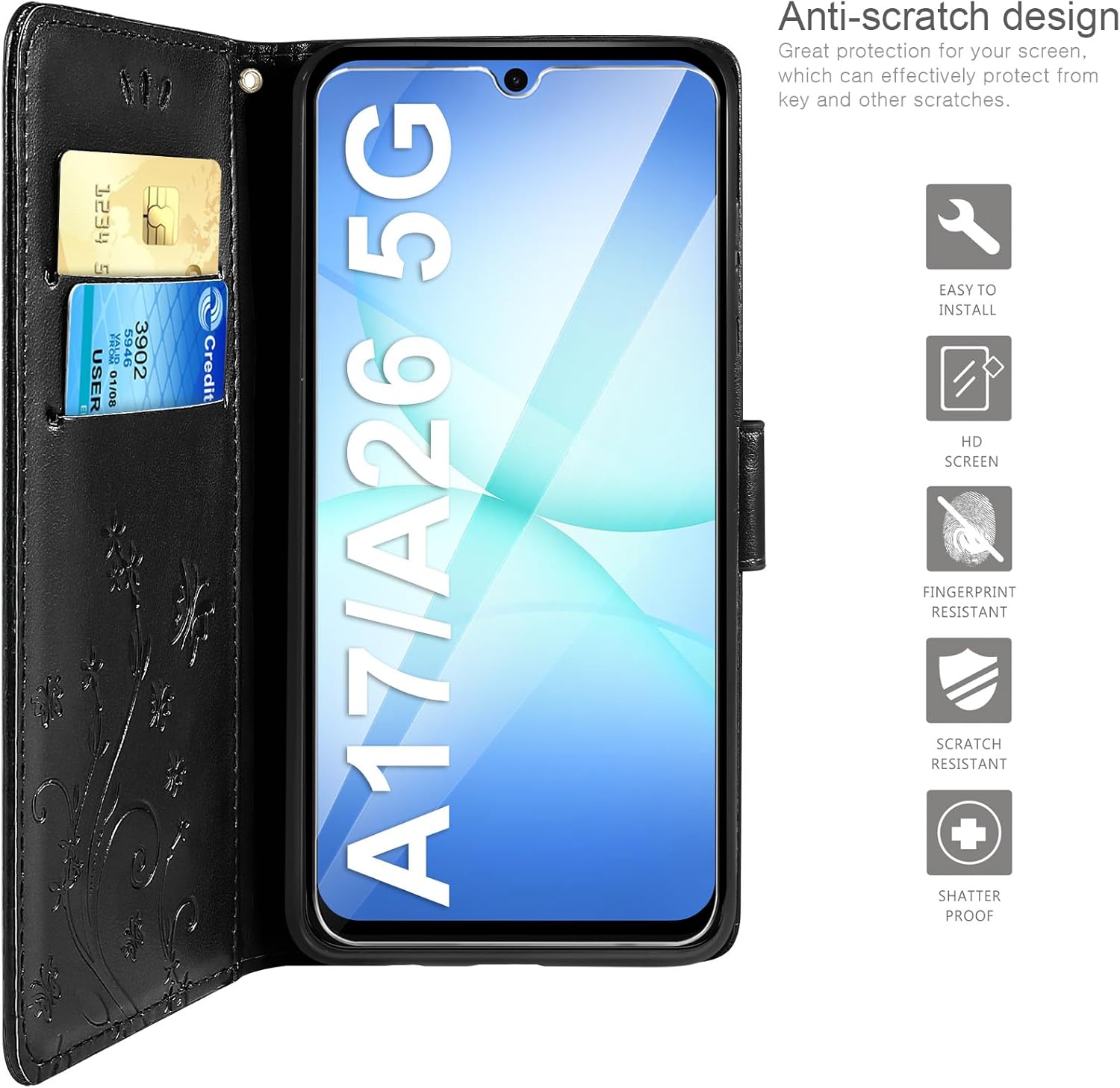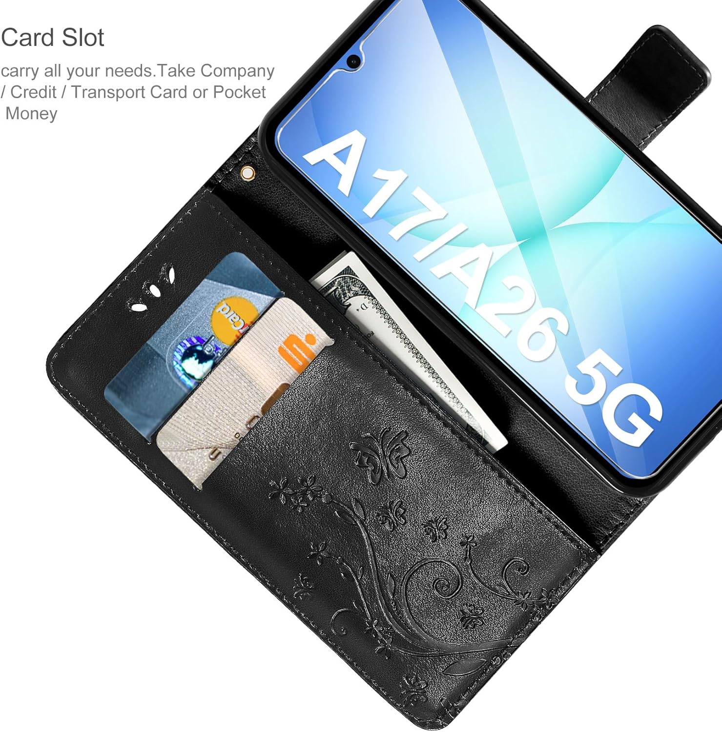 Кожен калъф AROYI, съвместим с Samsung Galaxy A26 5G, калъф и протектор за екран, флип-портфейл, калъф за мобилен телефон, PU кожен калъф с слотове за карти, защитен калъф, съвместим с Samsung Galaxy A26 5G, черен