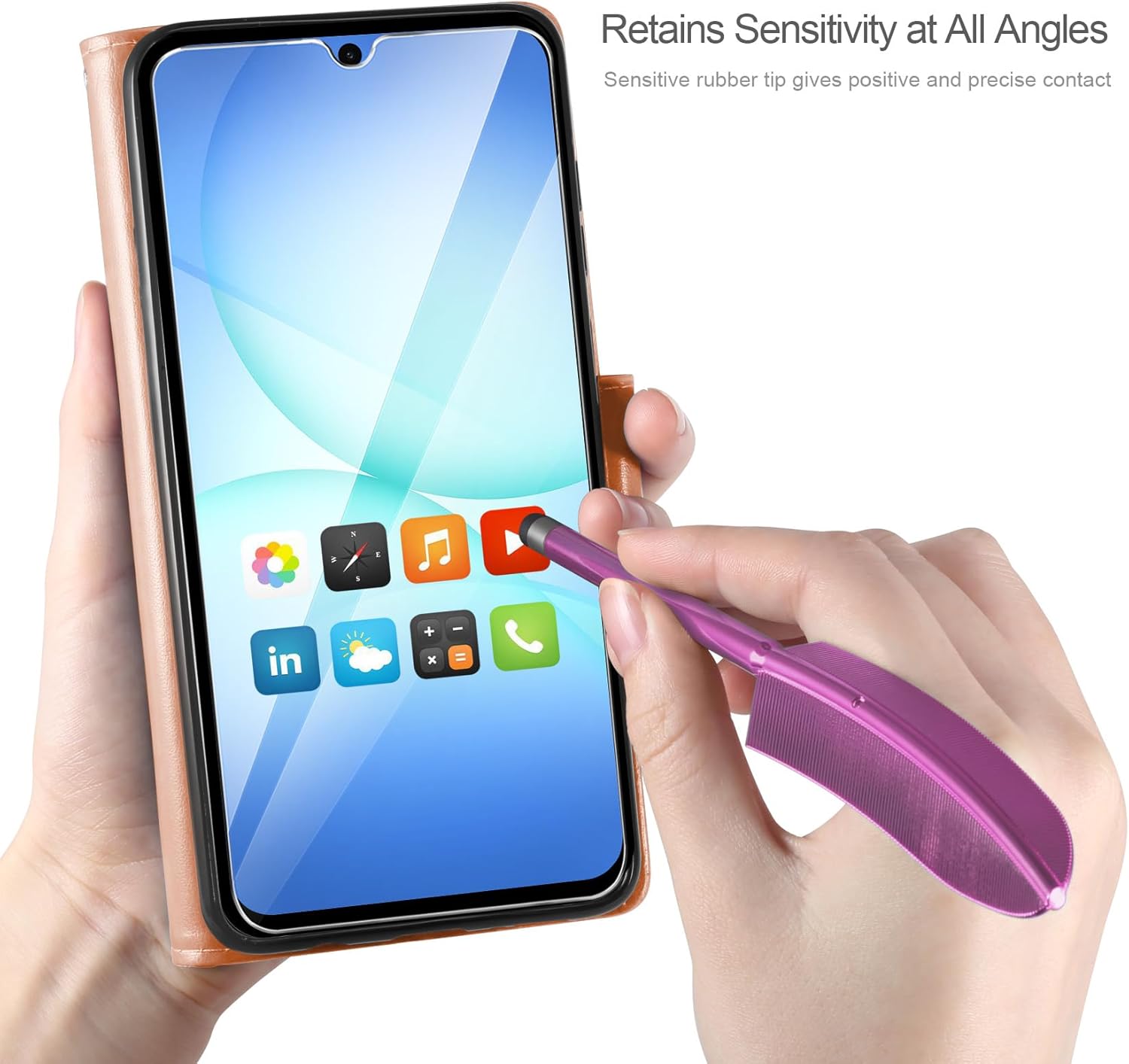 • Специално проектиран калъф за мобилен телефон, съвместим със Samsung Galaxy A16 5G/4G. Комплектът включва: кожен калъф, съвместим със Samsung Galaxy A16 5G/4G, протектор за екран и стилус за тъчскрийн.