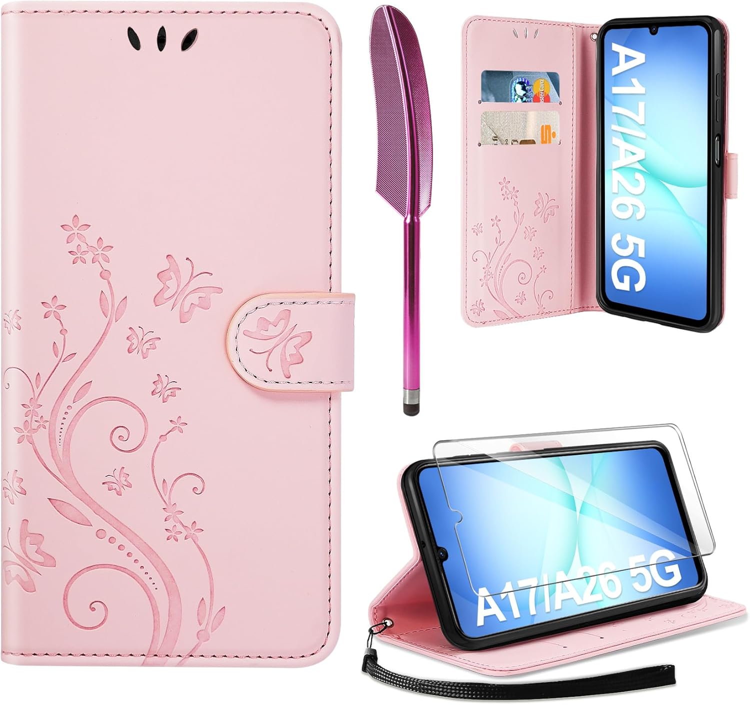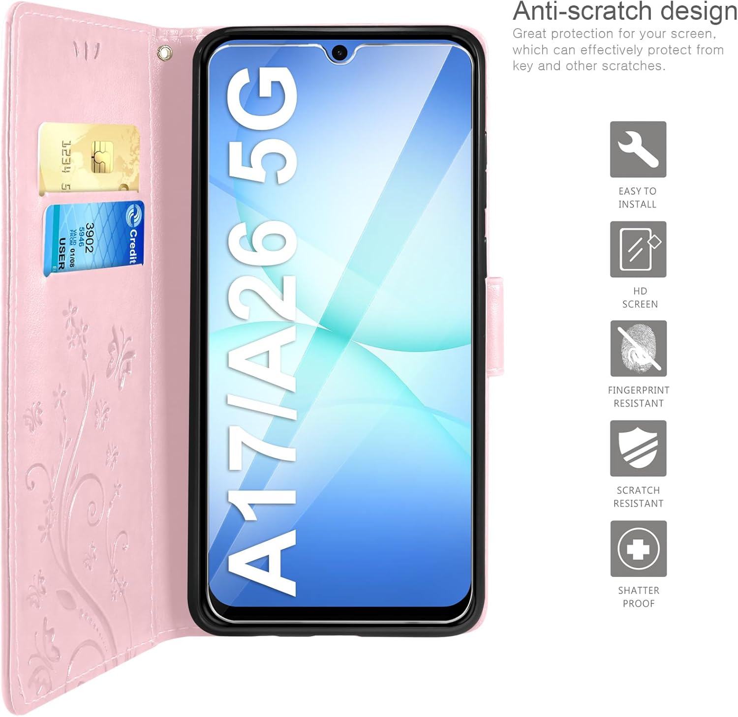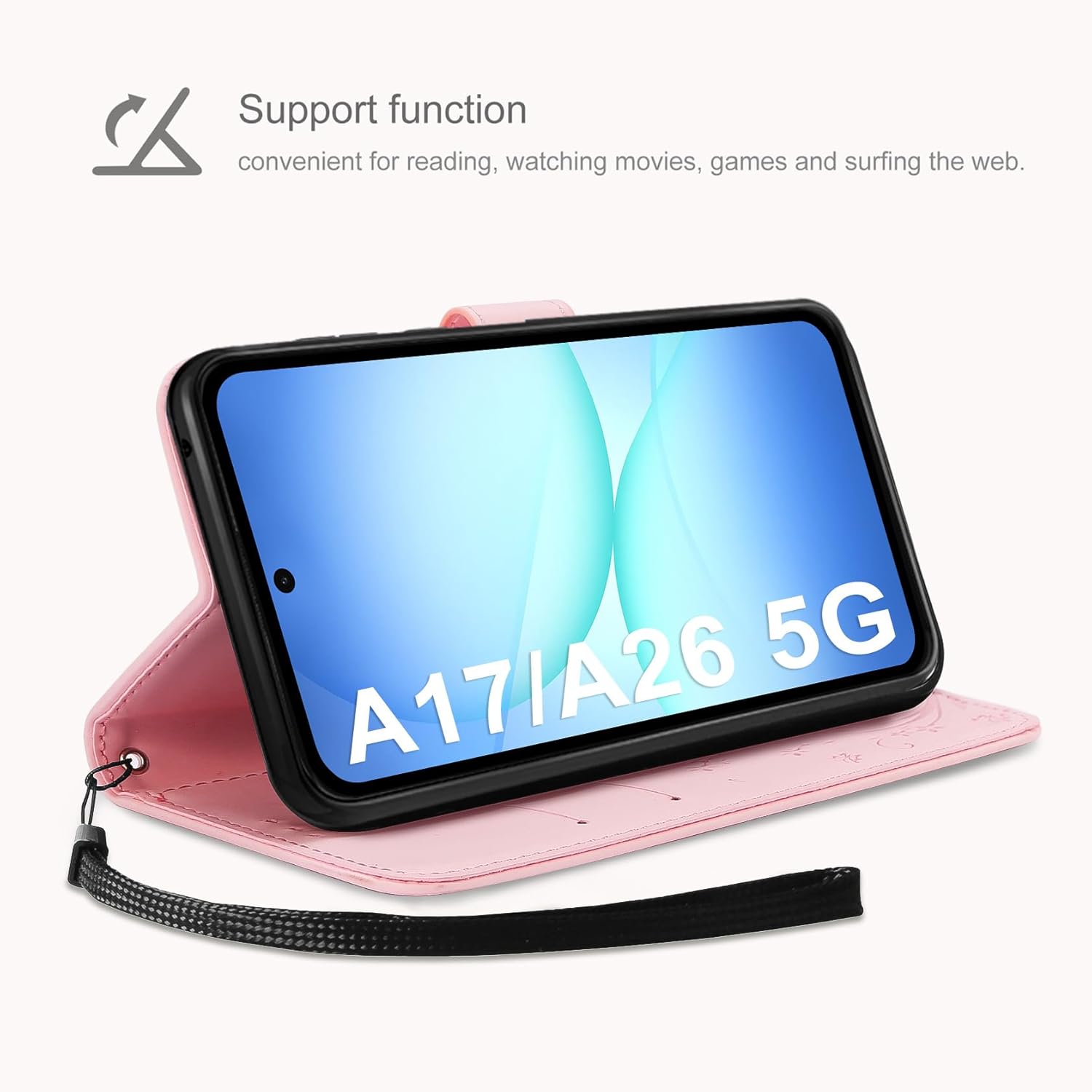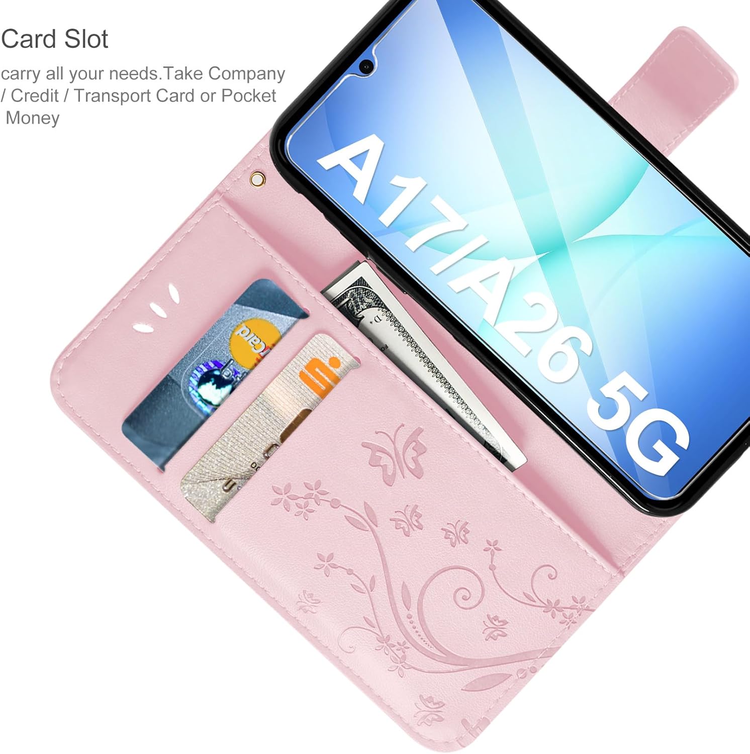 Кожен калъф AROYI, съвместим с Samsung Galaxy A26 5G, калъф и защитно фолио, калъф за мобилен телефон тип портфейл, кожен калъф, слотове за карти, защитен калъф, съвместим с Samsung Galaxy A26 5G, розов