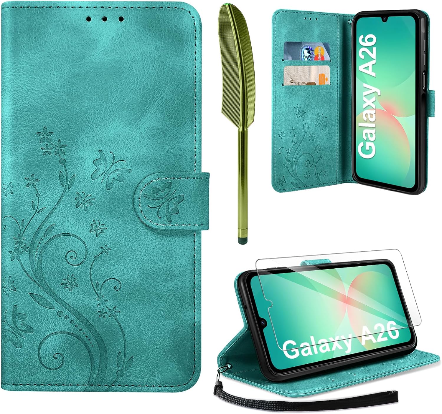 Кожен калъф AROYI, съвместим с Samsung Galaxy A26 5G (не е за A17/A25 5G), калъф и протектор за екран, флип-портфейл, калъф за мобилен телефон, PU кожен калъф, защитен калъф, съвместим със Samsung Galaxy