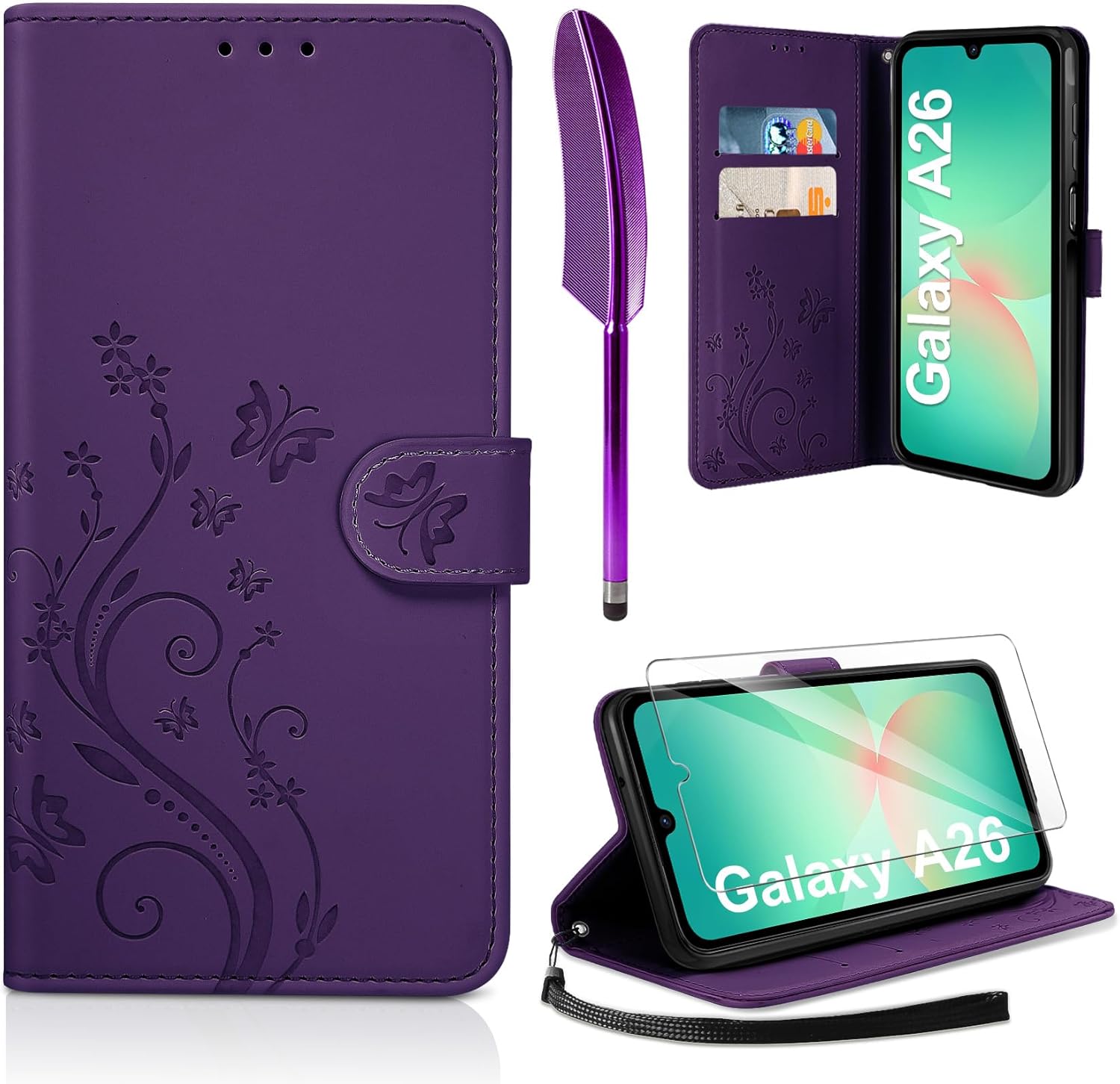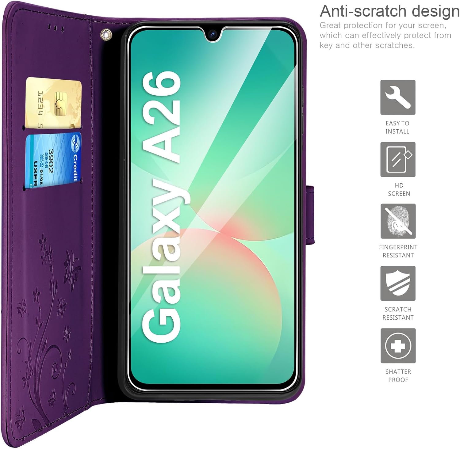 Кожен калъф AROYI, съвместим с Samsung Galaxy A26 5G (не е за A17/A25 5G), калъф и протектор за екран, флип-портфейл, калъф за мобилен телефон, PU кожен калъф, защитен калъф, съвместим със Samsung Galaxy