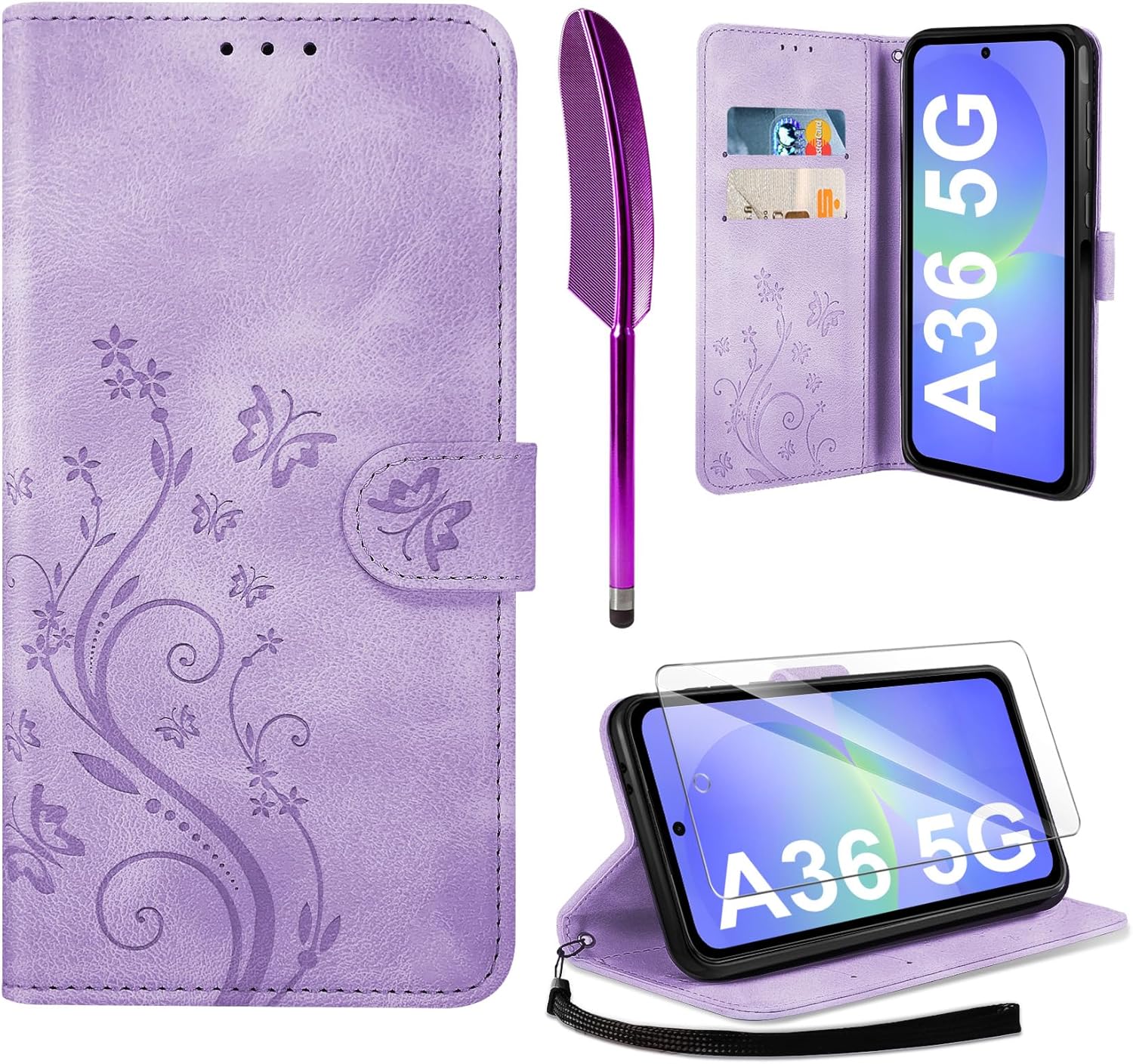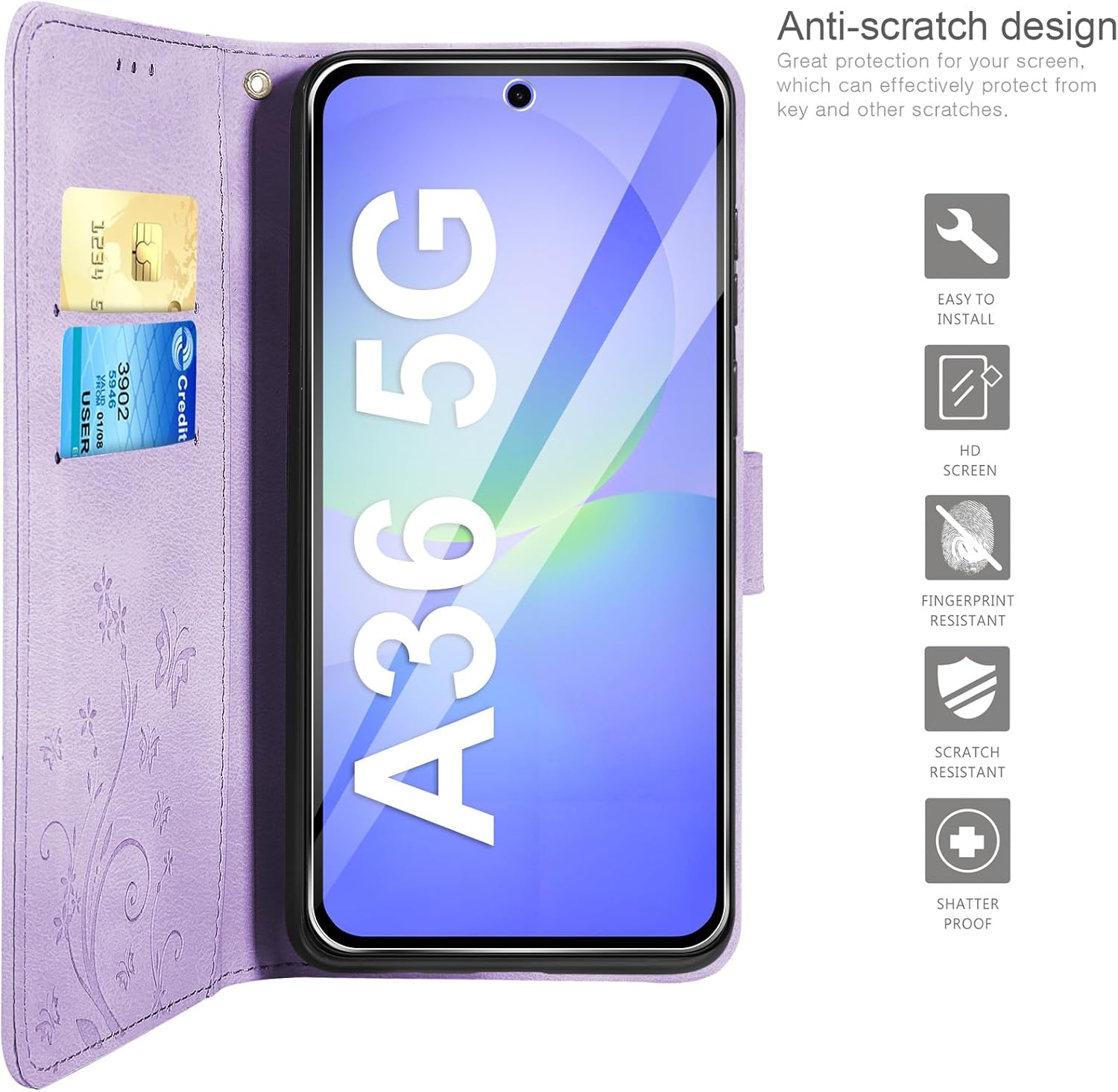 Кожен калъф AROYI, съвместим с Samsung Galaxy A36 5G, калъф и протектор за екран, флип-портфейл, калъф за мобилен телефон, PU кожен калъф със слотове за карти, защитен калъф, съвместим с Samsung Galaxy A36 5G Light