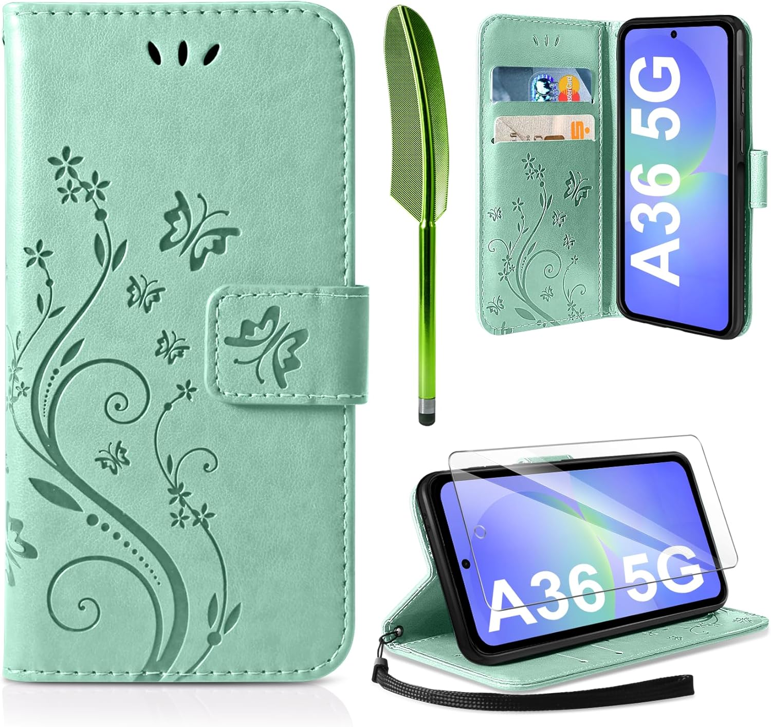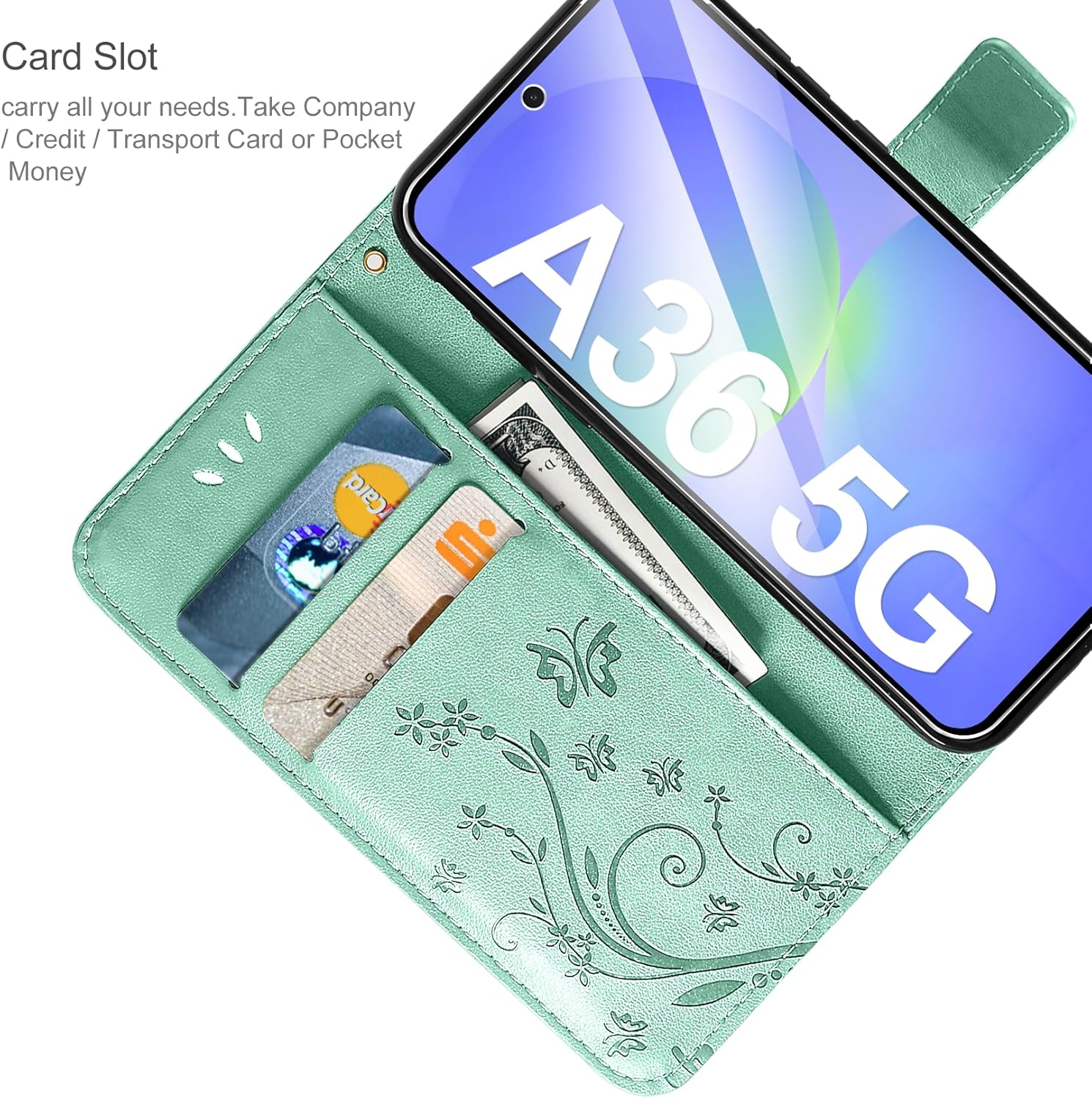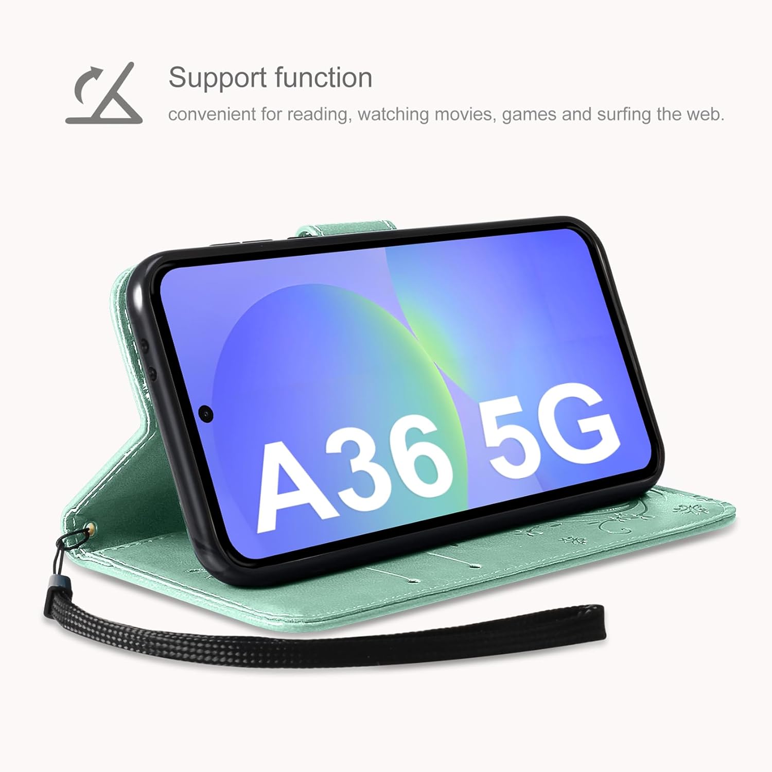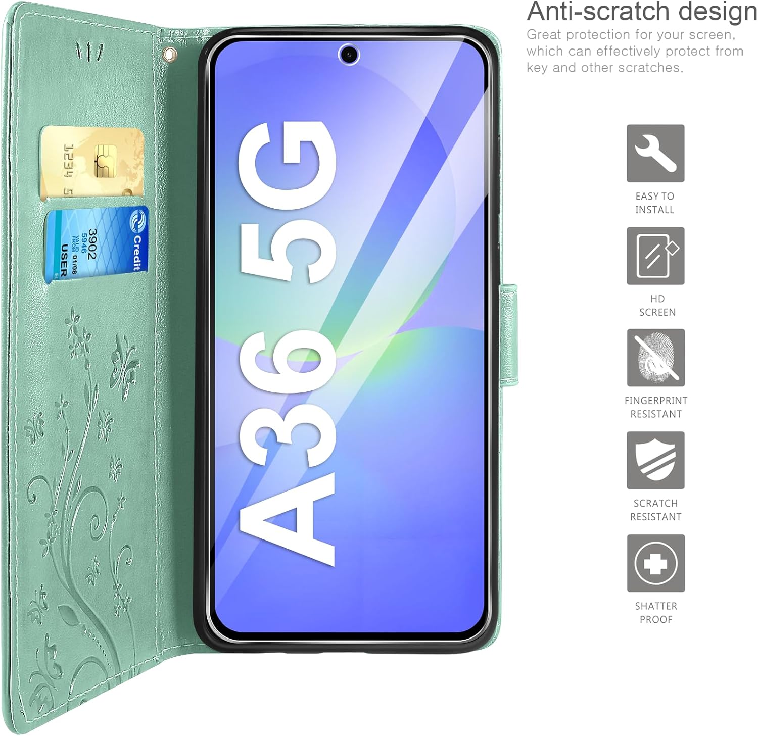 Кожен калъф AROYI, съвместим с Samsung Galaxy A36 5G, калъф и протектор за екран, флип-портфейл, калъф за мобилен телефон, PU кожен калъф със слотове за карти, защитен калъф, съвместим с Samsung Galaxy A36 5G, ментов цвят