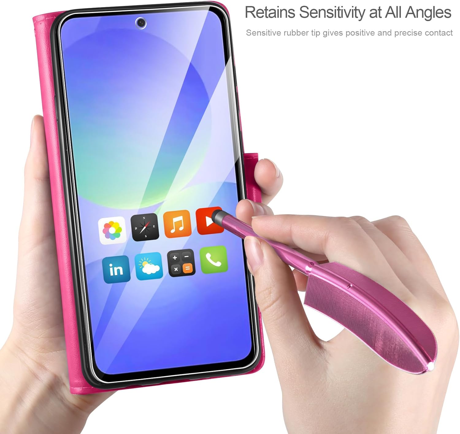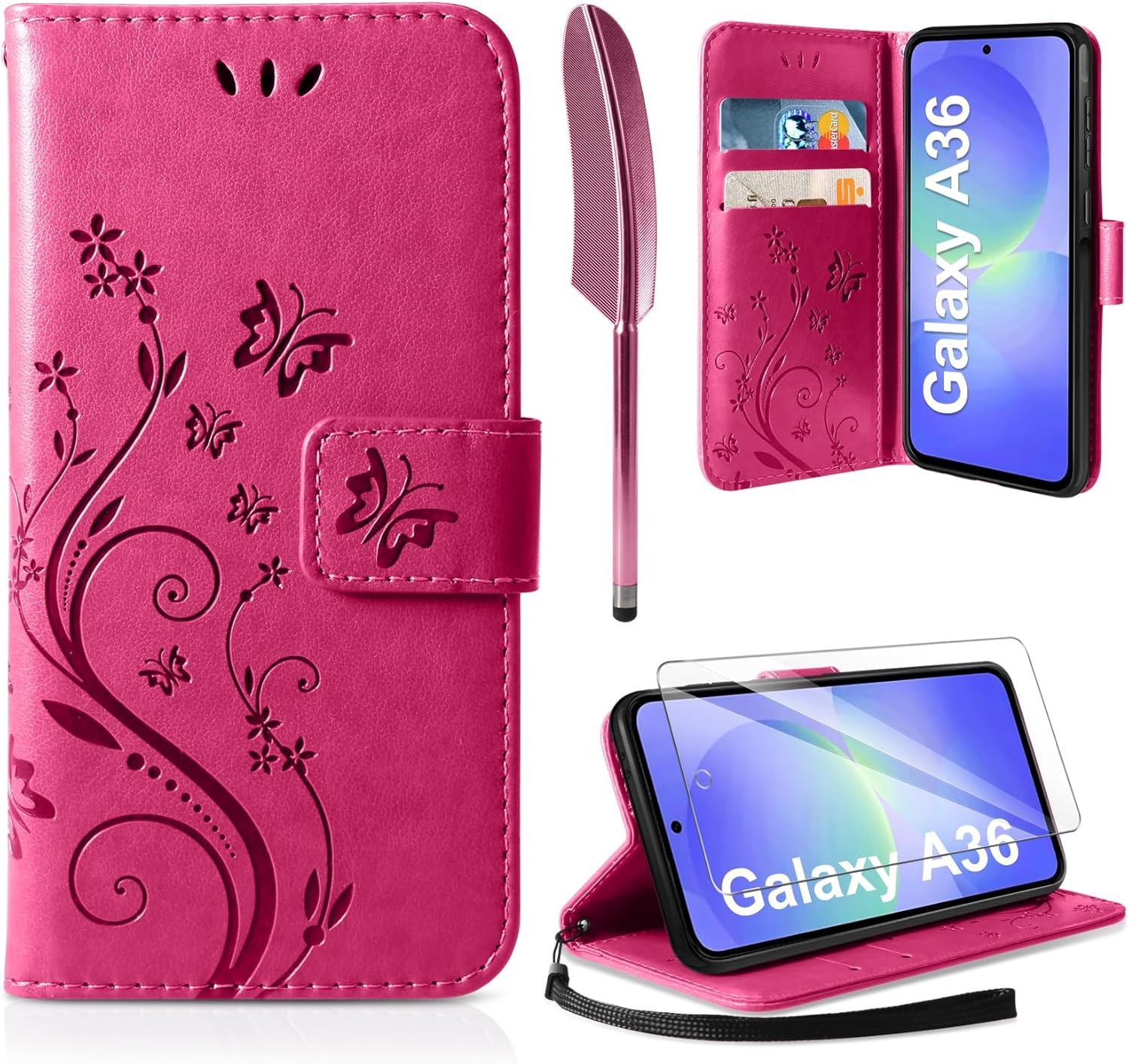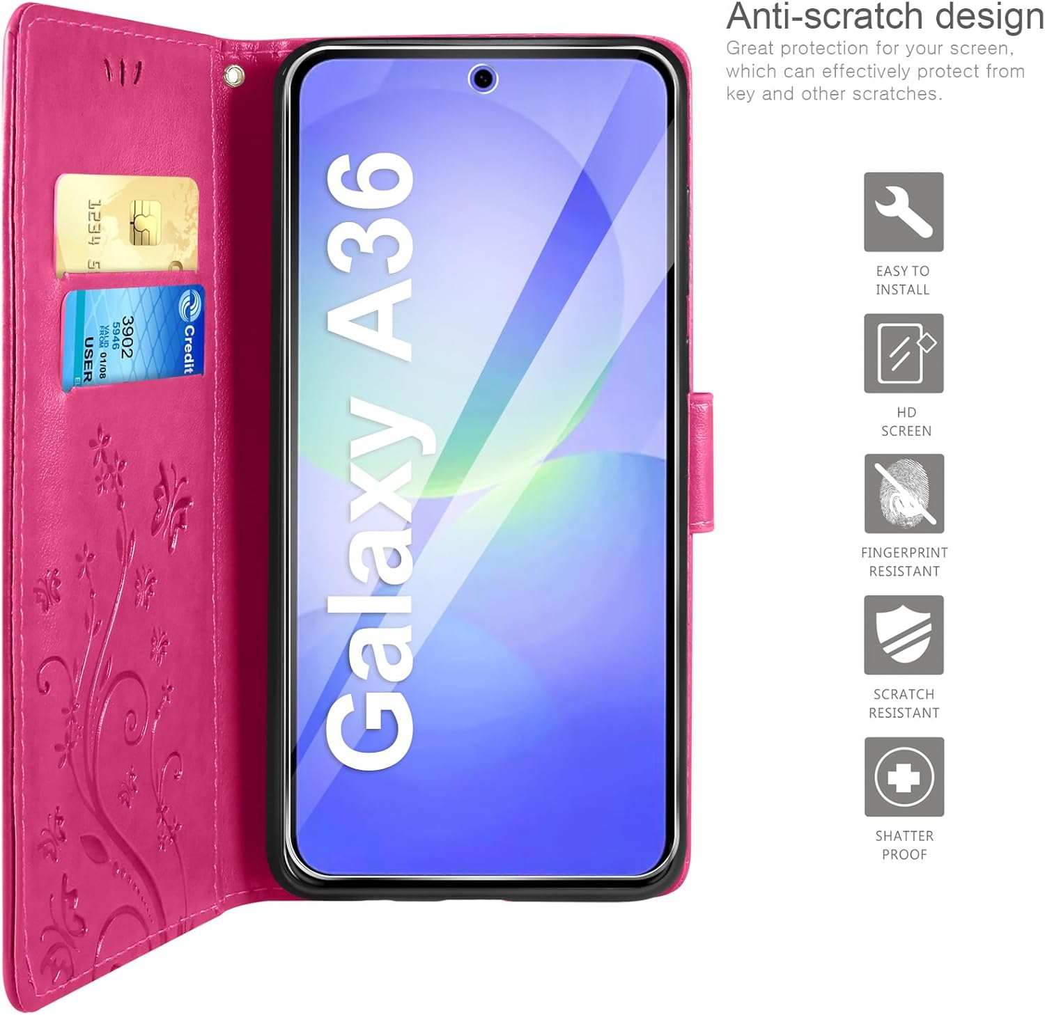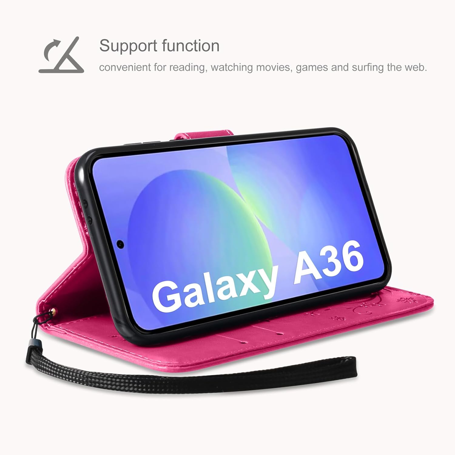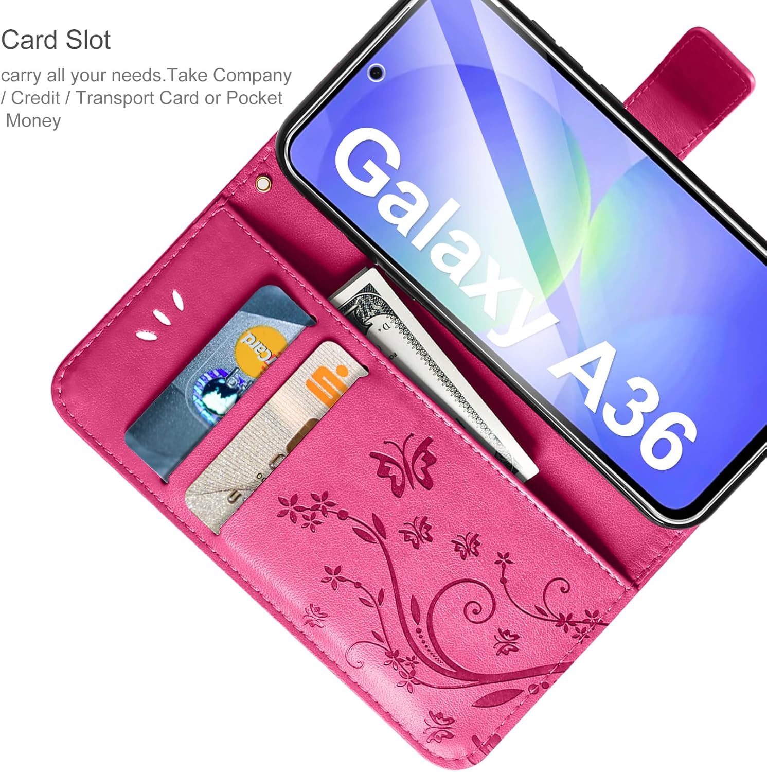 Кожен калъф AROYI, съвместим с Samsung Galaxy A36 5G, калъф и протектор за екран, флип-портфейл, калъф за мобилен телефон, PU кожен калъф със слотове за карти, защитен калъф, съвместим с Samsung Galaxy A36 5G, розов