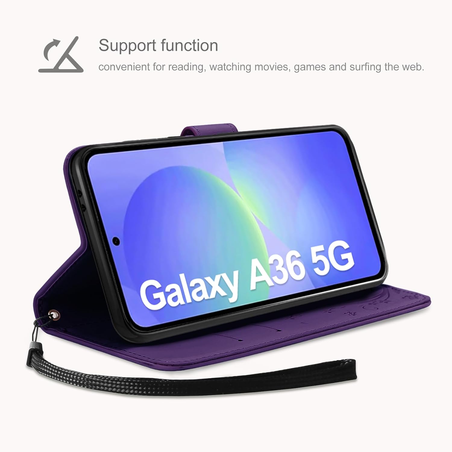 • Флип калъфът е съвместим със Samsung Galaxy A16 5G/4G и предлага отлична 360-градусова защита. Многофункционален флип калъф от PU кожа с цветя на пеперуда и мека вътрешна подплата от TPU, защитно фолио за защита на екрана от прах и драскотини.