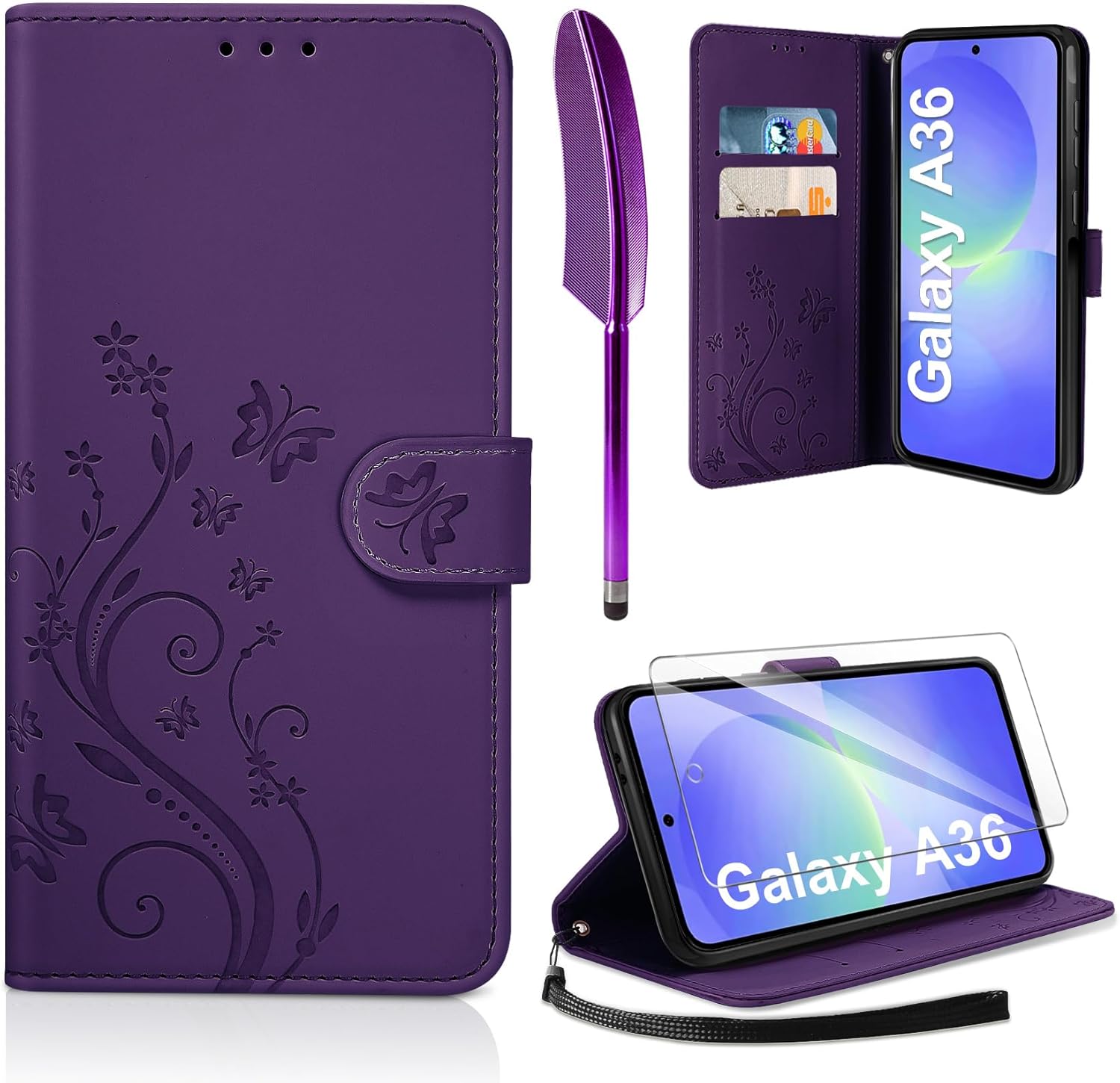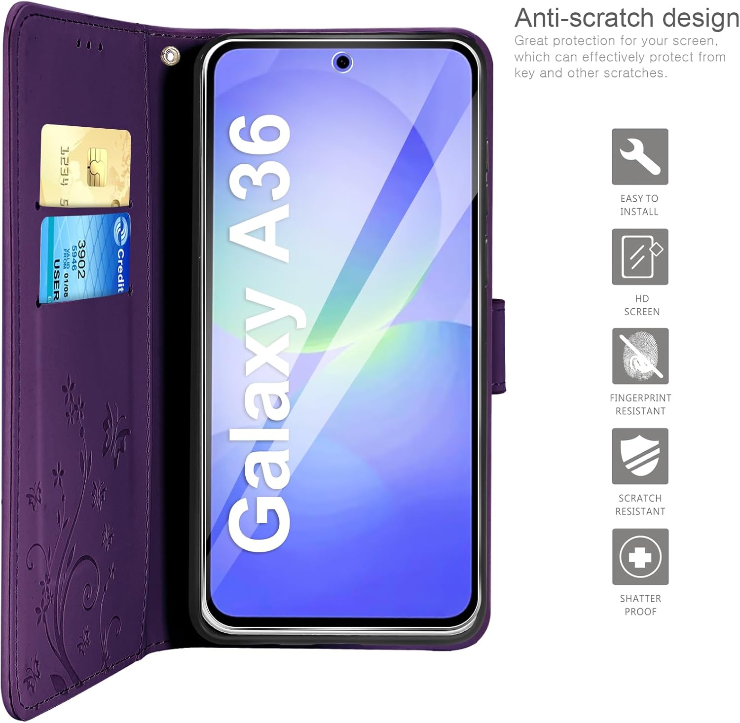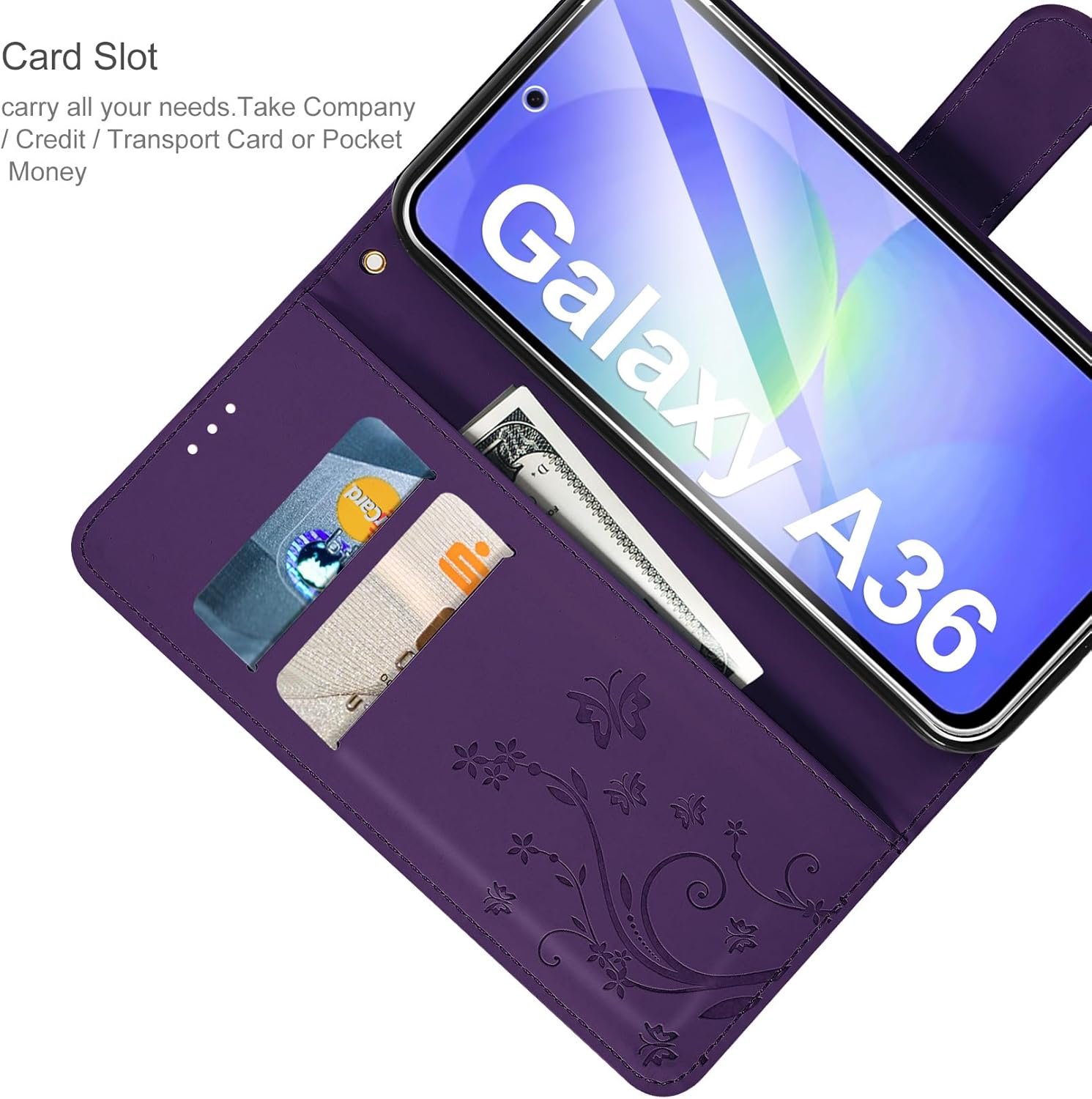 Кожен калъф AROYI, съвместим с Samsung Galaxy A36 5G, калъф и протектор за екран, флип-портфейл, калъф за мобилен телефон, PU кожен калъф със слотове за карти, защитен калъф, съвместим с Samsung Galaxy A36 5G, тъмен цвят.